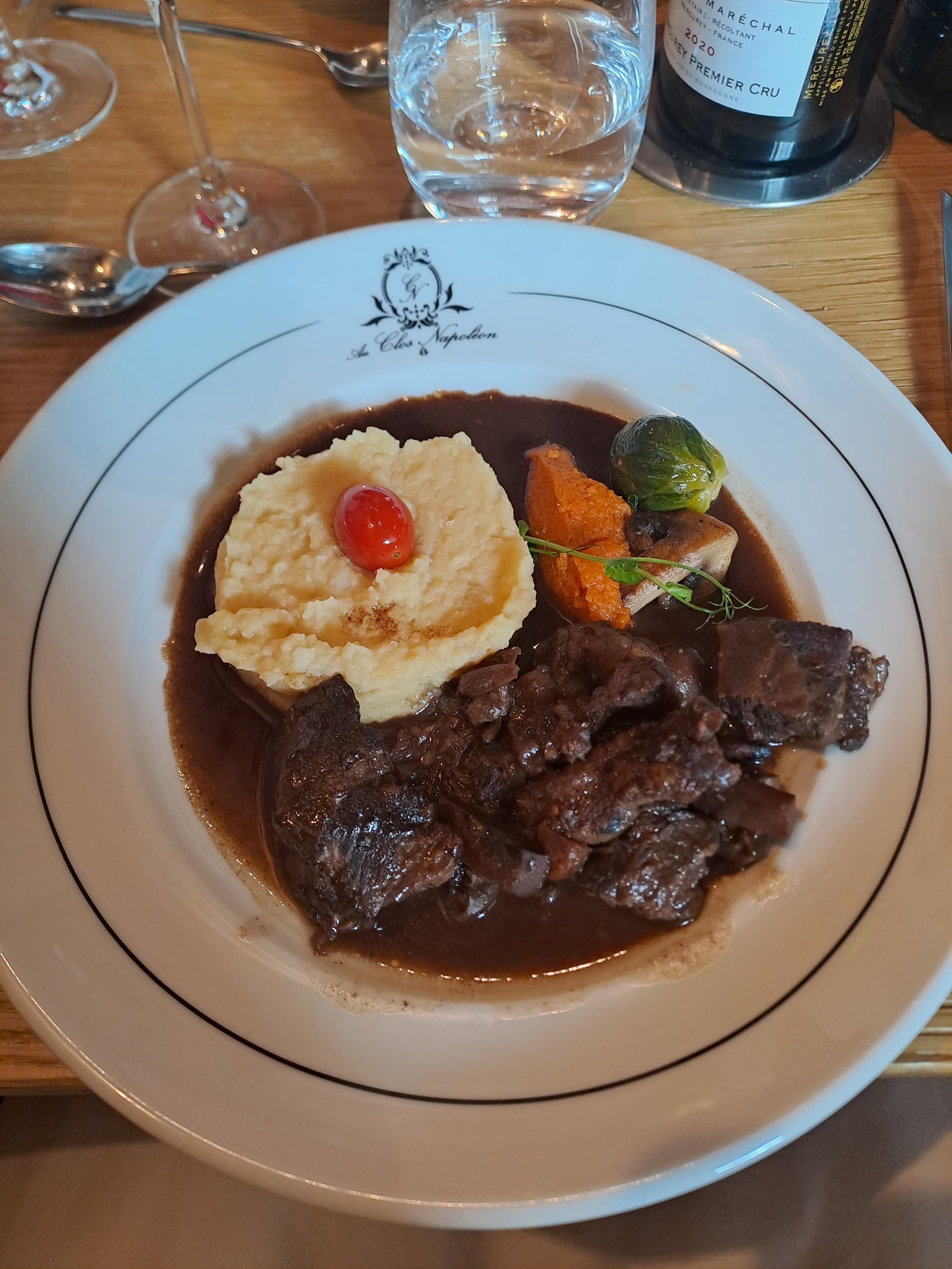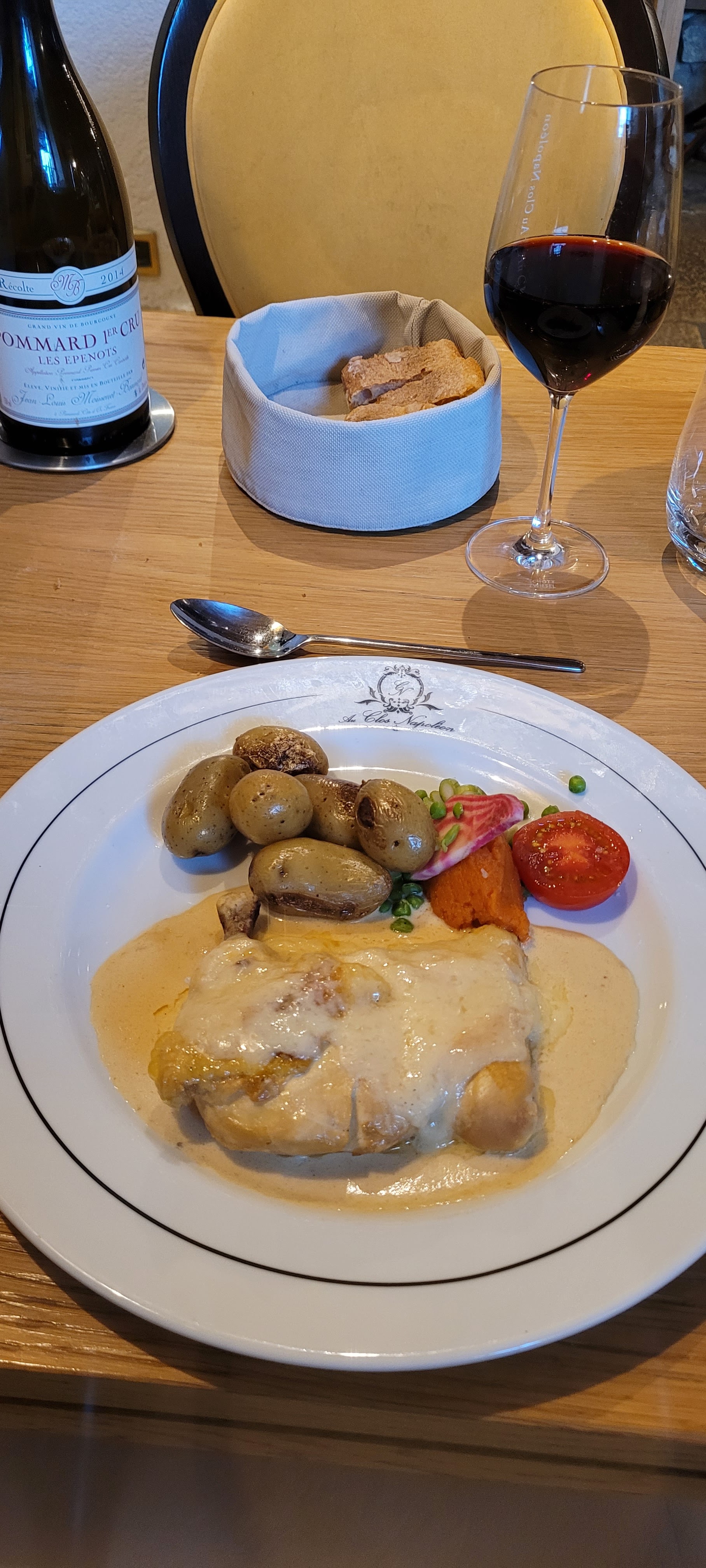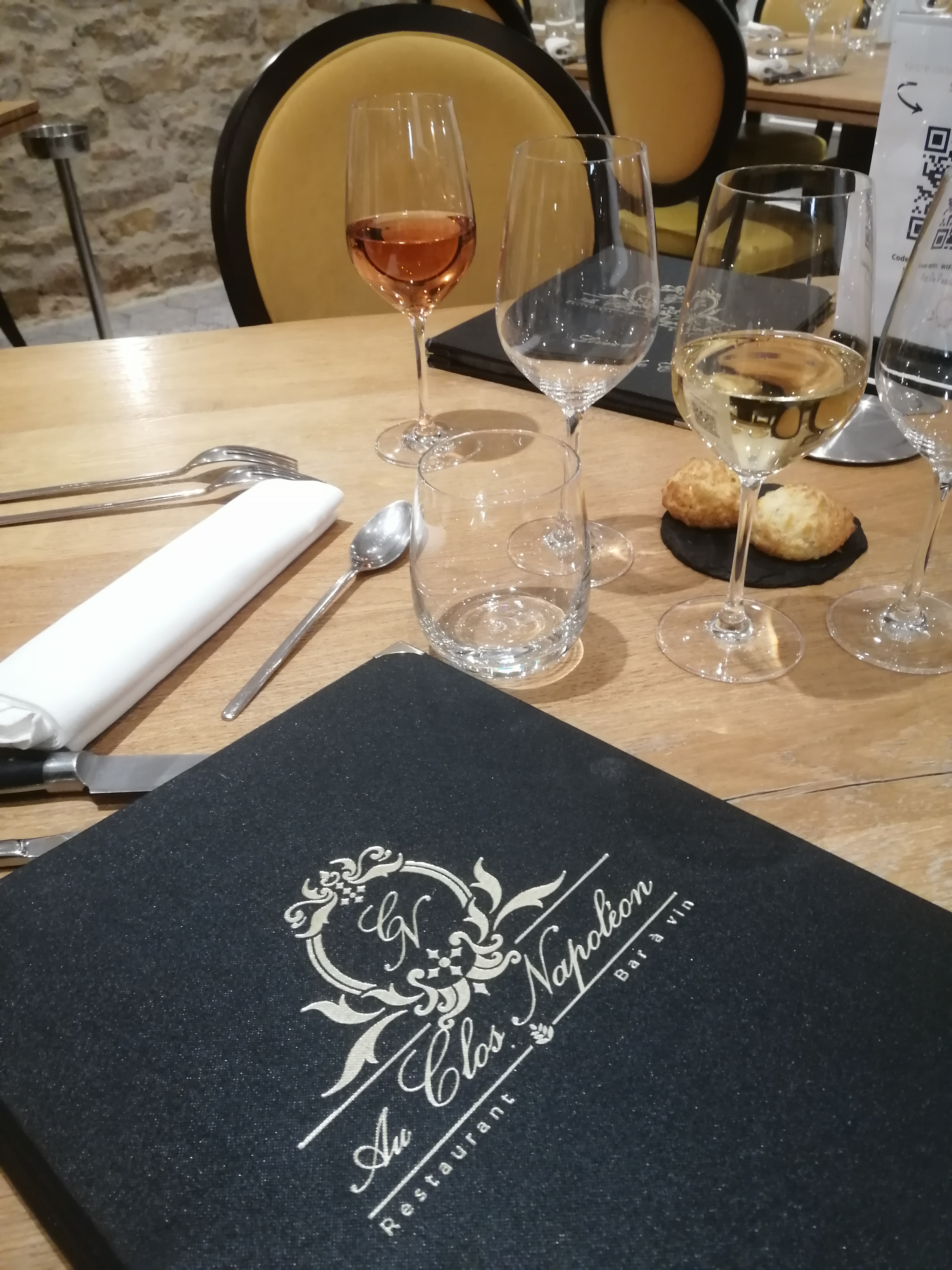 Tout était PARFAIT ! Réservation faite sur internet 3 jours avant et aucun « couac » à l’arrivée. Accueil chaleureux, menu bourguignon de qualité, le champagne servi à l’apéritif était bien frais (accompagné de délicieuses gougères), la carte des vins est variée. Notre déjeuner était un régal. La salle de restaurant est très agréable, à la décoration soignée. Merci à toute l’équipe du Clos Napoléon pour son professionnalisme, sa bonne humeur et son humour, cela mérite d’être salué ! Nous reviendrons avec grand plaisir.