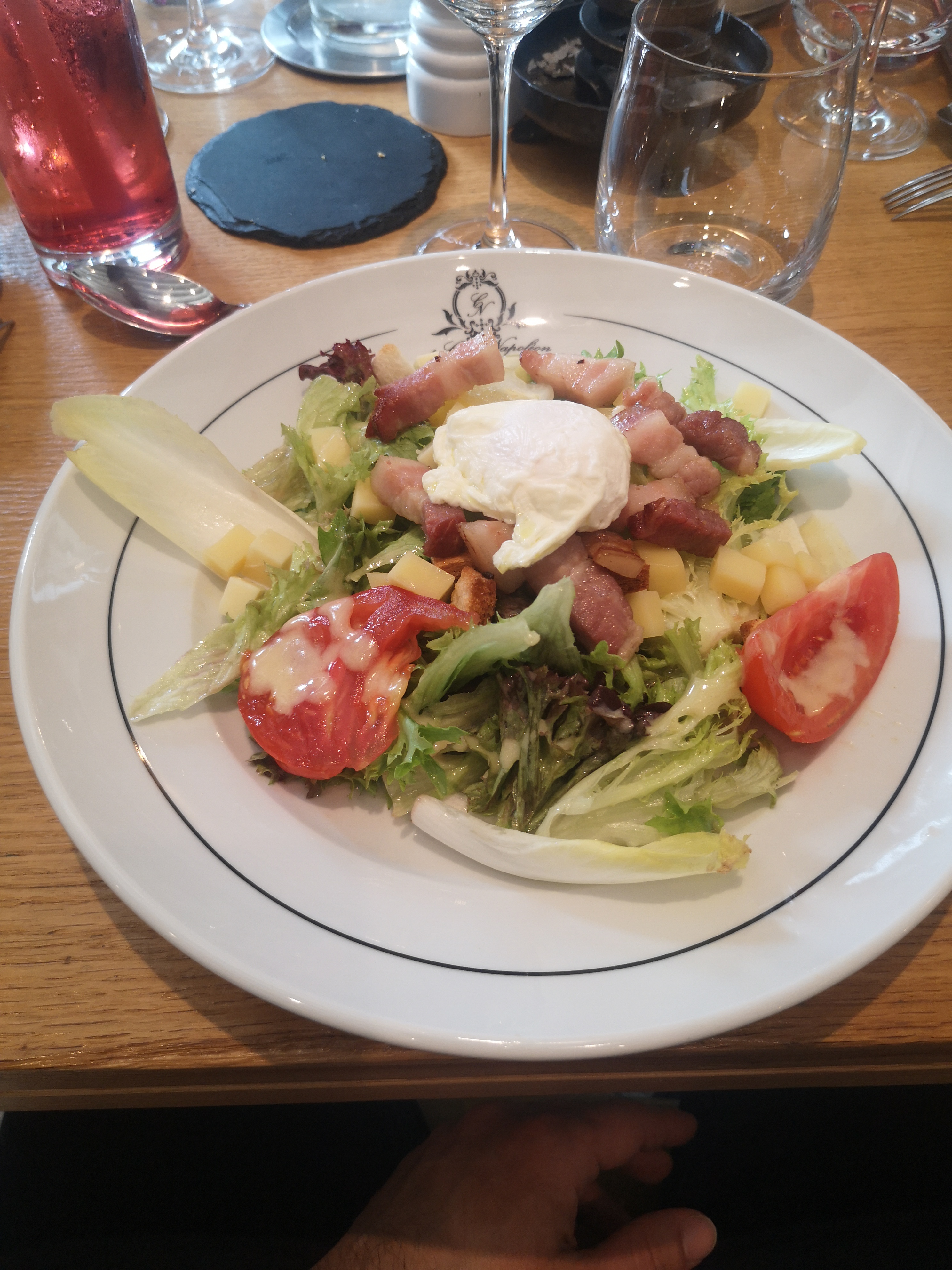 Très bon moment passé au clos Napoléon, une bonne ambiance et des mets délicieux (menu végétarien excellent) 😉 la vue sur les vignes et fort agréable et il est très intéressant d'avoir un sommelier pour conseiller sur les vins 😄 Je conseille, particulièrement le moelleux chocolat !