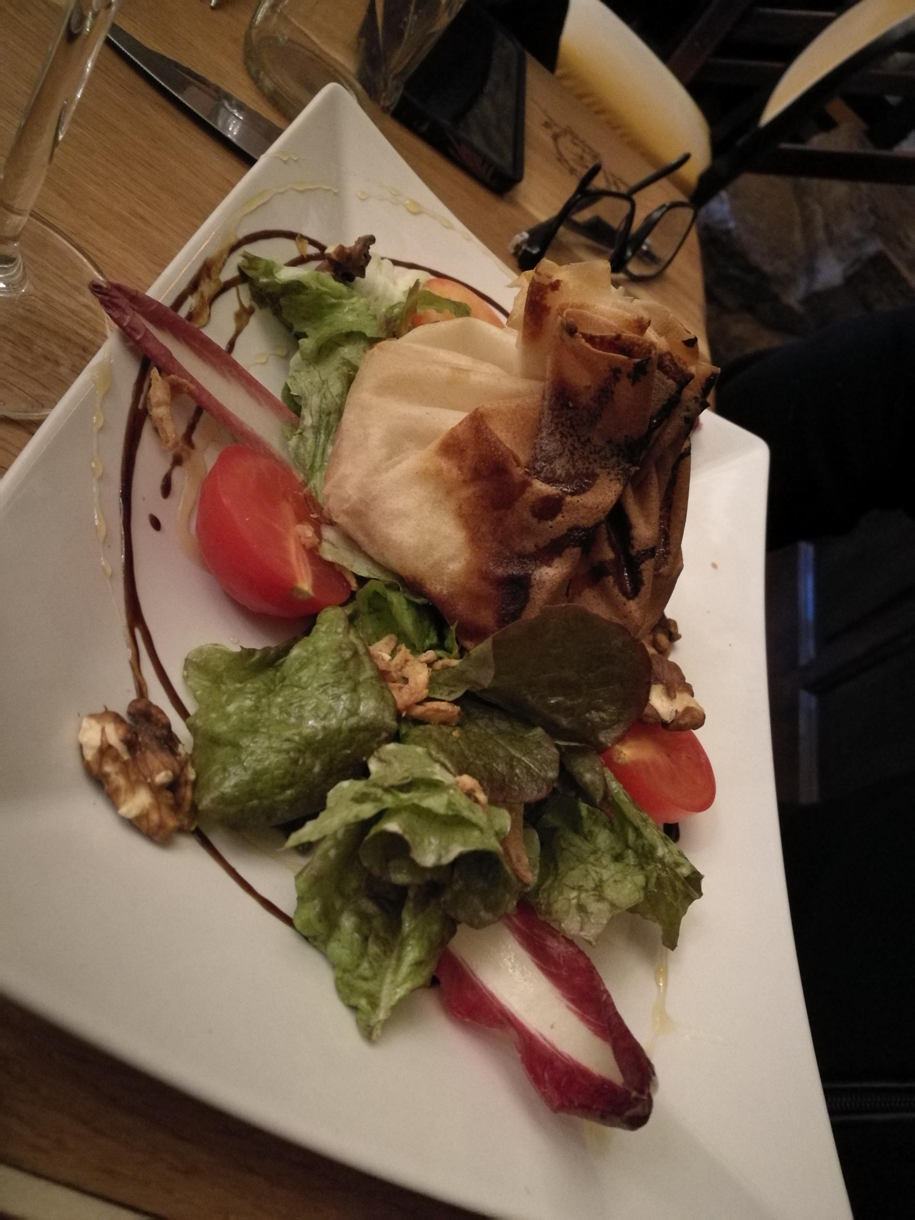 Un sentiment mitigé : le cadre est beau avec des allures de gastro mais les plats sont un peu fades ; bons, sans plus. La verrine framboisier très bonne par contre. Le Service un peu approximatif et long… la commande du vin après que toute la table ait fini son entrée :-/