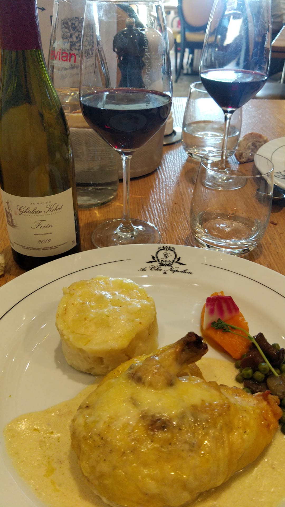 Fixin est un joli petit village et ce restaurant possède un cadre à la hauteur de sa réputation avec notamment une magnifique terrasse avec vue sur les vignes. Les serveurs sont aux petits soins et ont été de très bons conseils pour le choix des vins, tous excellents. Le menu à 40€ nous a comblés, qu'il s'agisse des escargots en entrée, du veau en plat ou des desserts, tous joliment présentés et goûtus. Une petite promenade digestive dans le village vous permettra de clore une soirée réussie ! :)