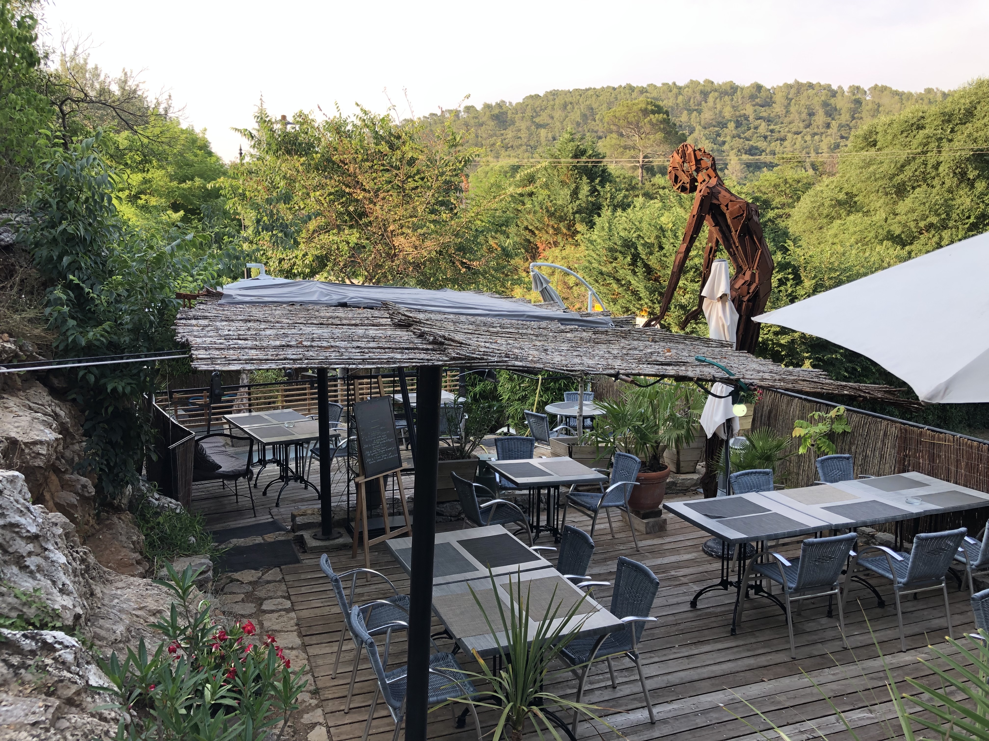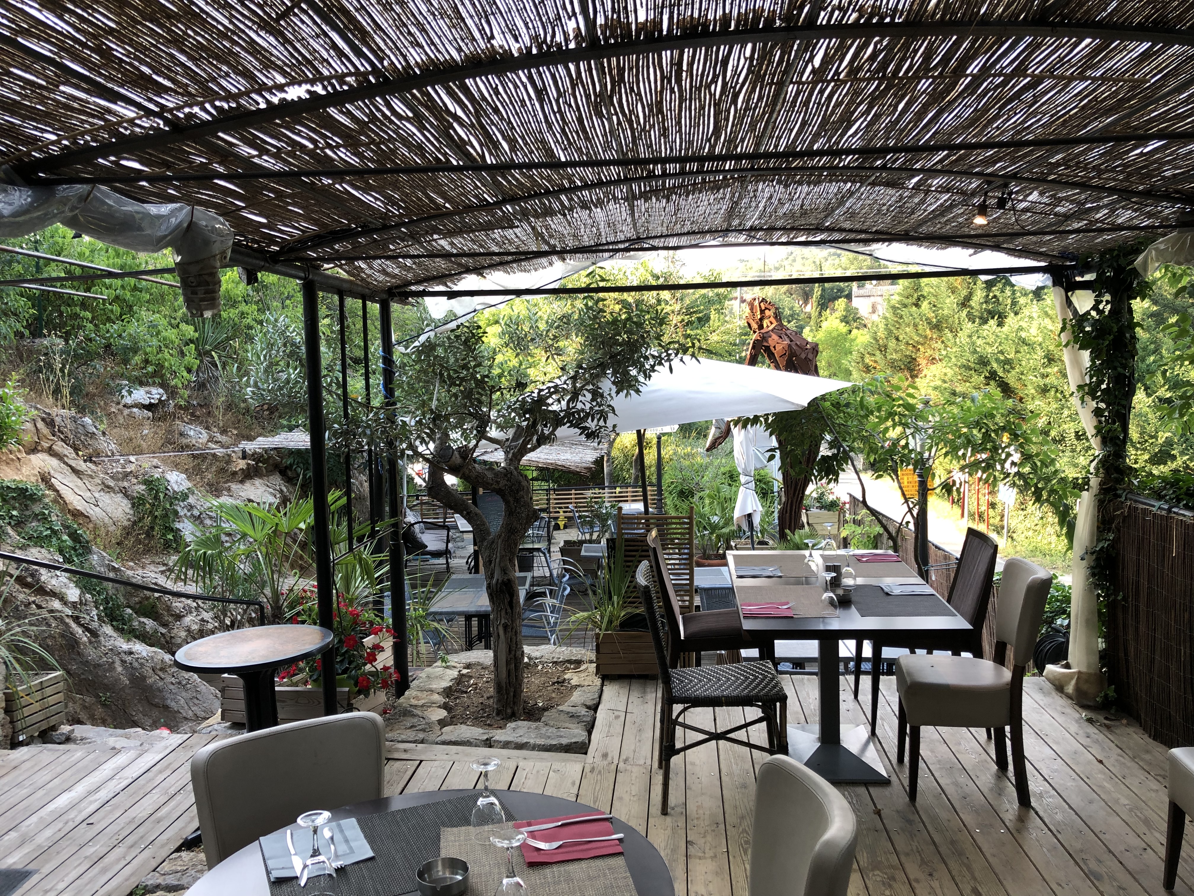 Le lieu est superbe, une terrasse nichée entre la roche et la végétation. Pour le repas l'entrée et le dessert étaient bon mais j'ai été moins convaincue par le plat. Les prix sont très élevés en dehors du menu (qui laisse peu de choix).