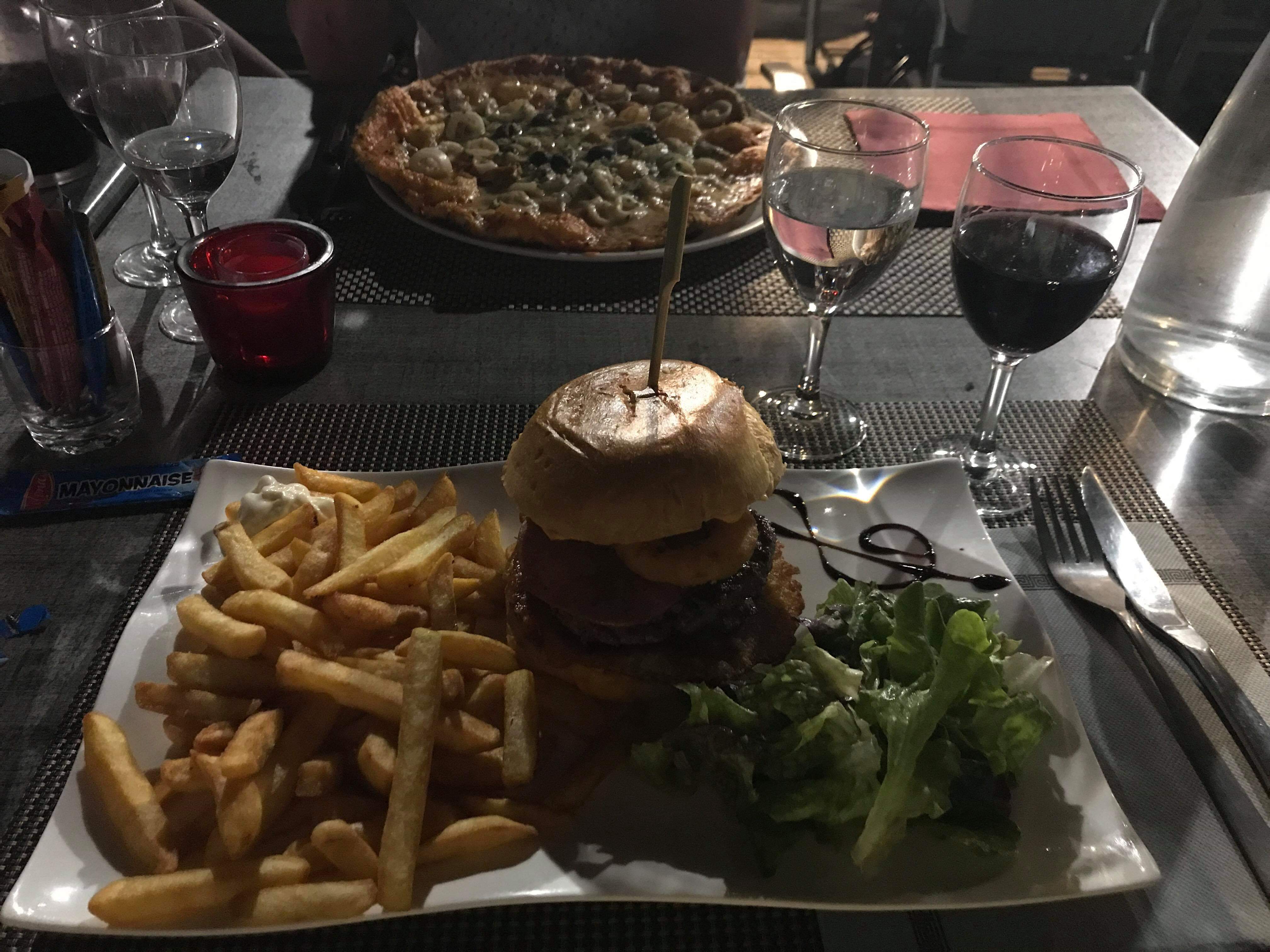Bon restaurant, grande carte (burgers, poissons, pâtes et des pizzas), joli cadre (espace dans la roche rentabilisé) avec une piscine! Génial entre amis POSITIF * plats de qualité, belle présentation NEGATIF * pas de carte bancaire pour payer (la banque la plus proche est à 15 minutes de route, si celle ci est ouverte... PREVOIR DES ESPÈCES), apéritif pas frais