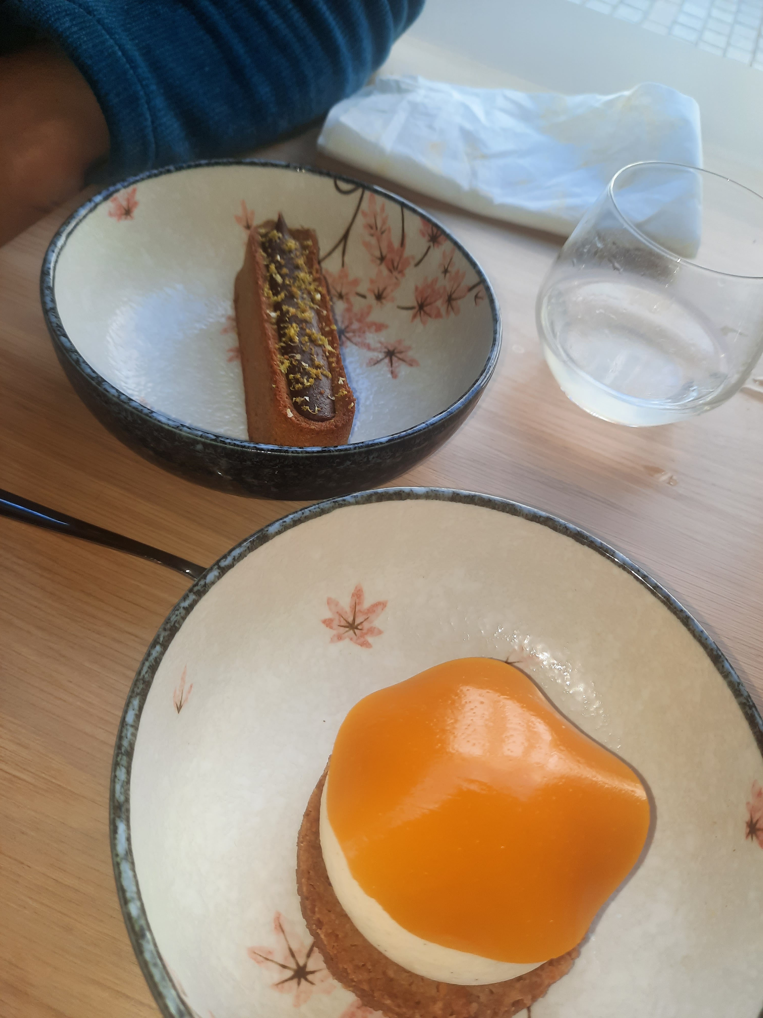 Vous avez sauvé notre soirée un soir de 11 novembre ou tout était fermé….pris vos desserts à la cardamome et insert mangue et fruit de la passion, sablé cacahuete et basilic….un délice. Merci en plus pour votre sourire et gentillesse….