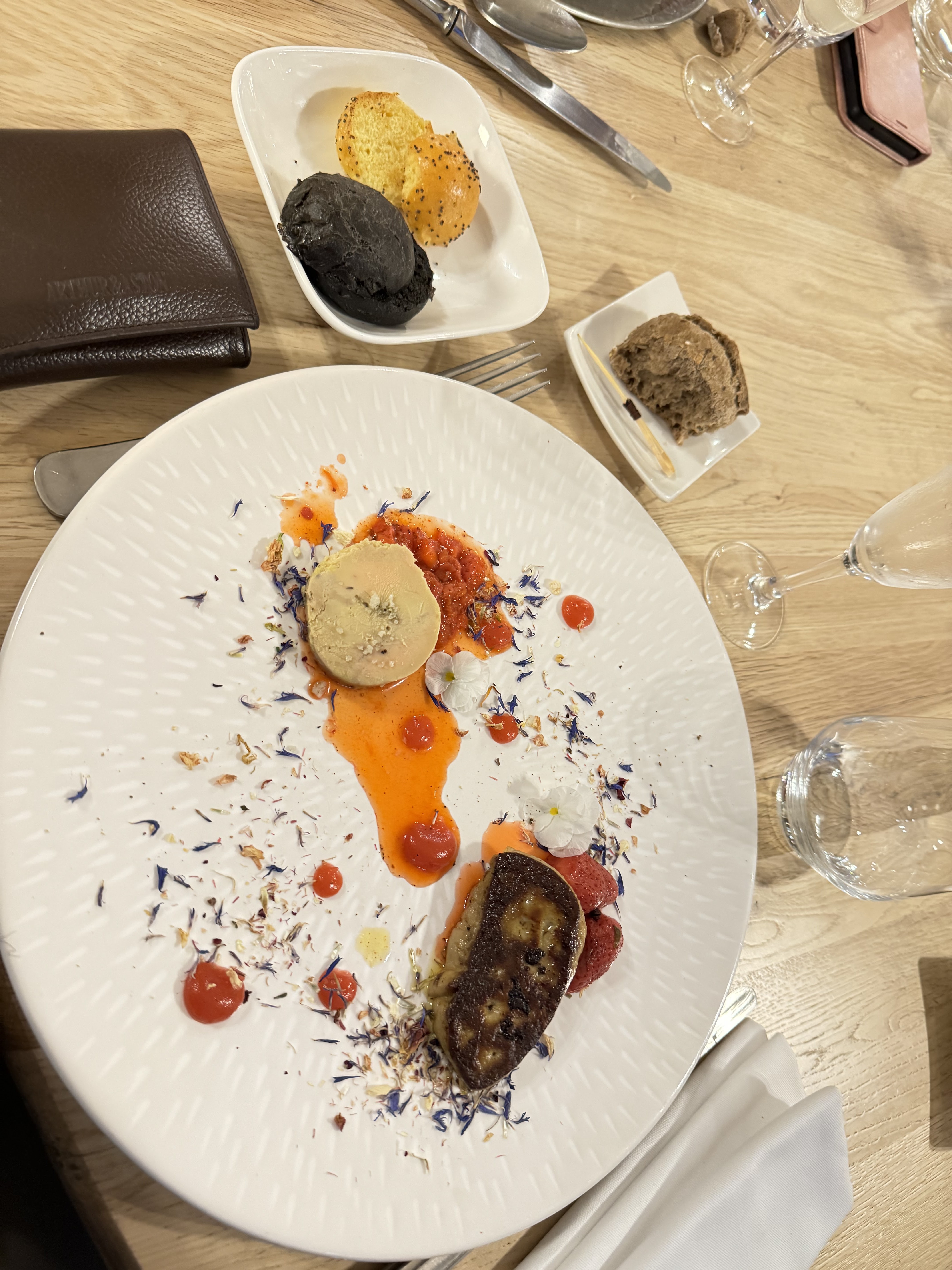 Repas très quelconque.. entrée fades.. poisson fade... déssert dont le thème devait être les fraises qui se résume à de minuscules quart de fraises ...Certes joliment présentées... Si je veux me ravir les pupilles je vais au musée ...là j'y étais pour les papilles ... bref je n'y retournerai pas ... D'autant que le service est lent et les prix pas doux