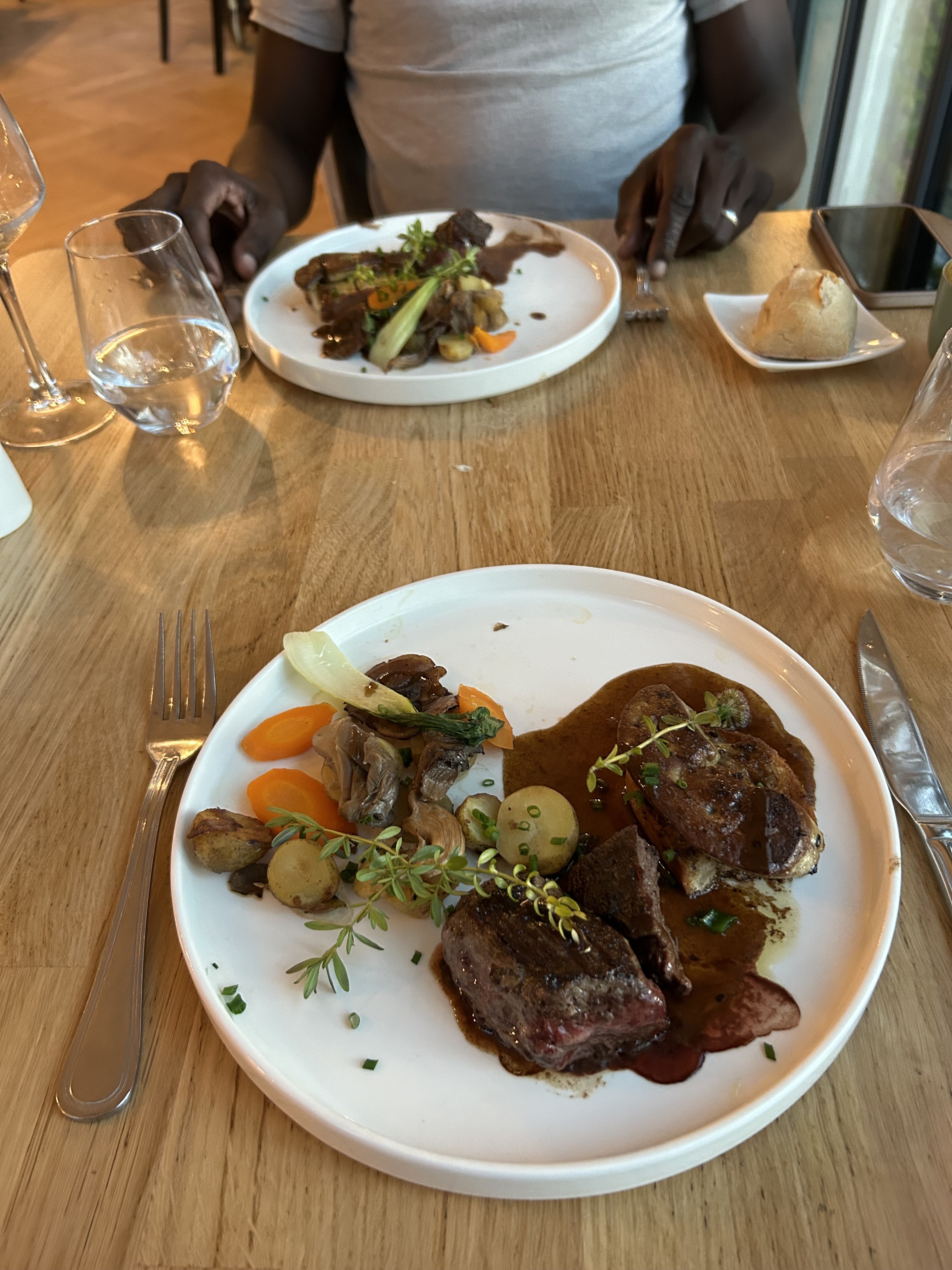 Super moment, la météo capricieuse ne mettait pas en valeur l'endroit, mais on sent la maison de qualité. Apéritif local (whisky Piautre), menu en 5 plats, Chateauneuf du Pape, Cognac. Excellents produits, bien associés, très bien cuisinés. Service impeccable avec le sourire et l'adaptation aux convives, vraiment top ! Je recommande chaudement le restaurant.