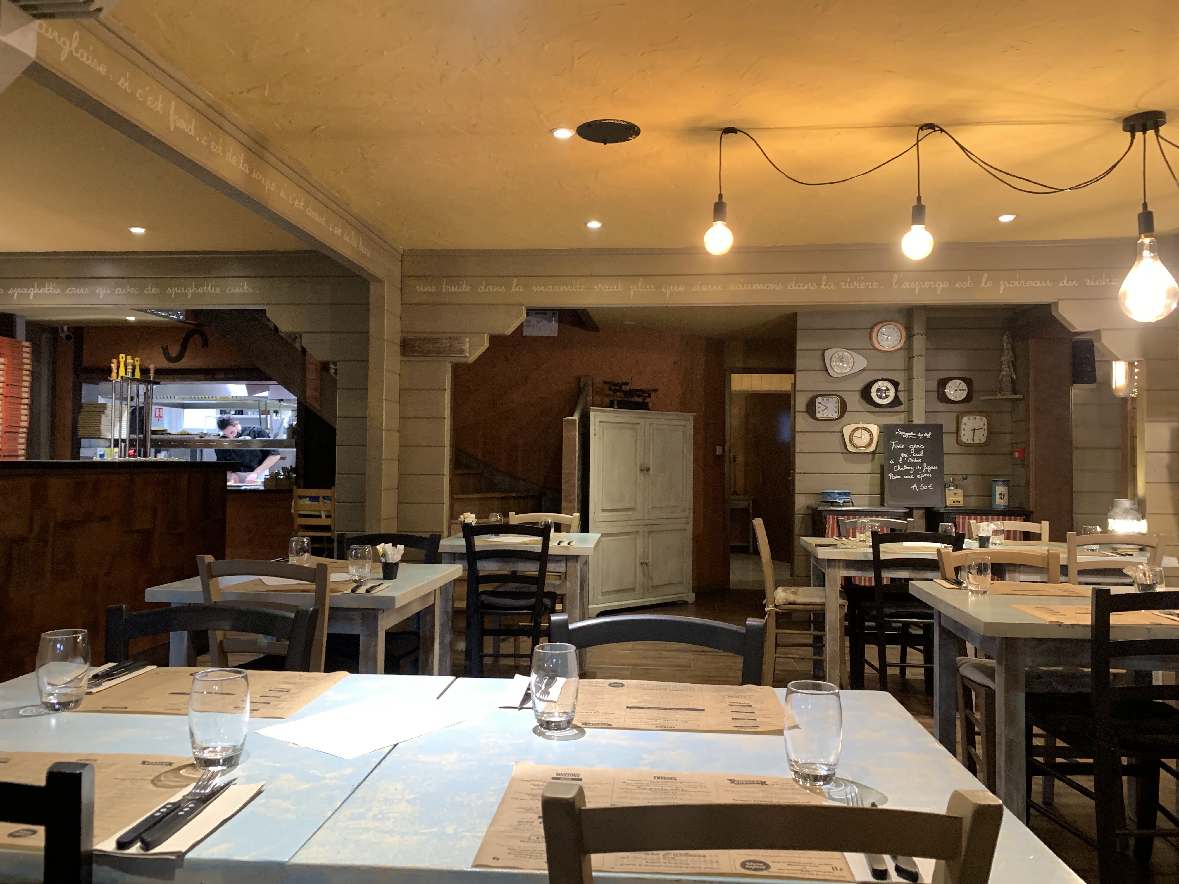 Un restaurant chaleureux, décoré avec goût, avec une cuisine maison que j’ai apprécié. Le burger était délicieux (steak de qualité et pain maison aux myrtilles). Les frites maisons étaient très bonnes, la crème brûlée également (craquante sur le dessus et une bonne crème maison contrairement à un commentaire très étonnant…) Je recommande et y retournerai