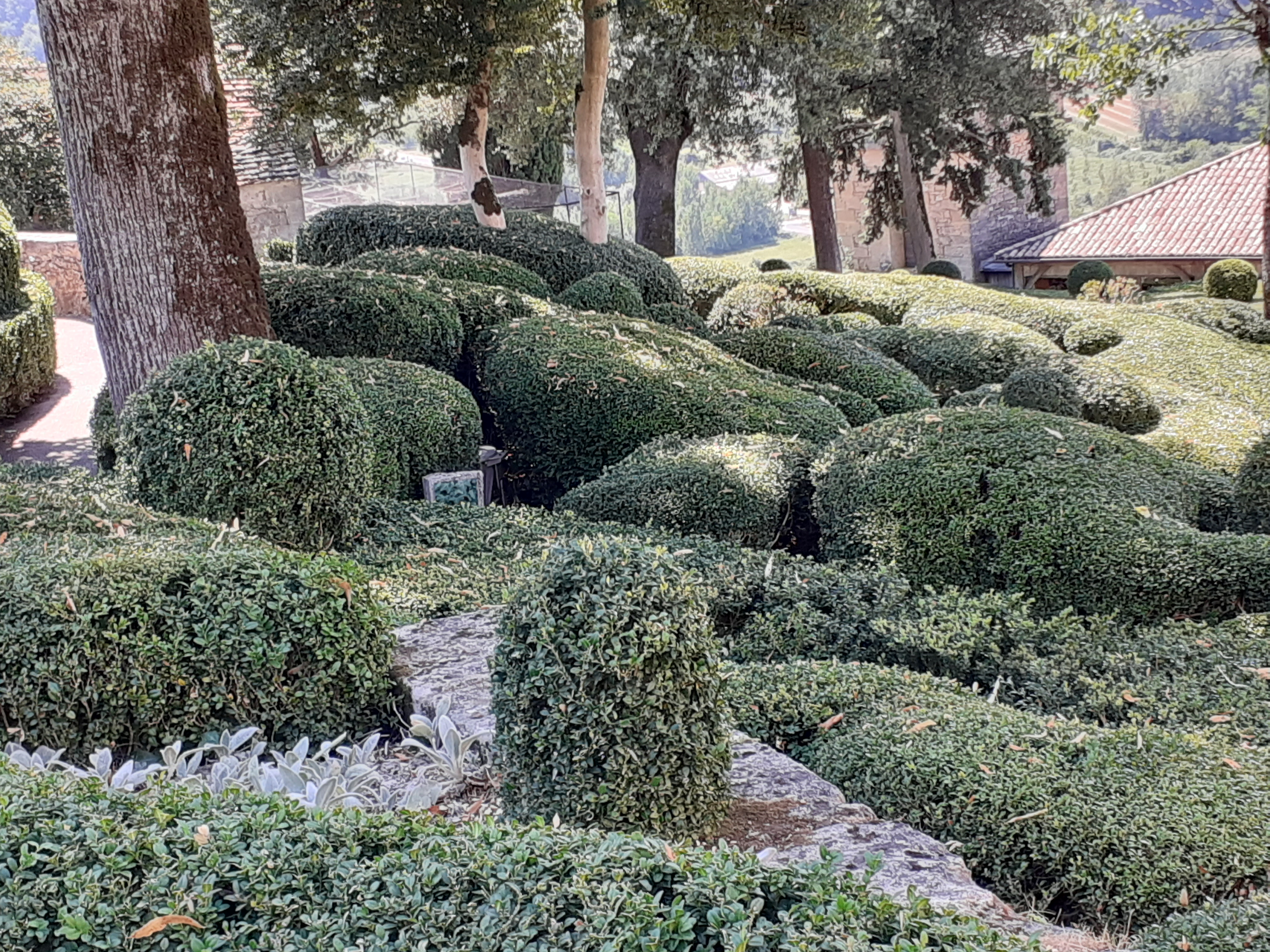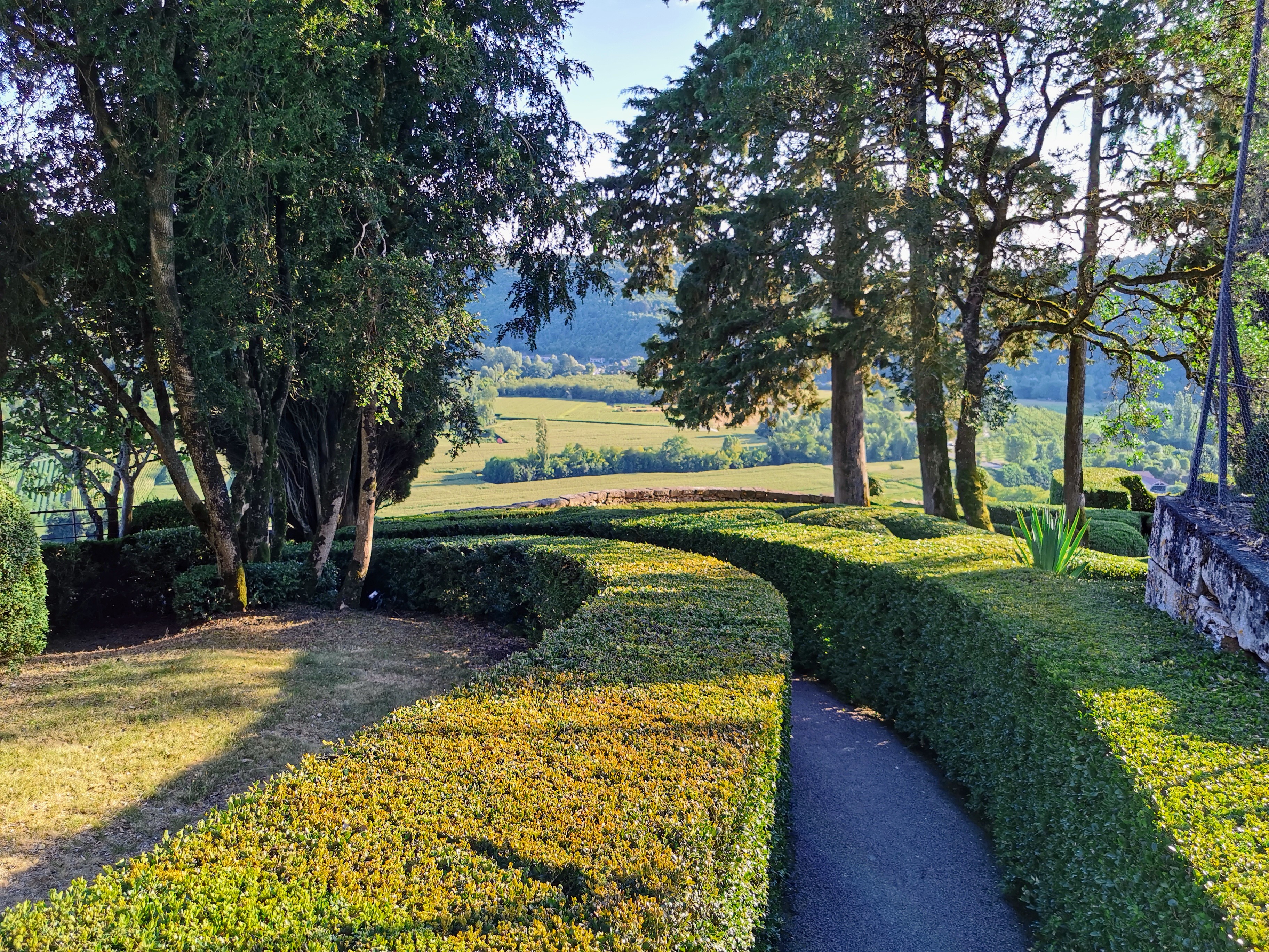 J ai adoré cette ballade joli jardin planté de buis très soigné ballade ombragée et au bout chateau à visiter et superbe restaurant prix convenable nous avons mangé avec les paons je recommande