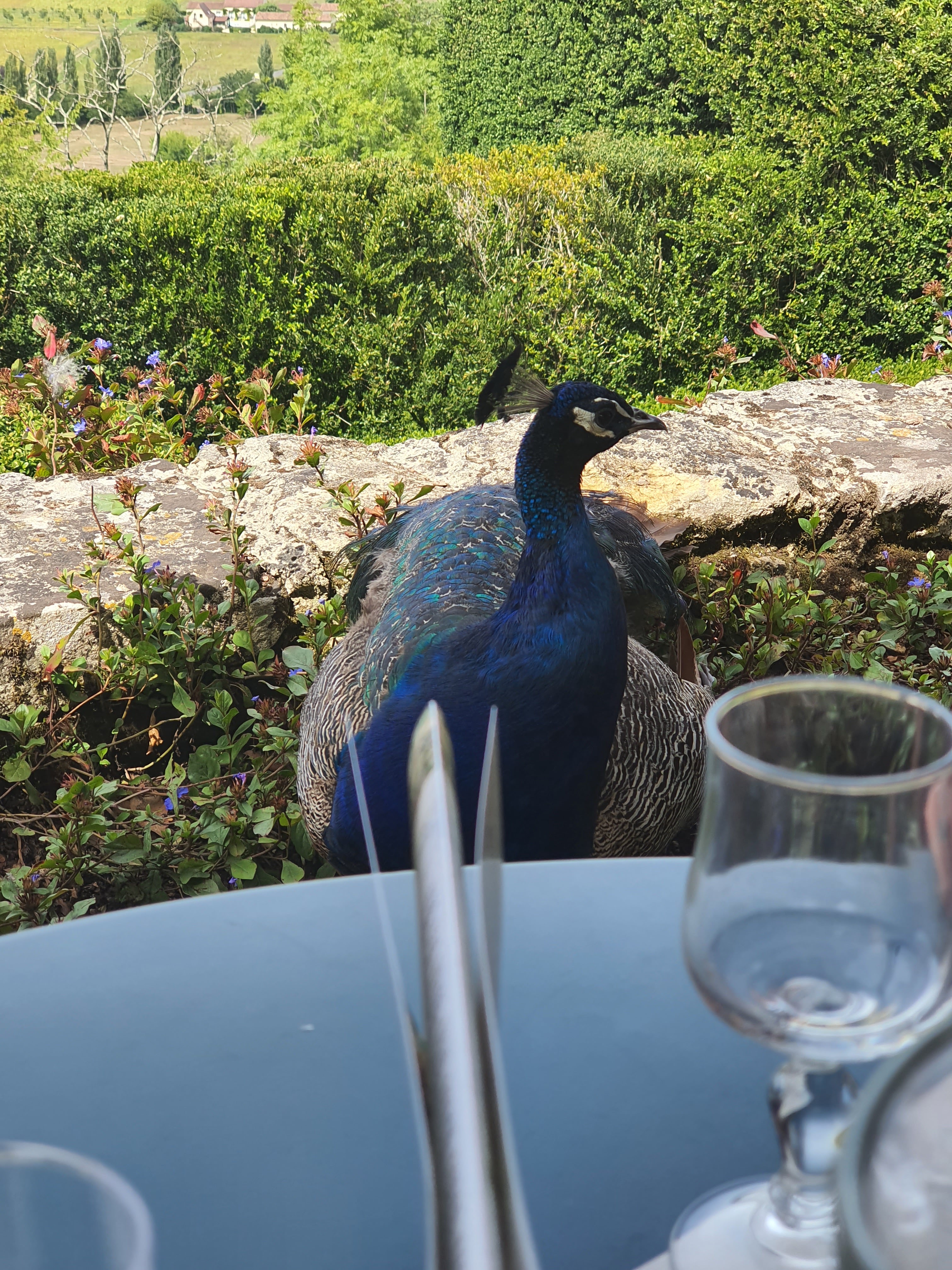 Un endroit magnifique. Déjeuner au mileu des paons