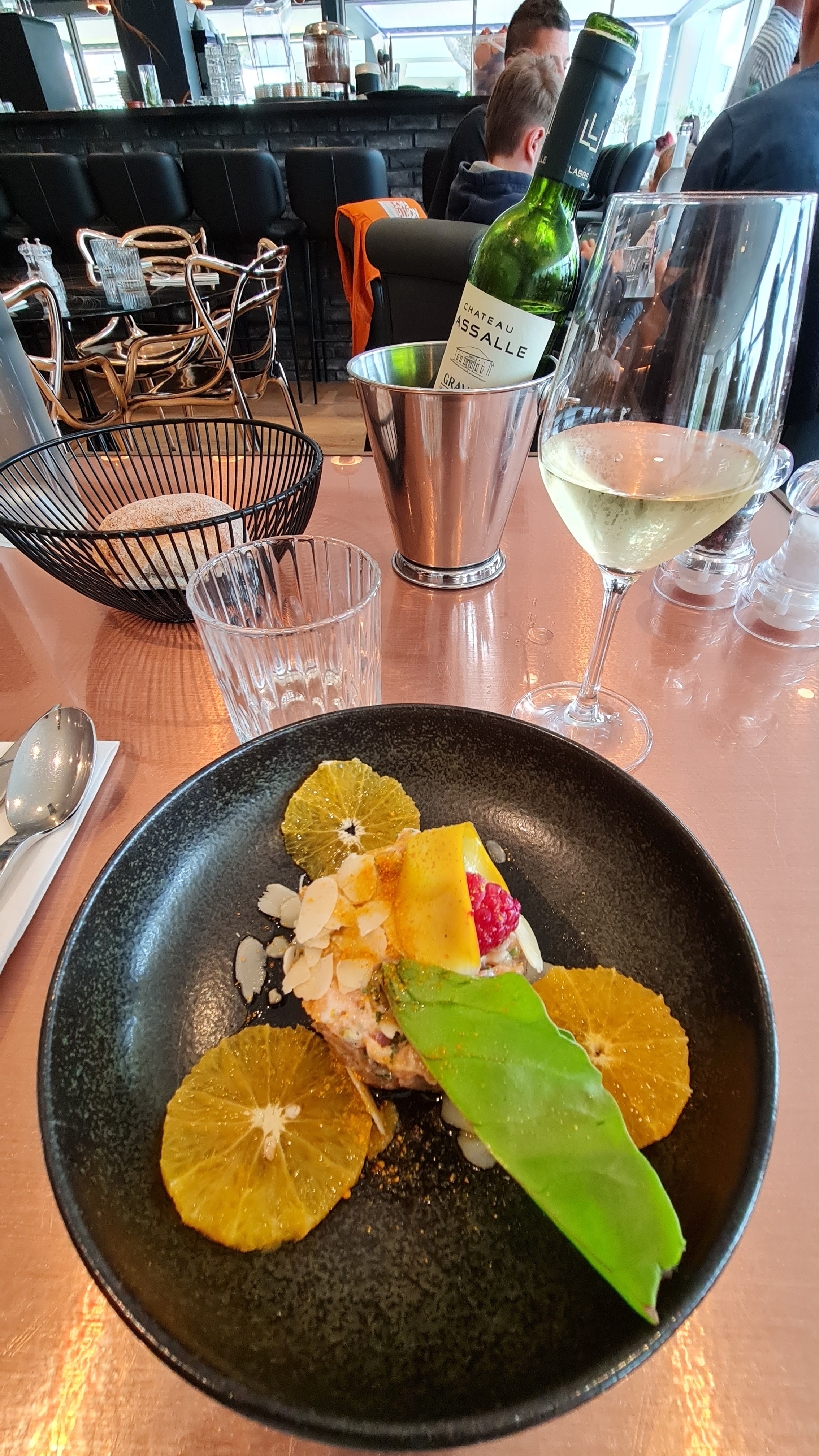Déçue!!! Je ne reviendrai plus. Un restaurant où l'espace est, à mon sens, très mal optimisé. Il est très difficile de circuler entre les tables, y compris pour les serveurs. Un brouhaha permanent et diffus a accompagné notre repas. Ce n'était pas la première fois que nous venions mais jamais placés au milieu de la salle. Une table sans nappe et sans sets de table. J'ai horreur que mes couverts soient directement sur la table. Des verres à eau usés avec des traces. Un verre à vin sale avec des traces également. Nous avions choisi pour commencer un cocktail sans alcool. Rien pour accompagner. Il manquait quelques amuses bouches et les cocktails n'avaient rien d'exceptionnels. Une côte de veau avec des frites, la viande était tendre. Un burger bon. Un verre de vin doux qui en bouche s'approchait plus d'un vin sec. Et pour terminer, une forêt noire avec un goût de café et un baba baignant dans un sirop beaucoup trop sucré et très désagréable à la dégustation. Ce baba écœurant qui n'est pas digne d'un restaurant, m'est resté sur l'estomac tout l'après-midi. Le tout pour plus d'une centaine d'euros. L'addition est salée pour des mets qui ne sont pas en adéquation avec un restaurant de standing. Le rapport qualité/prix est mauvais. Un serveur agréable, ce qui n'est pas le cas de deux de ses collègues. Le sourire est en option ! La cerise sur le gâteau, les toilettes pour hommes étant fermées à la suite d’un problème, seul l'unique lieu de commodités destiné aux femmes était accessible. Un temps d'attente intolérable juste pour se laver les mains. Pas de papier toilette et un sol digne d'une pataugeoire.