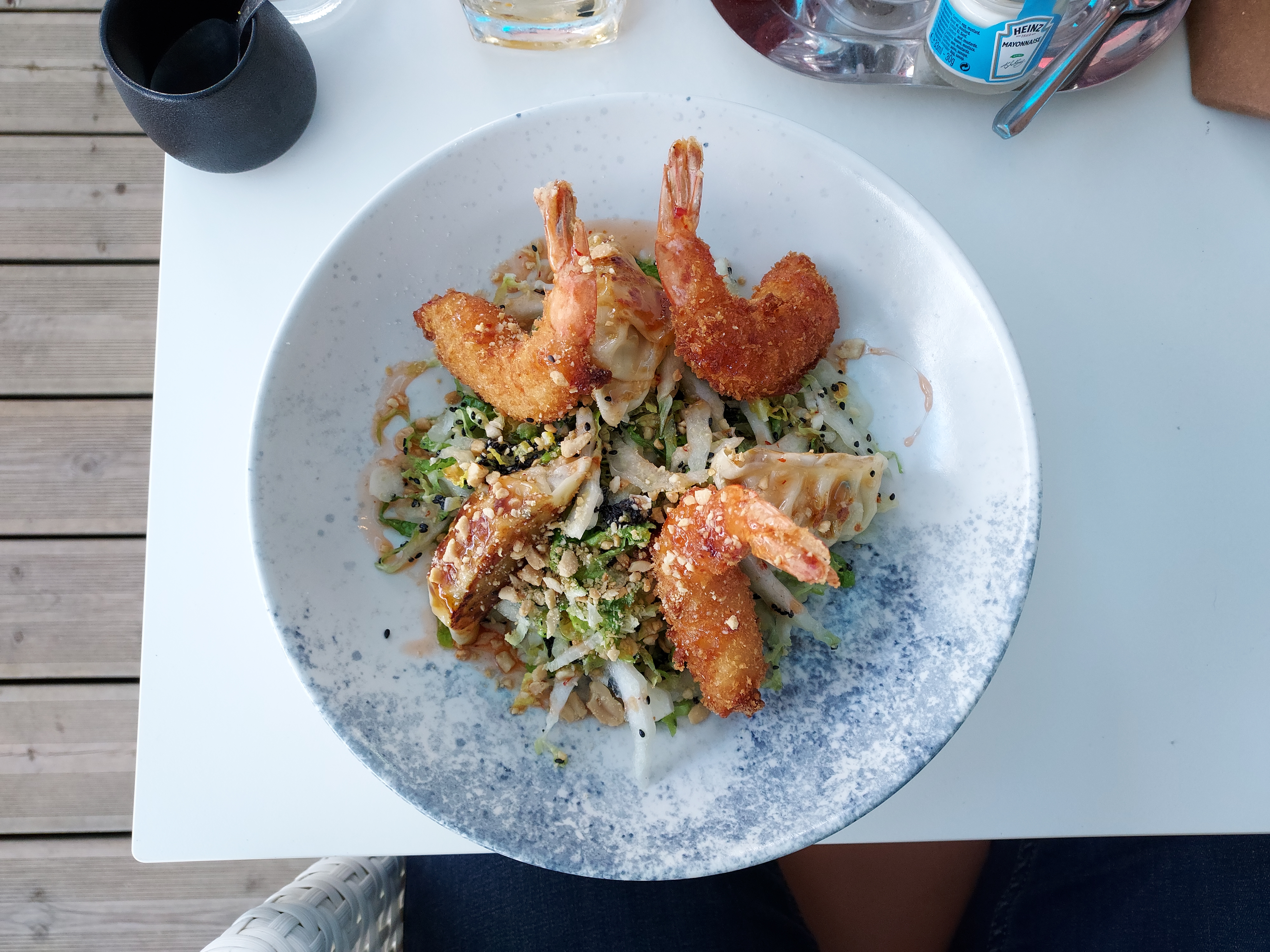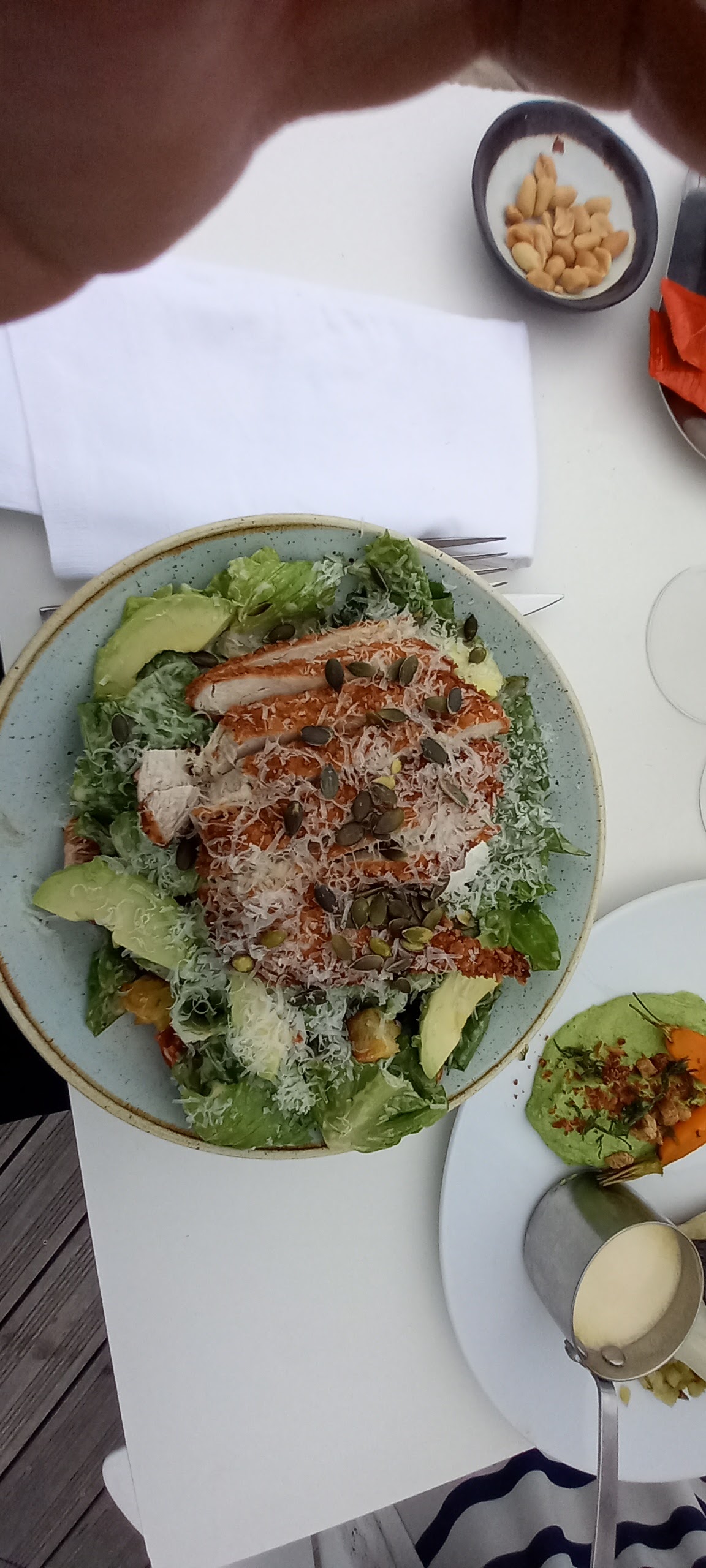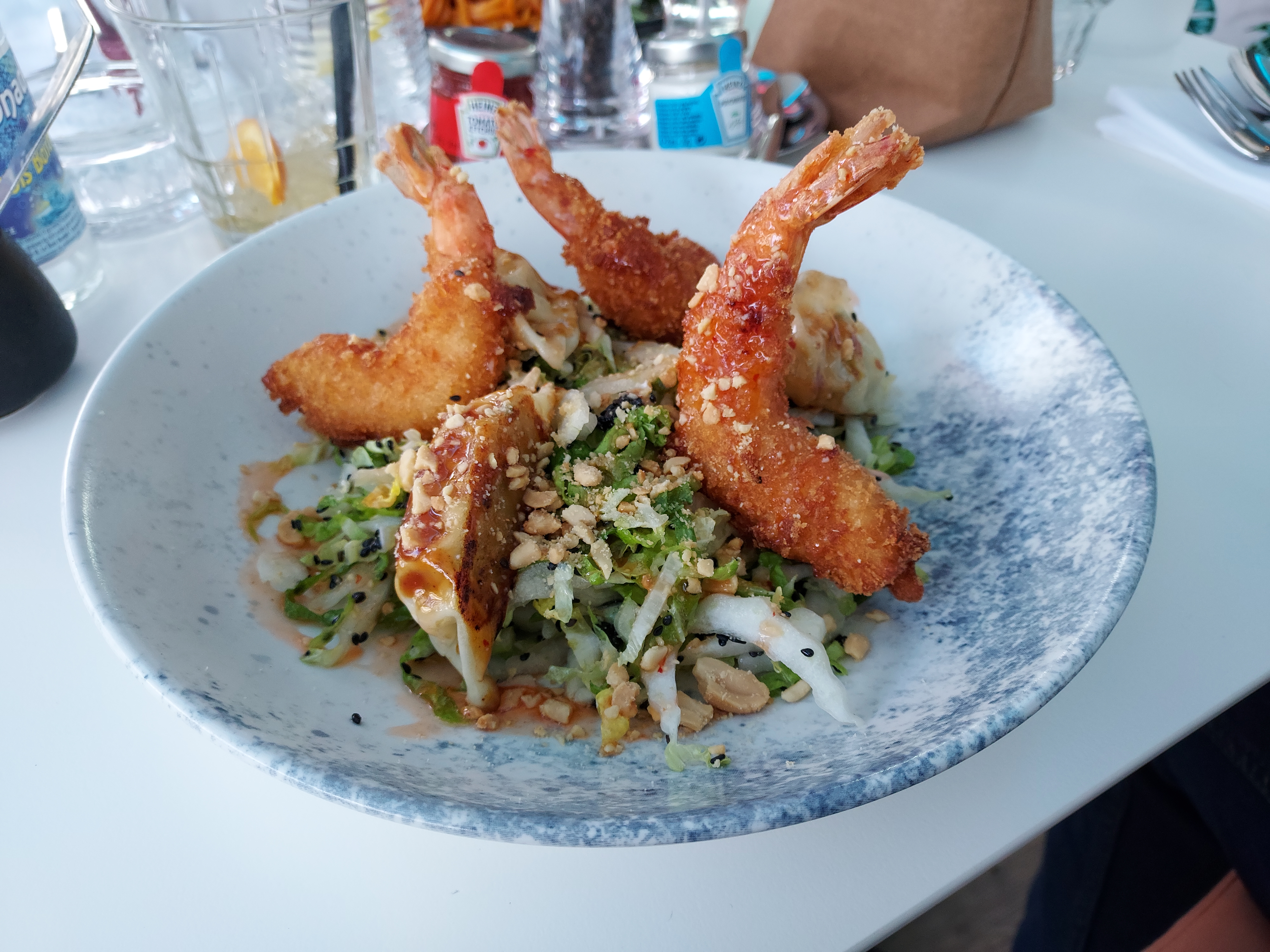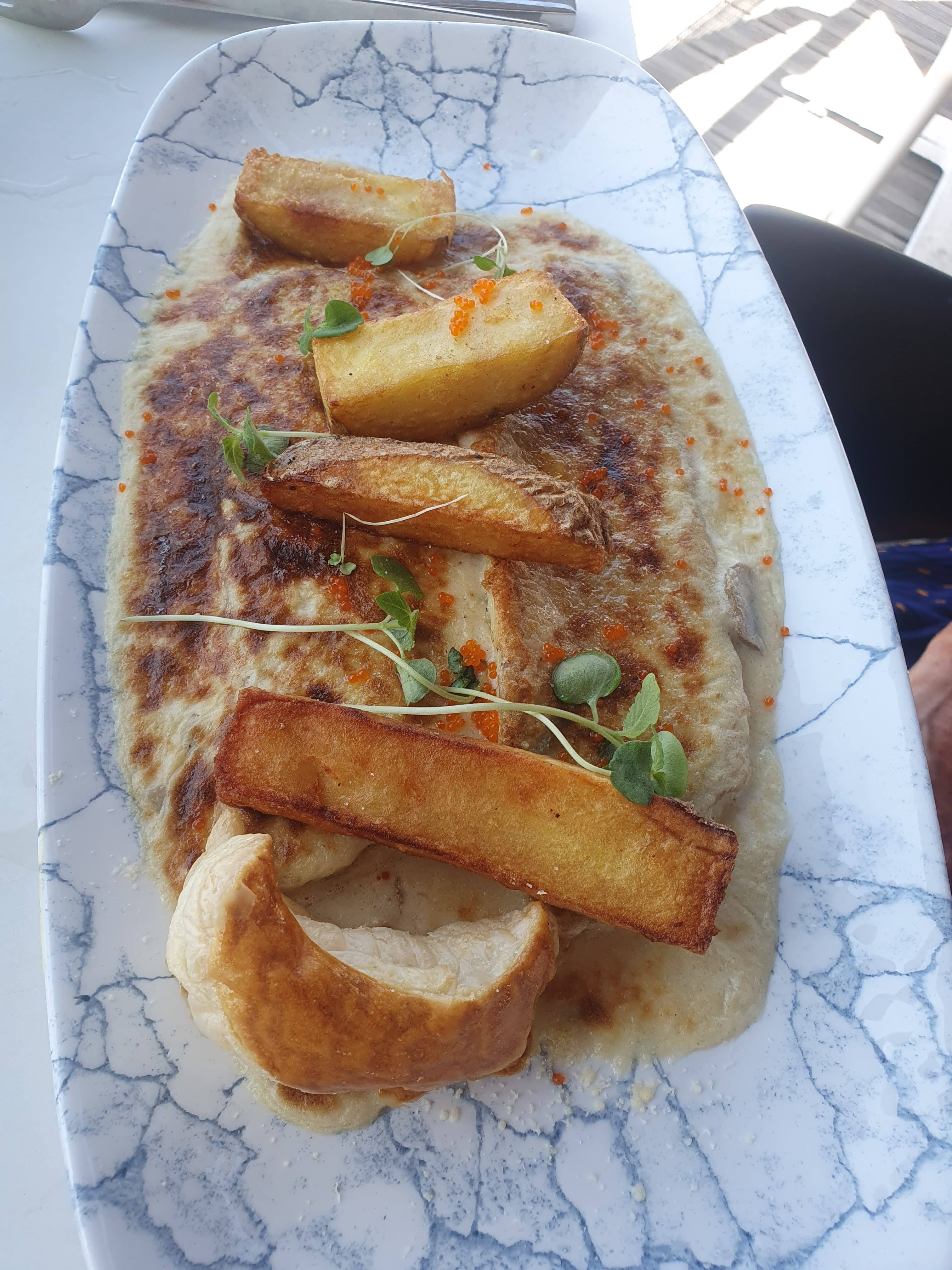 Un lieu que je recommande mais où il faut faire attention malgré tout. Une étoile pour le cadre, c’est très bien situé, avec terrasse face à la mer. Une étoile pour le staff, pas de réservation mais nous avons eu une table à l’extérieur. Les personnes nous ont accueillis avec sourire et on était au petits soins. Une étoile pour la compensation suite aux erreurs - ils n’ont pas pris en compte l’allergie aux cacahuètes ( que nous avons annoncés a l’apéro, le plat en comporte et le carte le le mentionne pas ) - Nous commandons du vin année 2017 et on nous a servis une bouteille de 2019. Heureusement que j’ai pu prévenir mon conjoint pour les cacahouètes et qu’il a pu cracher la seule bouchée qu’il a pris. Compassion du restaurant ; Patates douces offertes et bouteilles de vin offerte également.