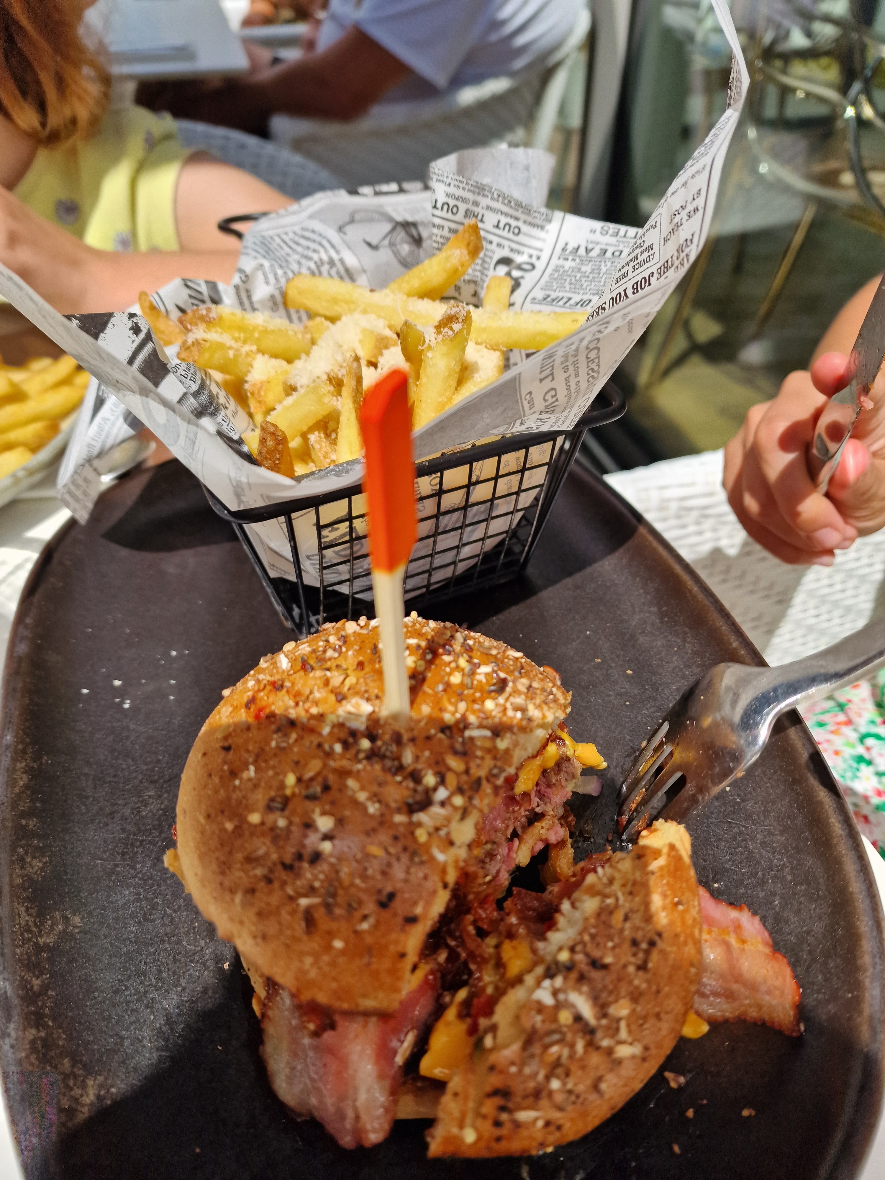 Nous sommes venus déjeuner le dimanche de pâque à une heure tardive à 8 mais avons tout de même été accepté, un point positif ! Superbe vue et carte varié, plats généreux et bons. Cependant serveur qui ne connaissait pas la carte ainsi qu’un des plats oublié. Mise à part ces oublis le service (service rapide par ailleurs) la nourriture, et l’ambiance était au rendez vous. Ah oui et il manque des trucs pour les végétariens quand même. Des bisous.