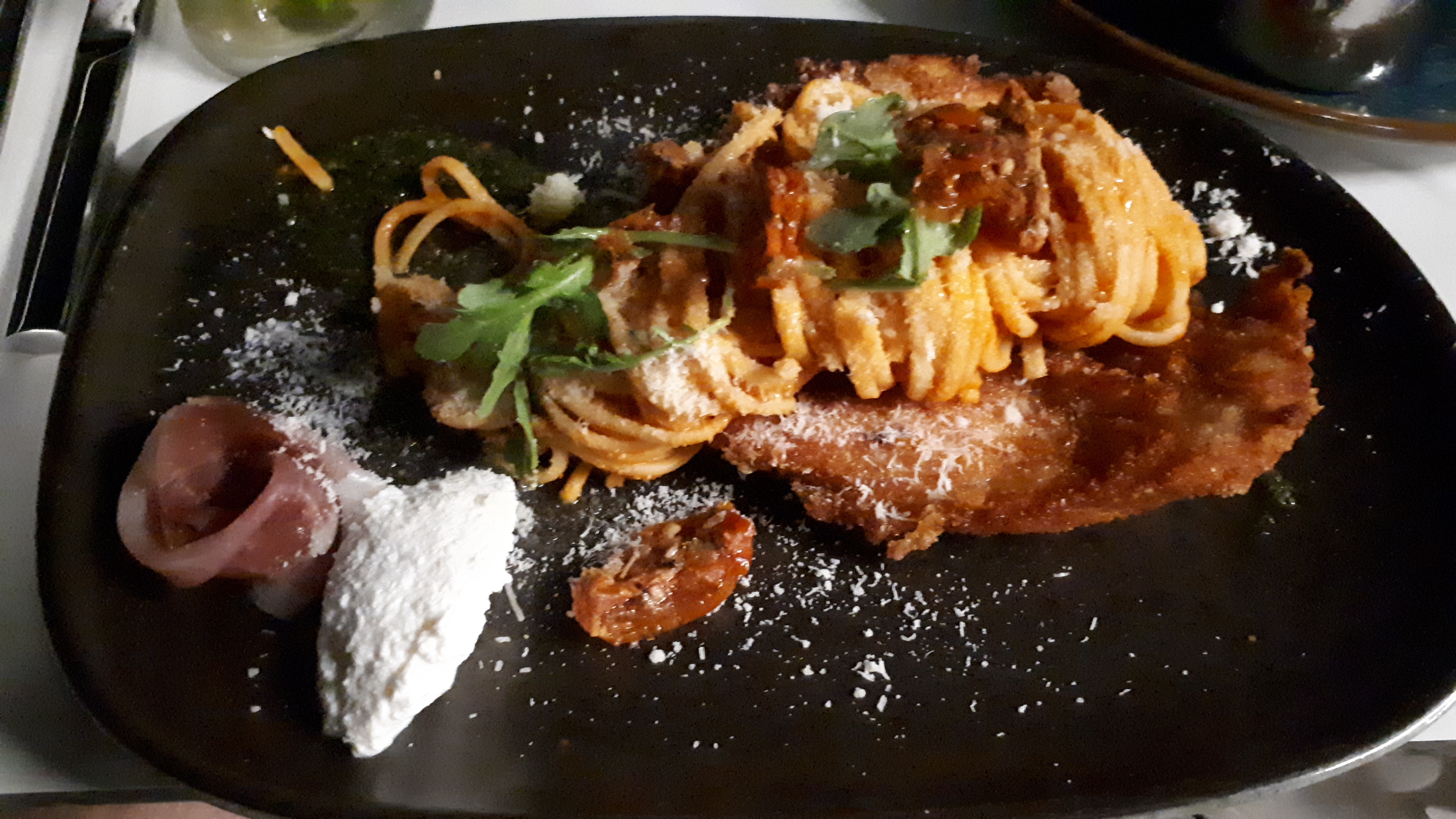 Très jolie ambiance mais qui n'est pas au niveau très faible d'une cuisine bobo aux dénominations incompréhensibles et surtout insipide. Du poulet pané quelconque et du poisson trop salé accompagnés de pâtes trop cuites. On s'en va , on ne prendra pas de dessert.