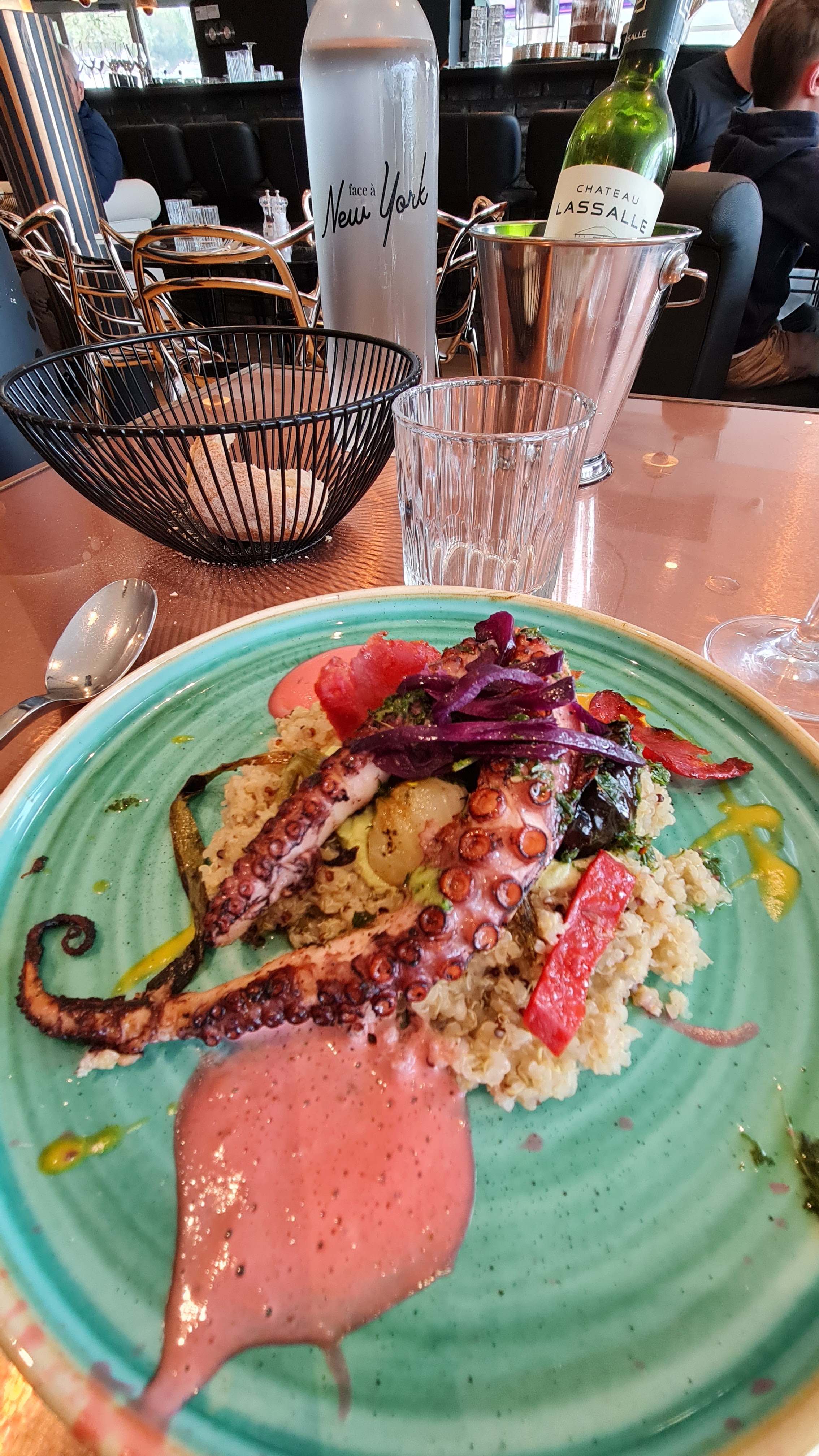 Toujours un bon moment au face à New York. Les plats sont top et le personnel agréable et souriants. Ça remonte le moral malgré la journée pluvieuse. Nous reviendrons pour notre incontournable petit déjeuner en terrasse !!