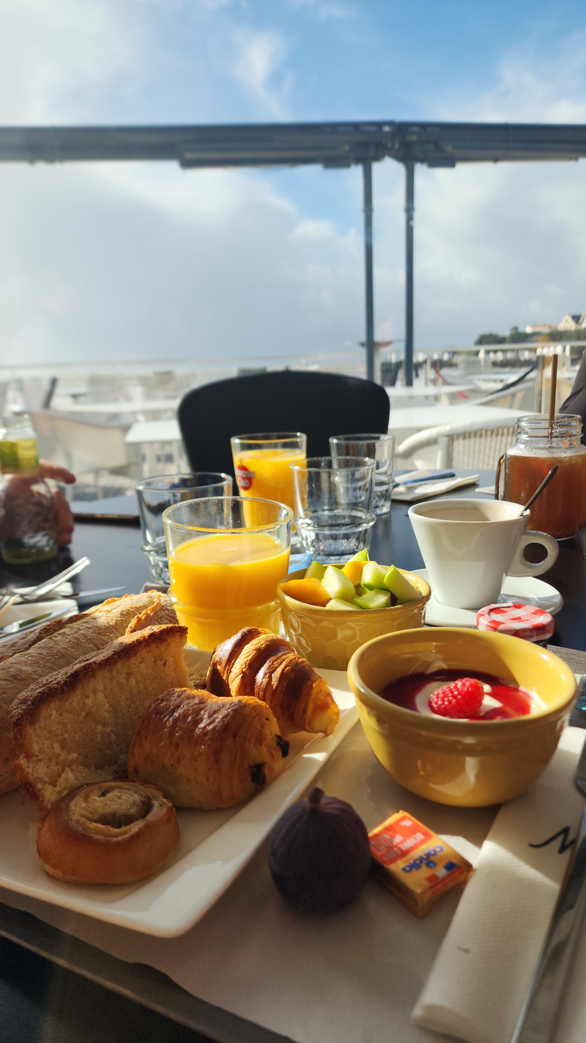 Je viens de la Rochelle et je rends souvent visite a ma soeur à Royan et viens donc prendre mon petit dej de temps en temps le dimanche. Eh bien maintenant plus du tout. Le petit déj est correct, par contre les serveurs... déjà avoir un sourire ce jour là était compliqué malgré notre joie d'être en ce lieux avec notre filleule mais la suite laisse vraiment à désirer. Une table de touriste qui je le reconnais était un petit peu désagréable on du embêter les serveurs je suppose... Ah non je ne suppose pas vu que les serveurs ont râlé très fort dans le restaurant intérieur leur mécontentement( je site : elles cassent les co*Illes , tu vas les servir elles moi j'y vais pas , non mais elles sont grave chiantes et désagréable, tu as de la monnaies toi ? Non ? Oh bah t'inquiète je vais leur dire que c'est mort , attend c'est bon ils vont pas nous gonfler des le matins les clients ) auprès de leur responsable oubliant donc que les autres clients pouvaient les entendre. A la limite si les clients vous cassent les co*uilles chose qui doit arriver souvent je le conçois évitez peut-être de le crier dans le restaurant et dites le plus discrètement ou sinon quittez peut-être la restauration en zone balnéaire. C'est dommage parce que les fois d'avant était très convenable , mais la limite j'étais super gêné de même demander à un serveur un rehausseur pour la petite ou de passer ma commande de crainte de les entendre râler de mon conjoint et moi même. Effectivement je ne ferais pas de bonne pub de votre restaurant et j'irais chez vos voisins.