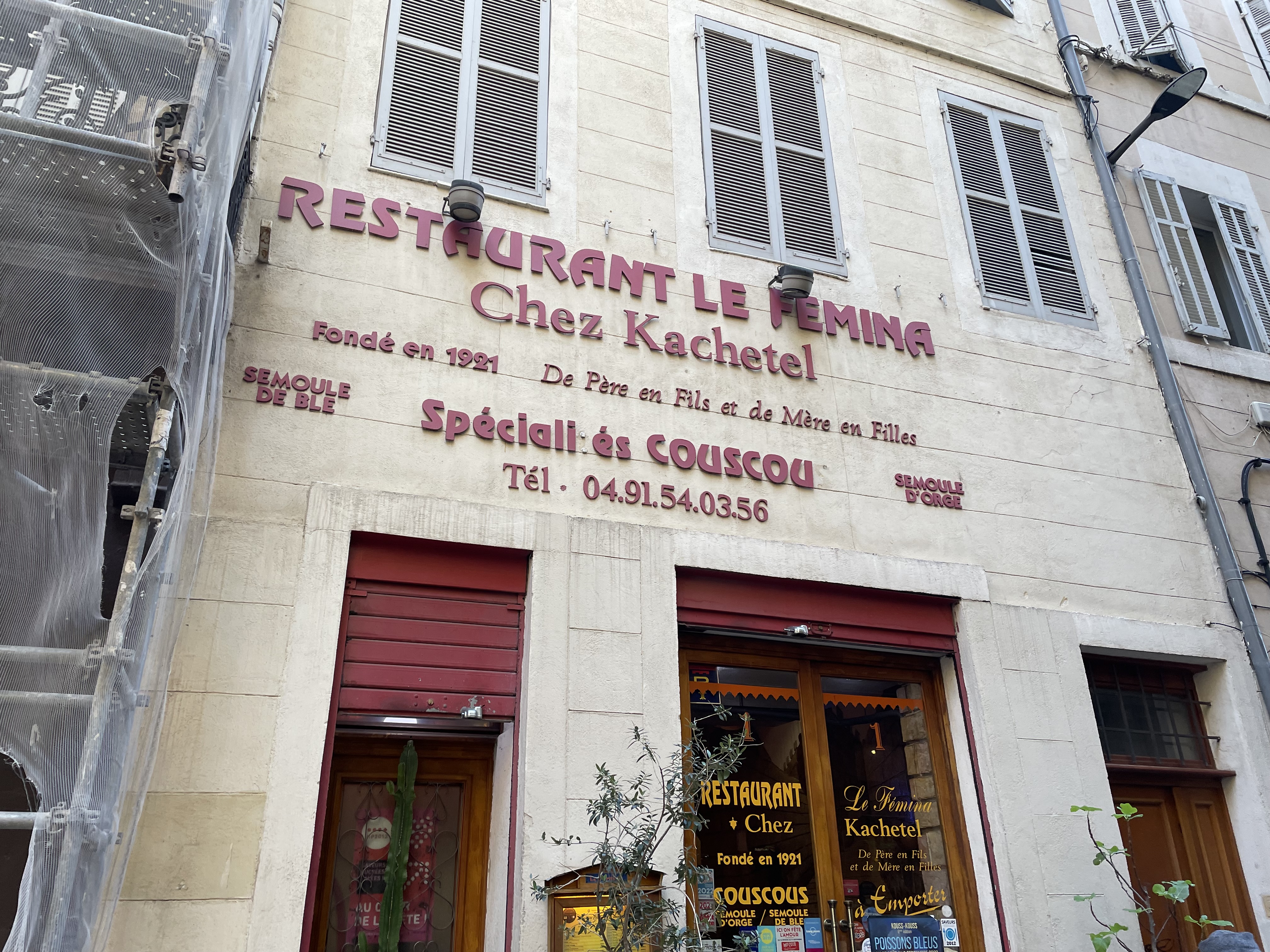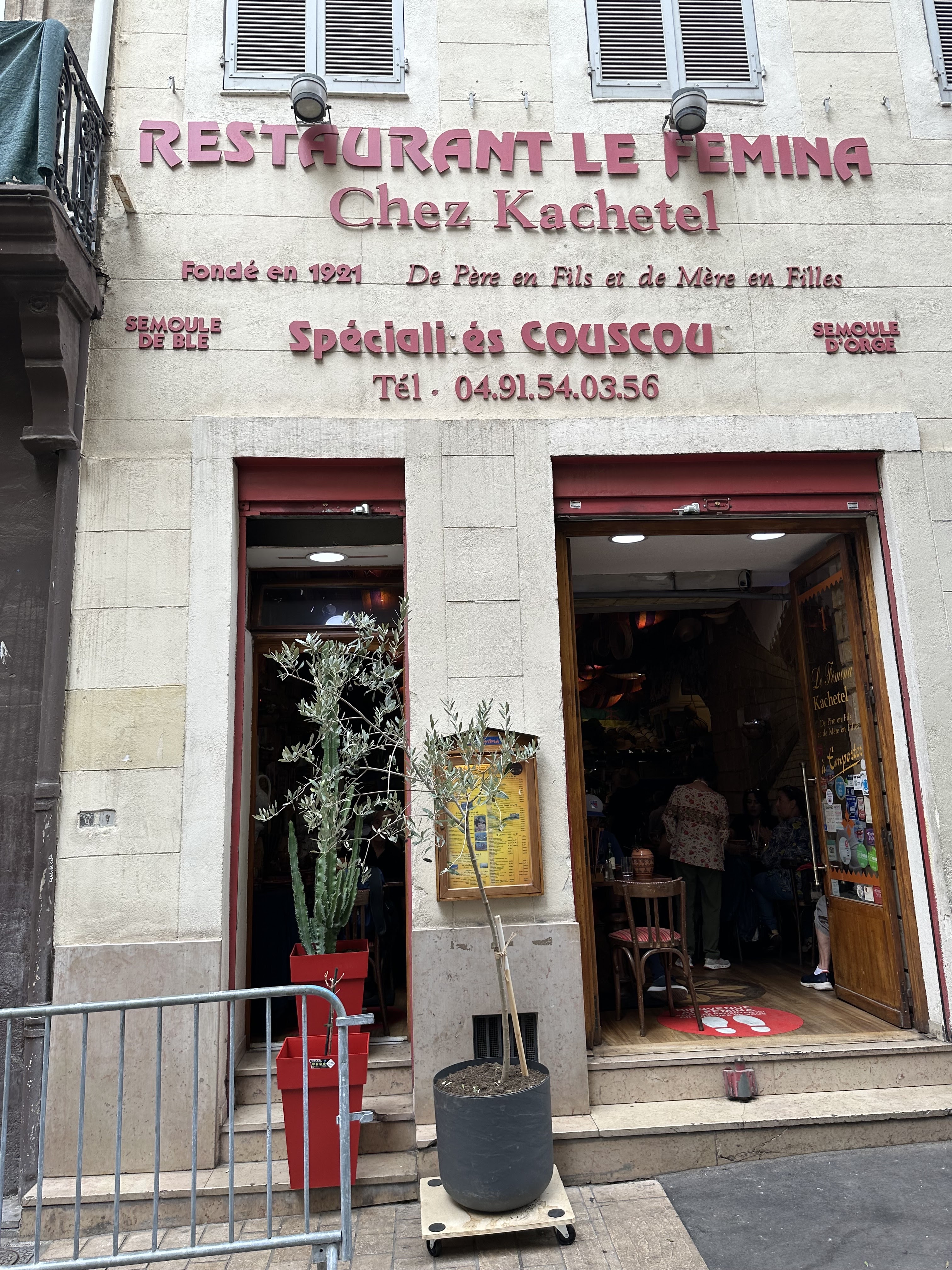 Le Femina chez kachetel. En plein cœur de Noailles, l'un des ventres de la citée phocéenne, ce restaurant Kabyle, une institution depuis 1921, propose ici, en image, un excellent couscous au méchoui 😉