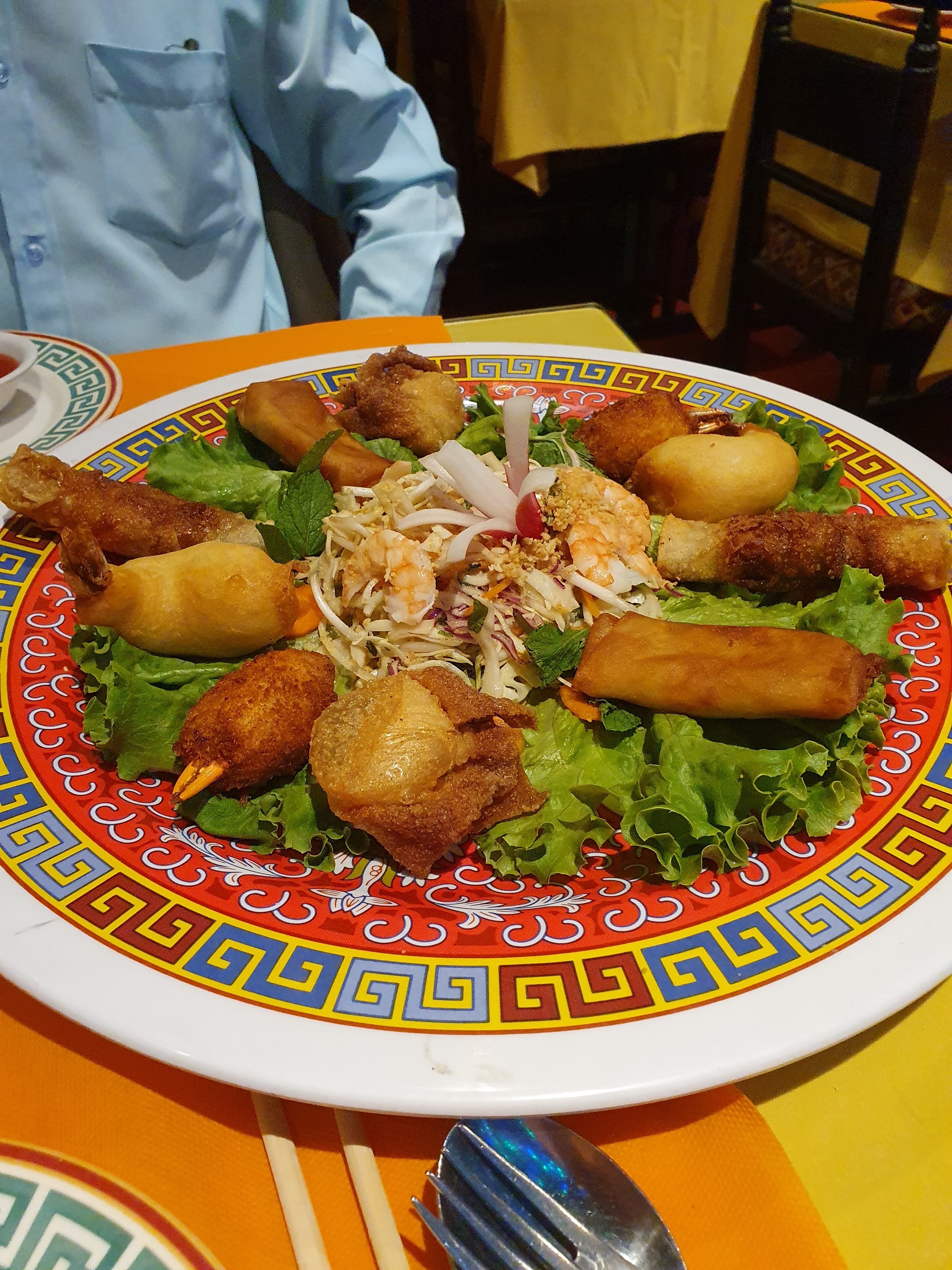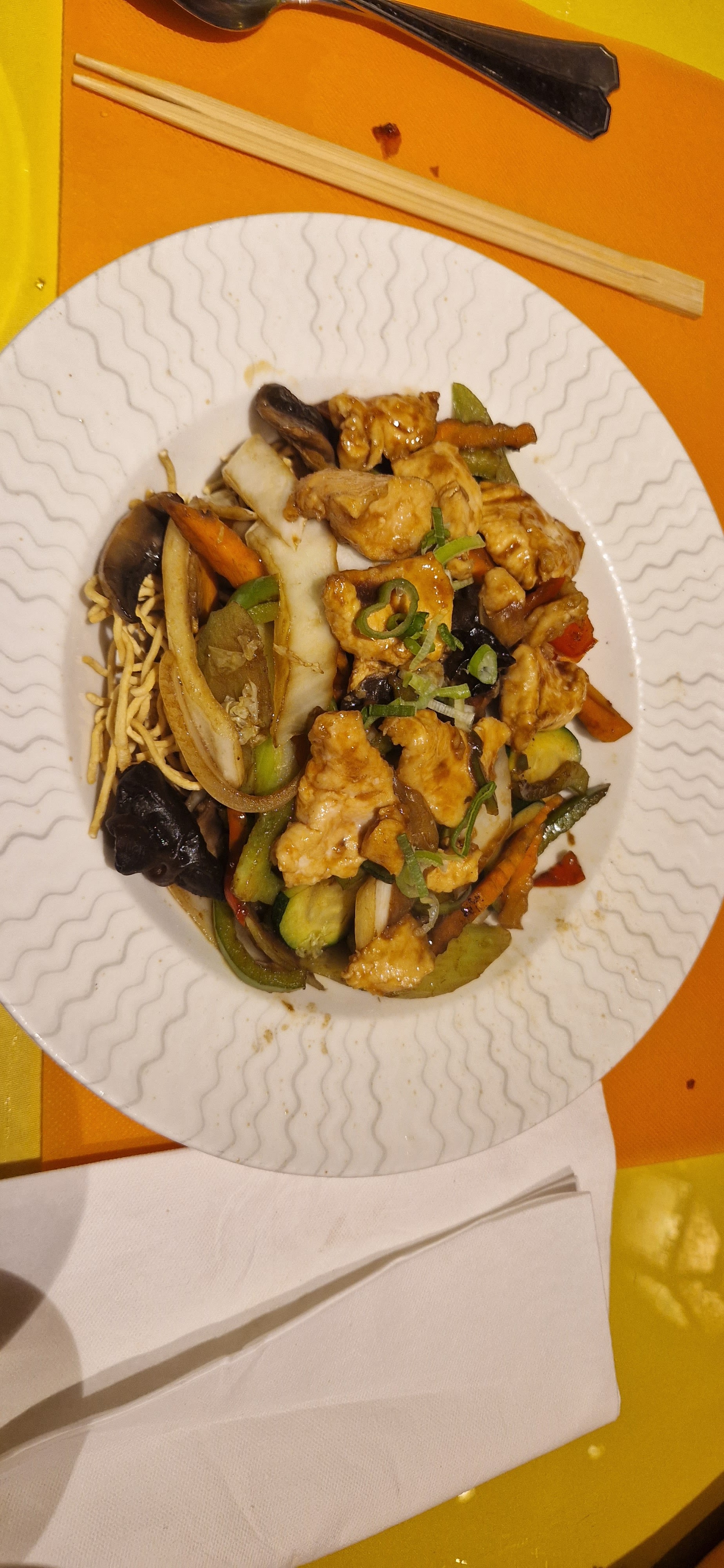 Le lieu est sympa niveau décoration, au niveau des plats, les nems , bien croustillants et très bons mais en revanche en ce qui concerne le poulet aux amandes, le poulet avait un goût qu'on aimait pas du coup nous l'avons laissé de côté , et avons mangé les légumes qui eux étaient bons mais le riz a refroidi très vite.