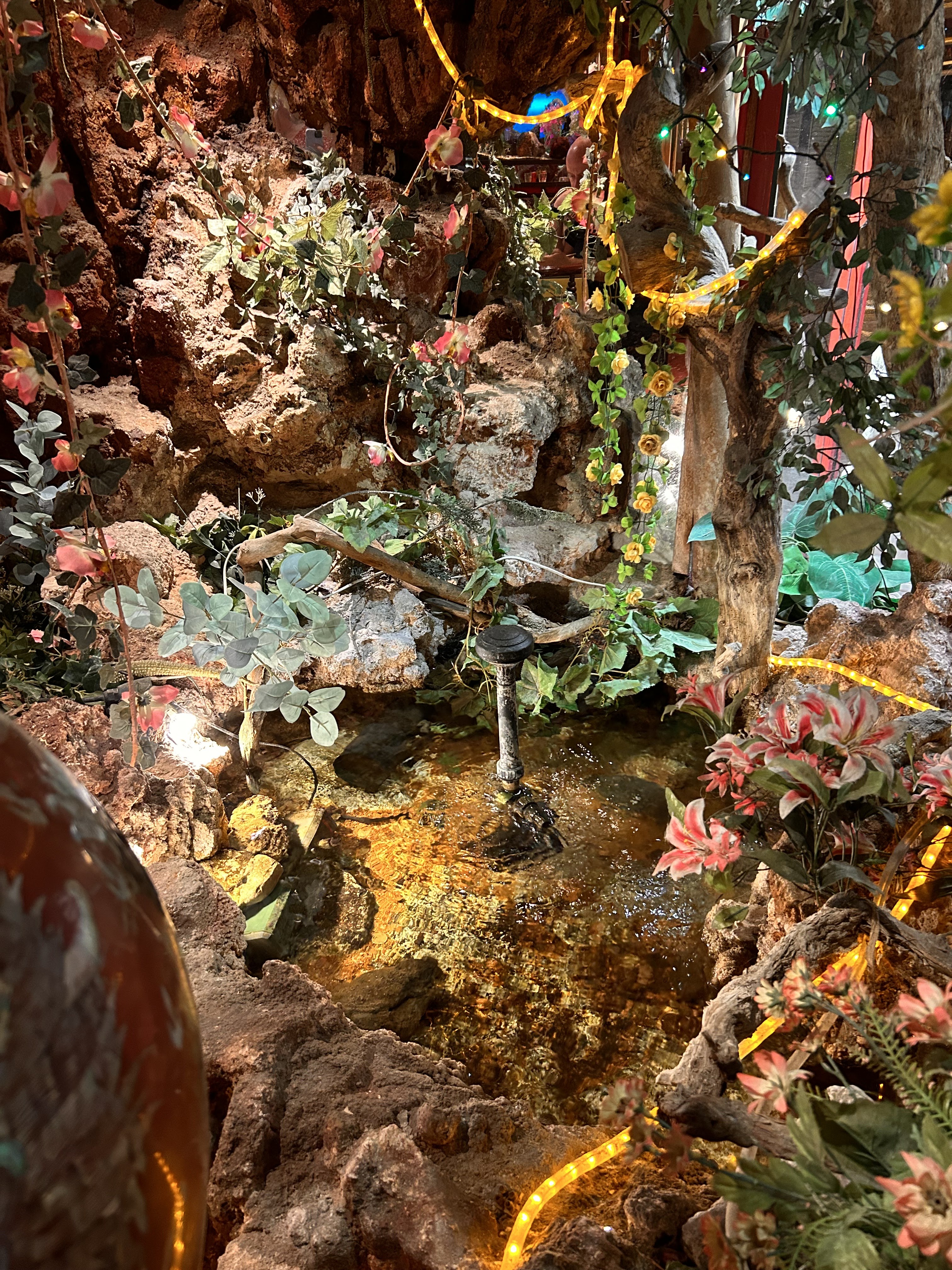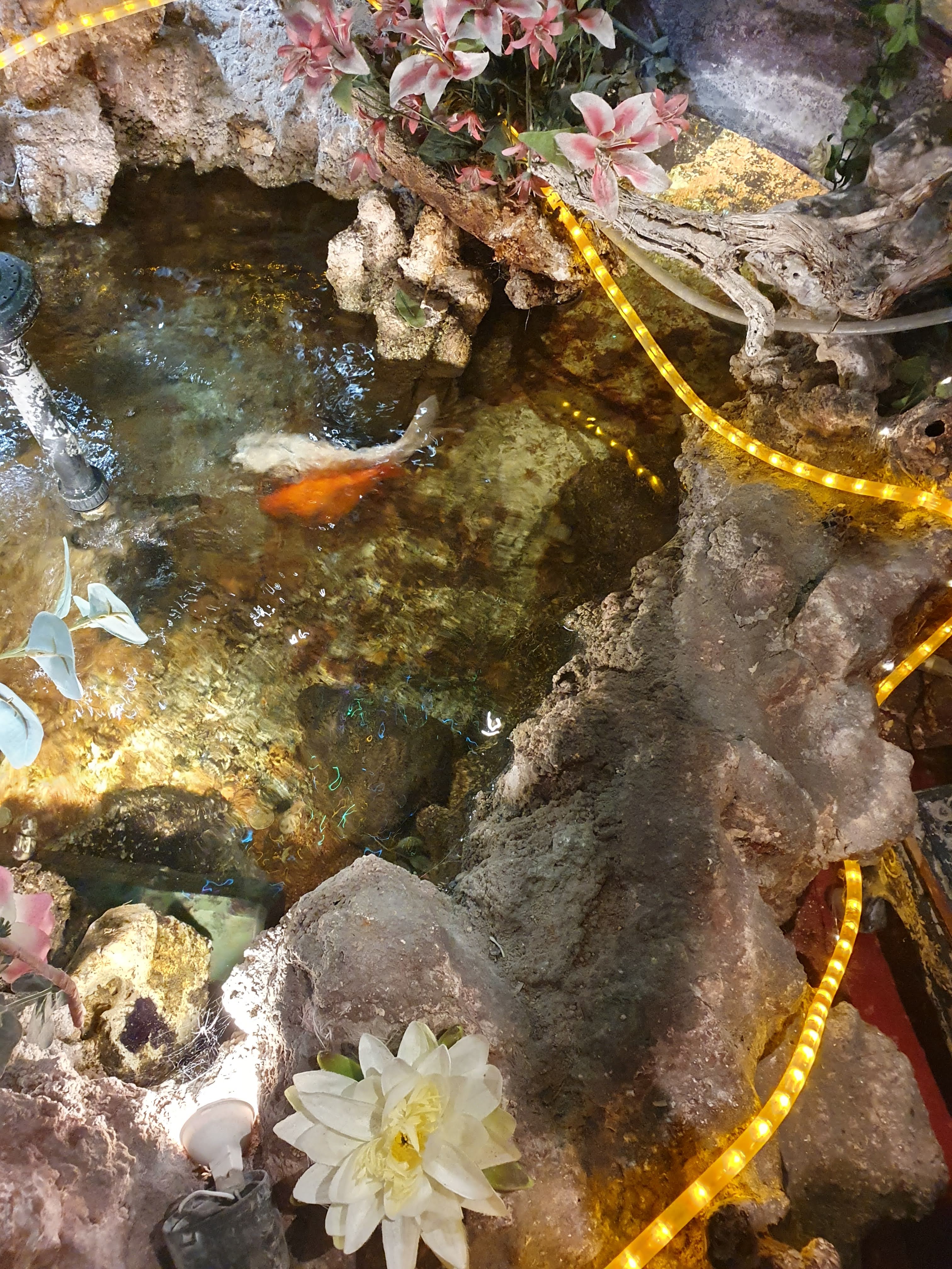 On ne peut pas dire si c'était bon ou mauvais puisqu'il n'y avait aucun goût. Pourtant la déco correspond tout y est aquarium petit pont guirlandes lumineuses statues etc mais le goût n'y est pas quel dommage.