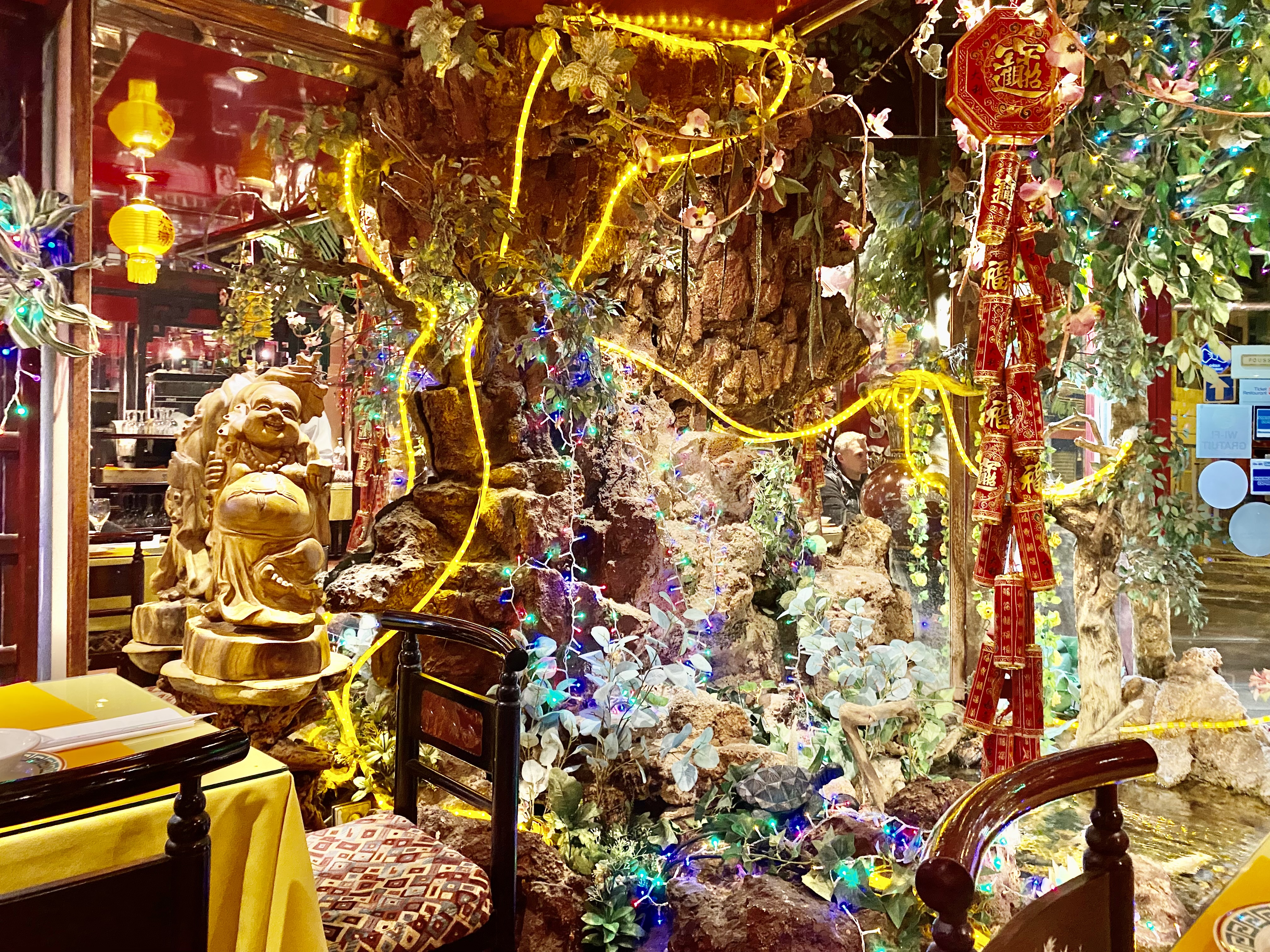 Le cadre est dépaysant mais ne compense pas le manque de saveur des plats. J'avais l'impression de mâcher du carton plus ou moins humide coloré en nourriture. C'est comme les jours de nouvel an chinois où les cantines d'entreprise tentent de proposer des plats chinois: ce n'est pas ça la gastronomie asiatique !