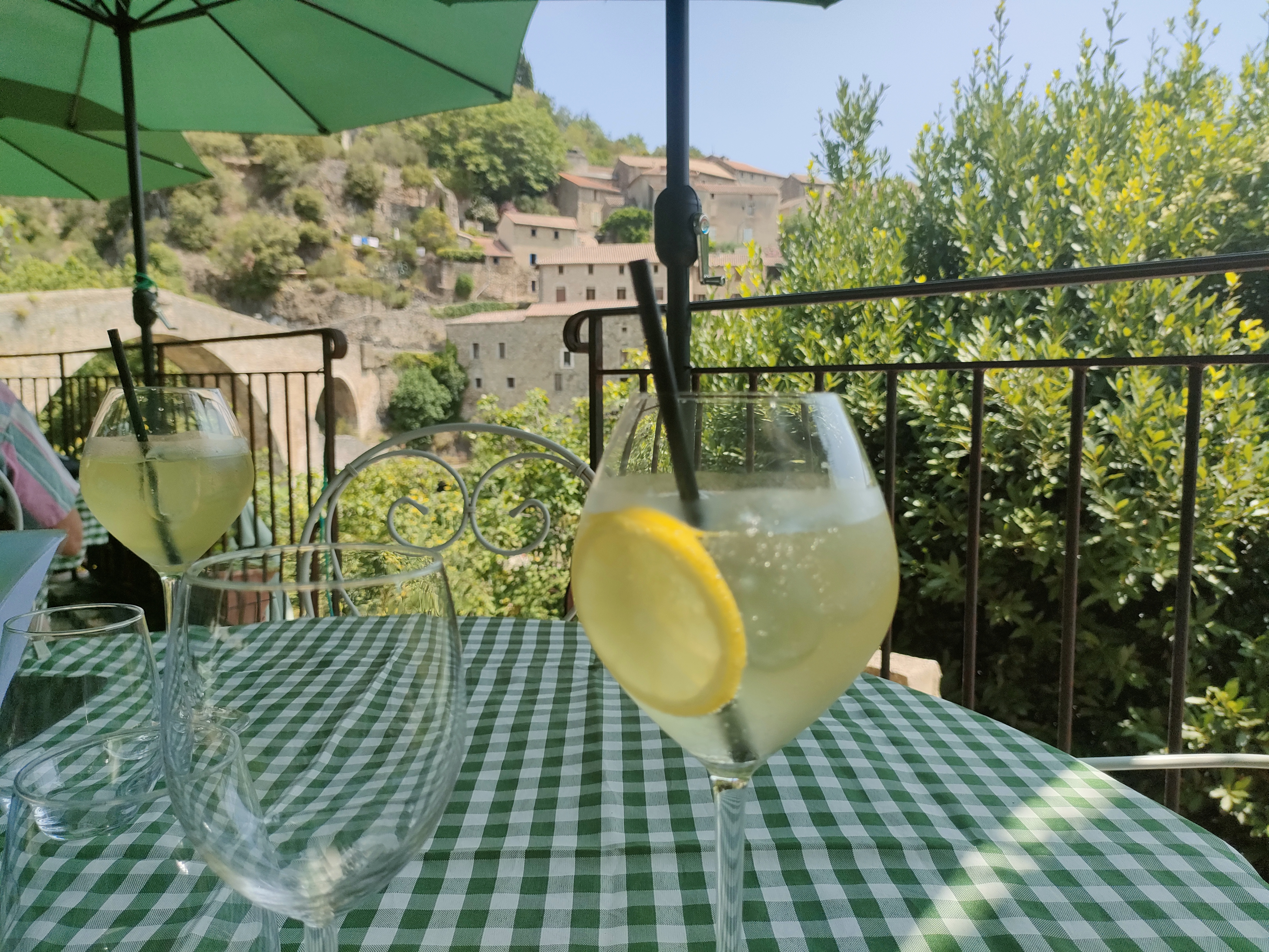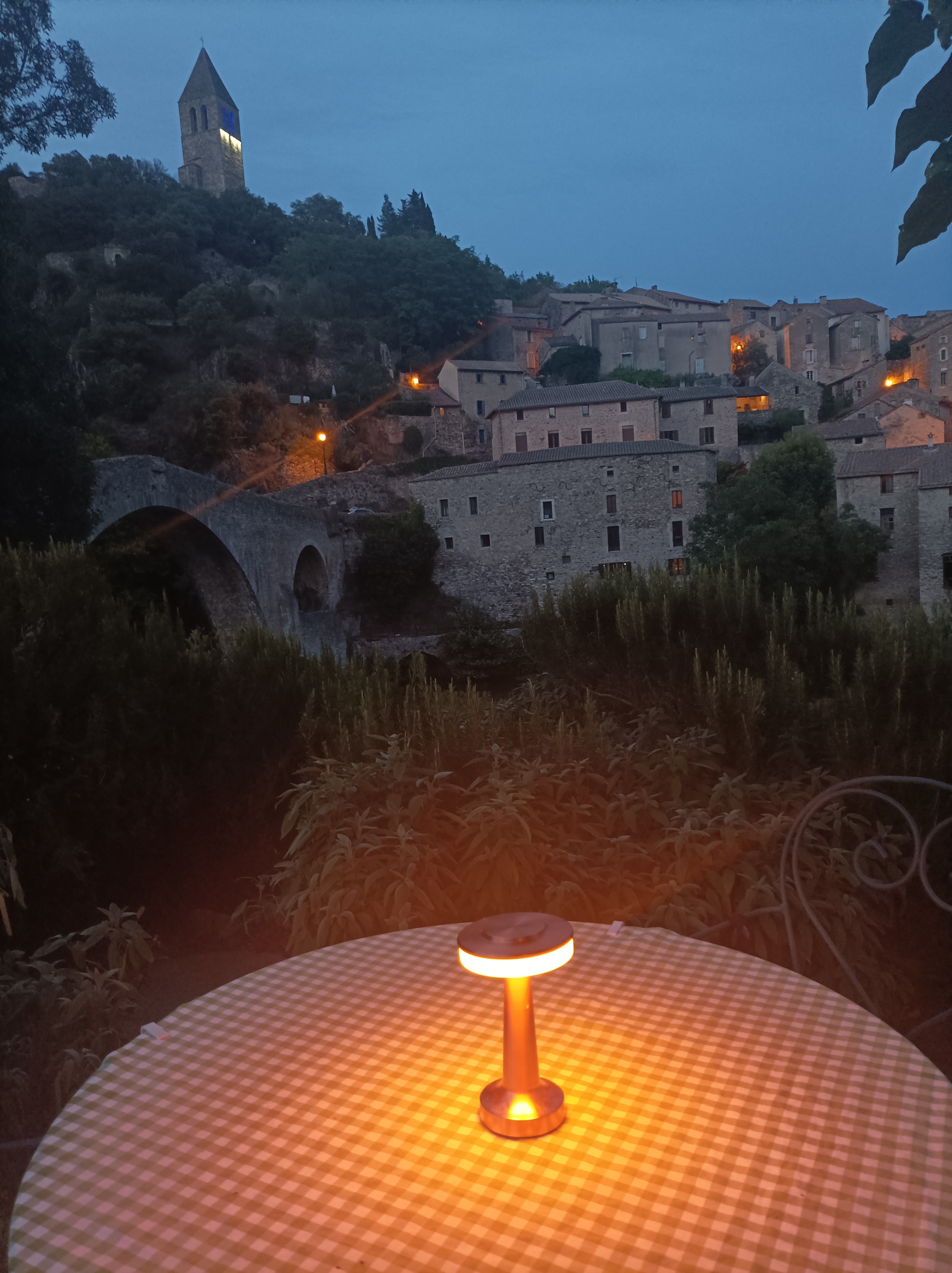 Une cuisine de qualité dans un super cadre. Nous y avons dînés le soir avec ma compagne. La vue sur Olargues est superbe . Aucun problème de moustique fin juin. Le personne est gentil. Les plats sont bons et élaborés, notamment sous l'influence danoise d'un membre du personnel, peut être le chef ?Je recommande pour une soirée amoureuse ou en petit groupe, l'ambiance étant plutôt intime en terrasse. Prix correct pour la prestation et le lieu touristique.