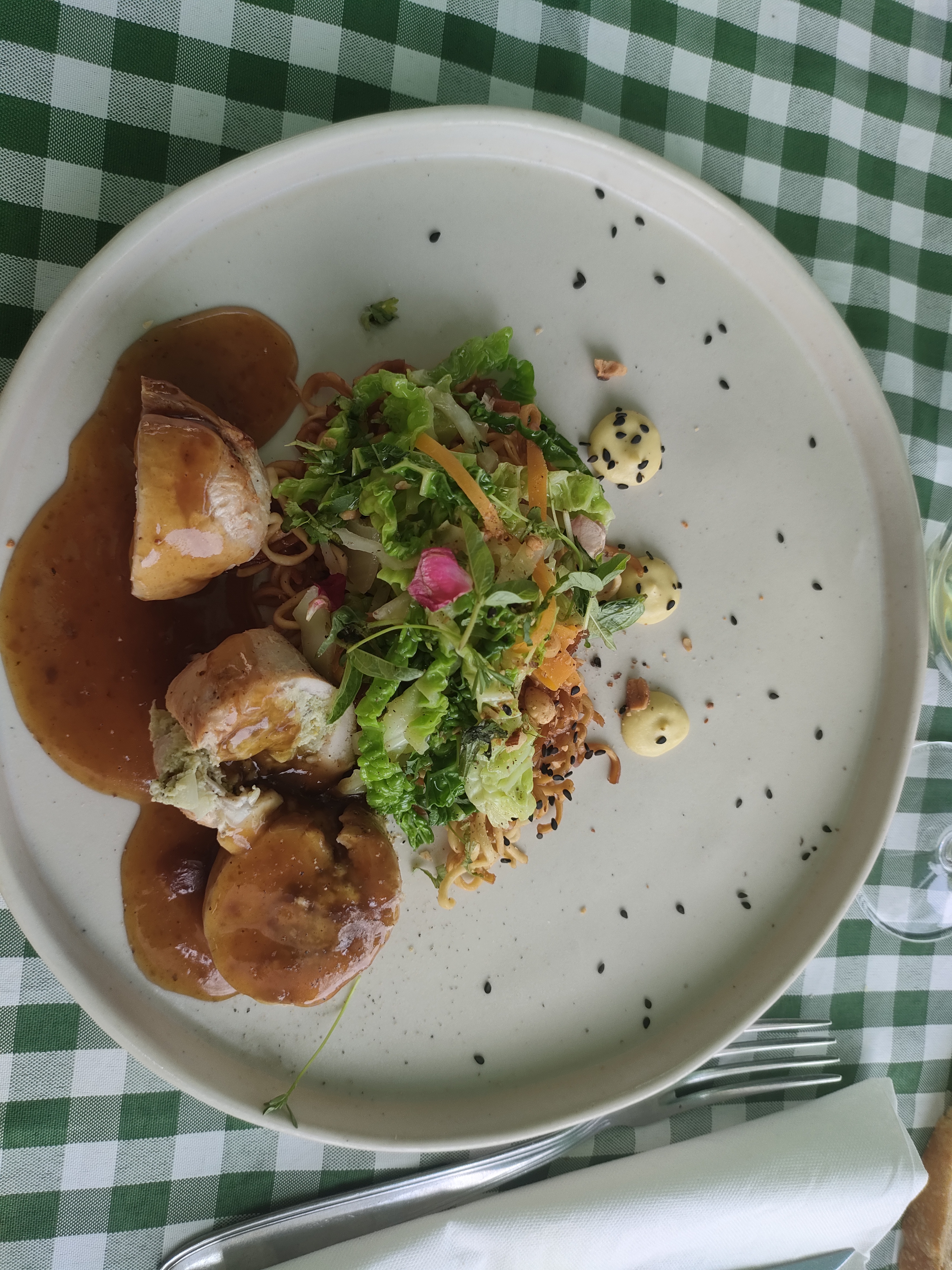 Un excellent restaurant fusion franco-vietnamien...avec quelques influences danoises ! Une belle vue depuis la terrasse. Ils disposent de leur propre potager, utilisé de manière optimale dans leurs plats raffinés et équilibrés. Les menus offrent un excellent rapport qualité/prix. La sélection de vins est un peu limitée et semble légèrement trop chère pour la région, mais la qualité et le goût de ce que nous avons bu étaient excellents. Mérite une visite et même un détour.