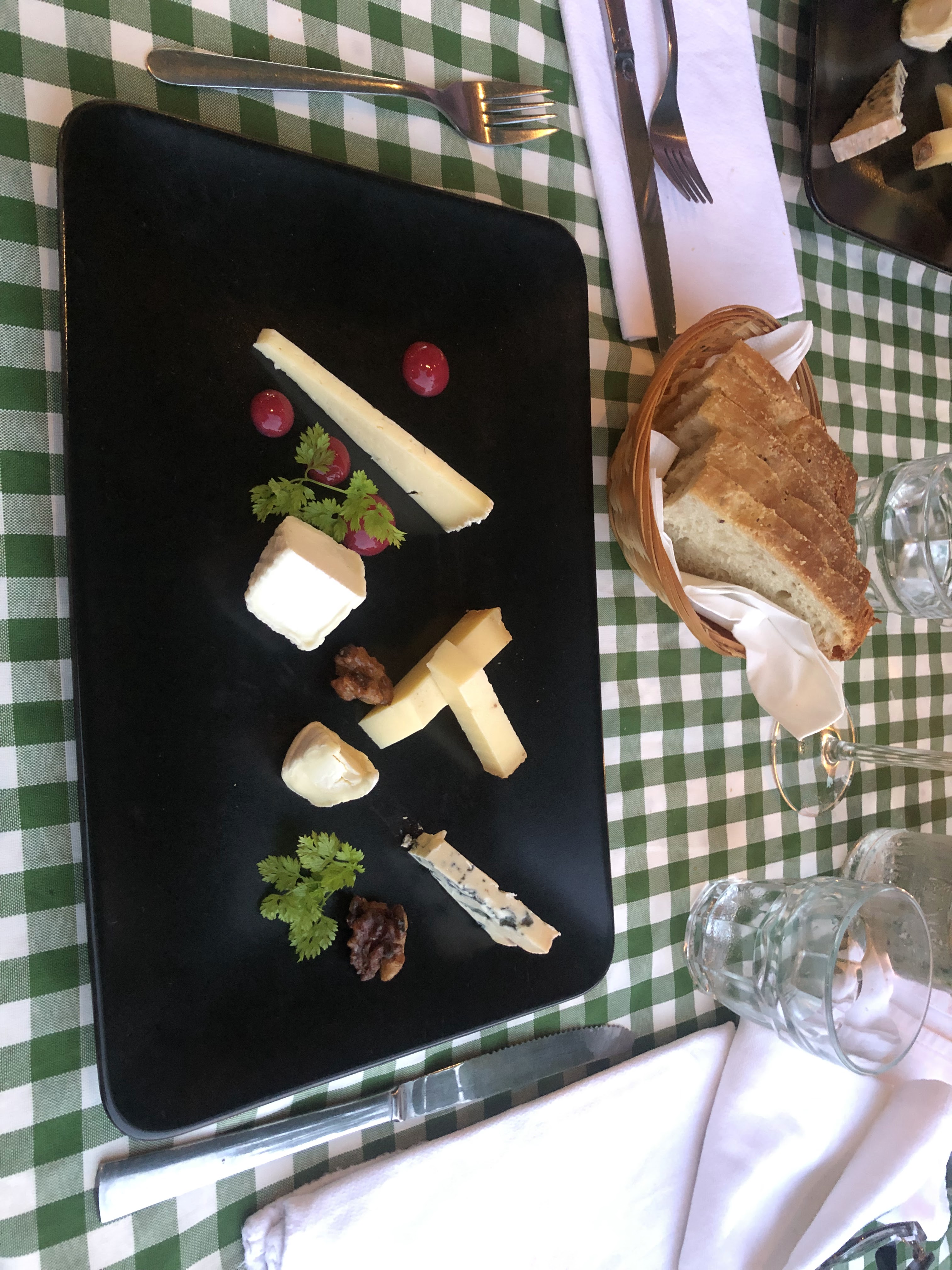 Arrivés à 12h30 repartis à 14h45. Les anglais et hollandais sont servis plus rapidement. Pain excellent, viande goûteuse heureusement que les légumes sont crus autrement nous y serions encore. Vins prohibitifs avec une sacrée culbute, pourtant c'est la région. Bref, un gigot d'agneau avec des légumes aïe denté 😉 pour 21 euros. C'est chéro👹
