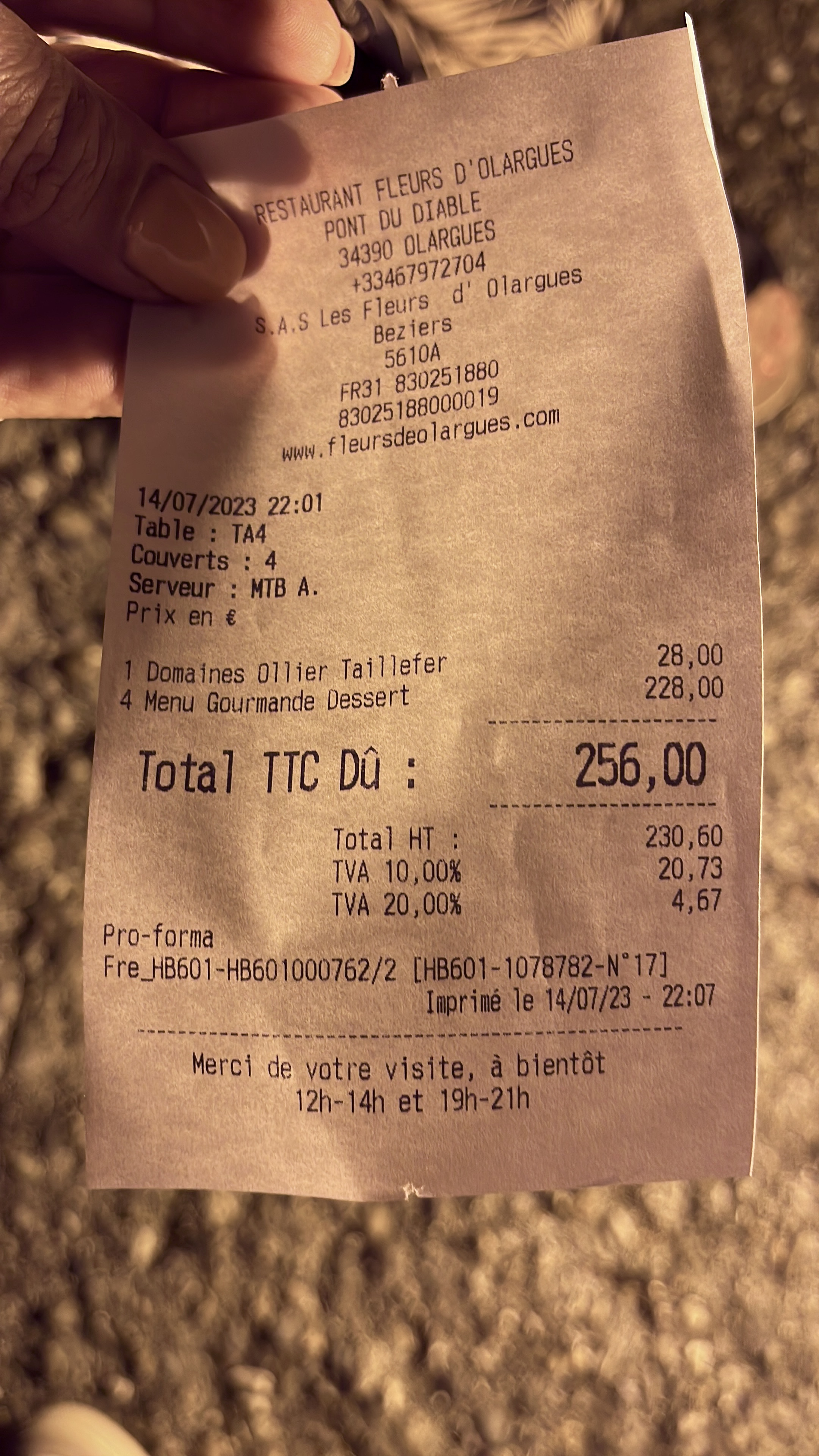 Encore une fois merci aux fleurs d olargues pour votre acceuil chaleureux, votre cuisine à nous faire exploser les papilles et un service irréprochable d une jeune femme qui est très sympathique et qui sait vous conseiller sur les vins ( ça n est vraiment pas le cas partout). C est l endroit où aller pour les amateurs de la bonne cuisine et des bons vins en toute convivialitè dans un cadre magique.