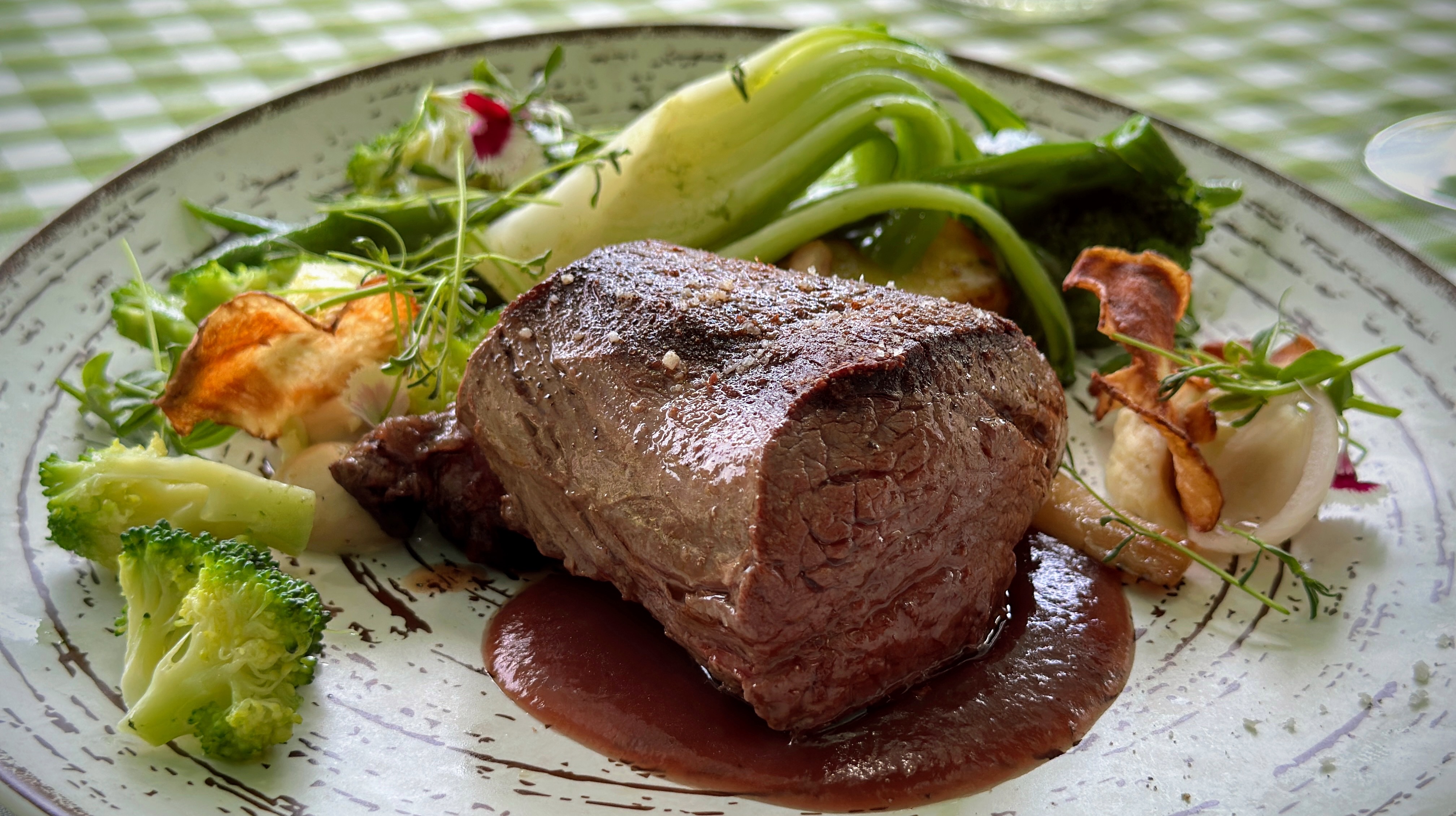 L’endroit au coucher de soleil est magique, la vue est splendide et le cadre fleuri de la terrasse du restaurant très agréable. L’assiette danoise en entrée est un régal par contre notre agneau bien que parfaitement rosé était dur. Un agneau stressé qui ne doit pas empêcher d’y aller manger.