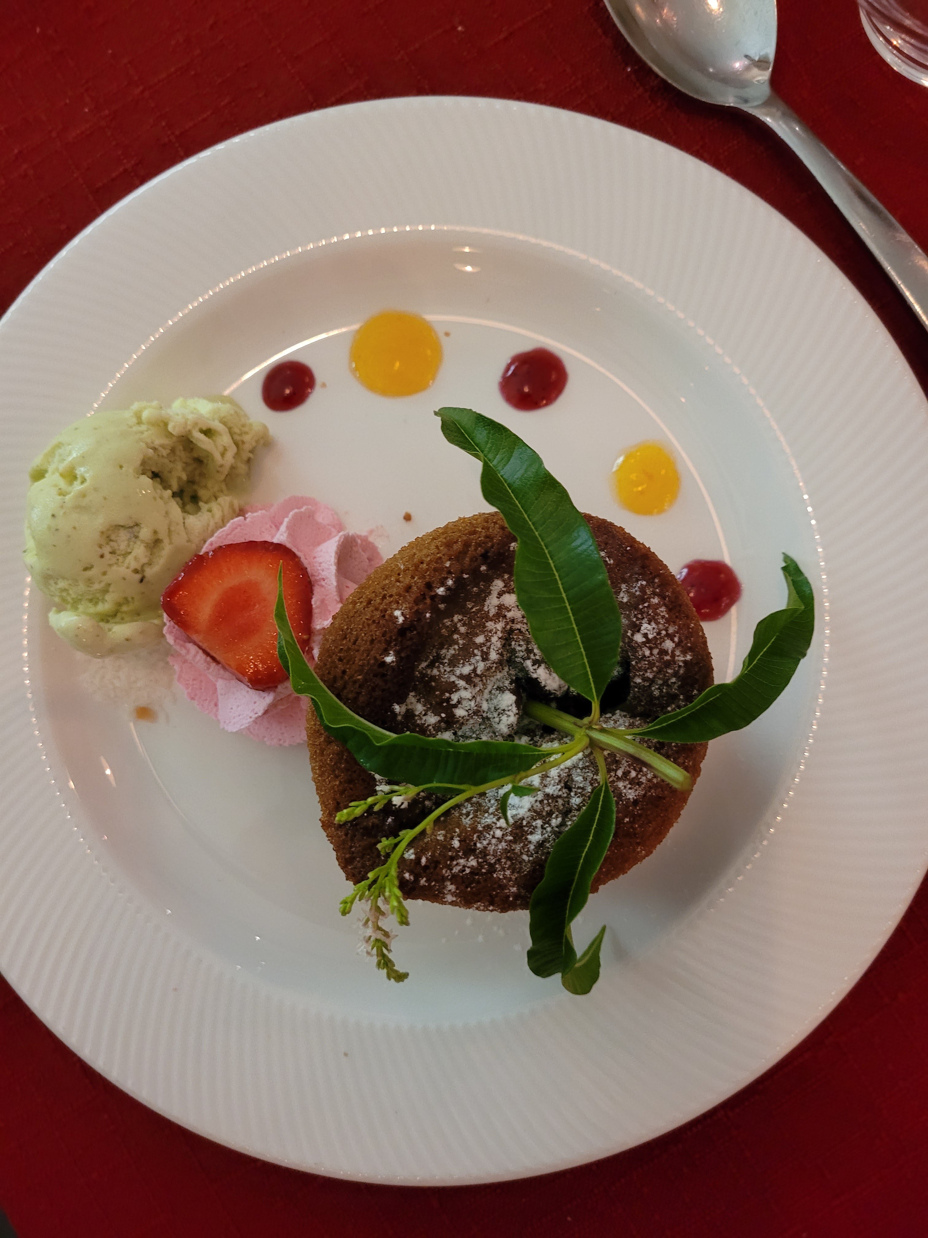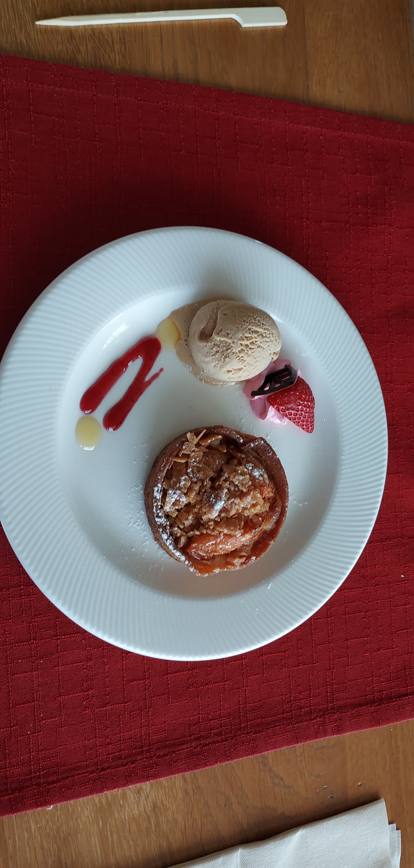 Des portions généreuses, de la simplicité mais avec du goût ! Pour les entrées: la terrine est délicieuse, le foie gras très bon avec un chutney de tomates vertes...hummm 😋 et une très belle surprise avec sa tranche de pain d'épices (on en redemande). La cuisson du pavé de veau est parfaitement maîtrisée... Enfin, à notre goût, sans fioriture: le goût, juste le goût... Avec une pointe de paprika fumé dans la sauce ? Et le dessert au chocolat juste équilibré comme il faut. Merci, nous avions prévu, pour mon anniversaire, d'aller au restau, le confinement en à décidé autrement. Pourtant nous avions l'impression d'y être. À bientôt, c'est sûr, pour renouveler l'expérience... En présentiel, comme on dit... Muti Laurence