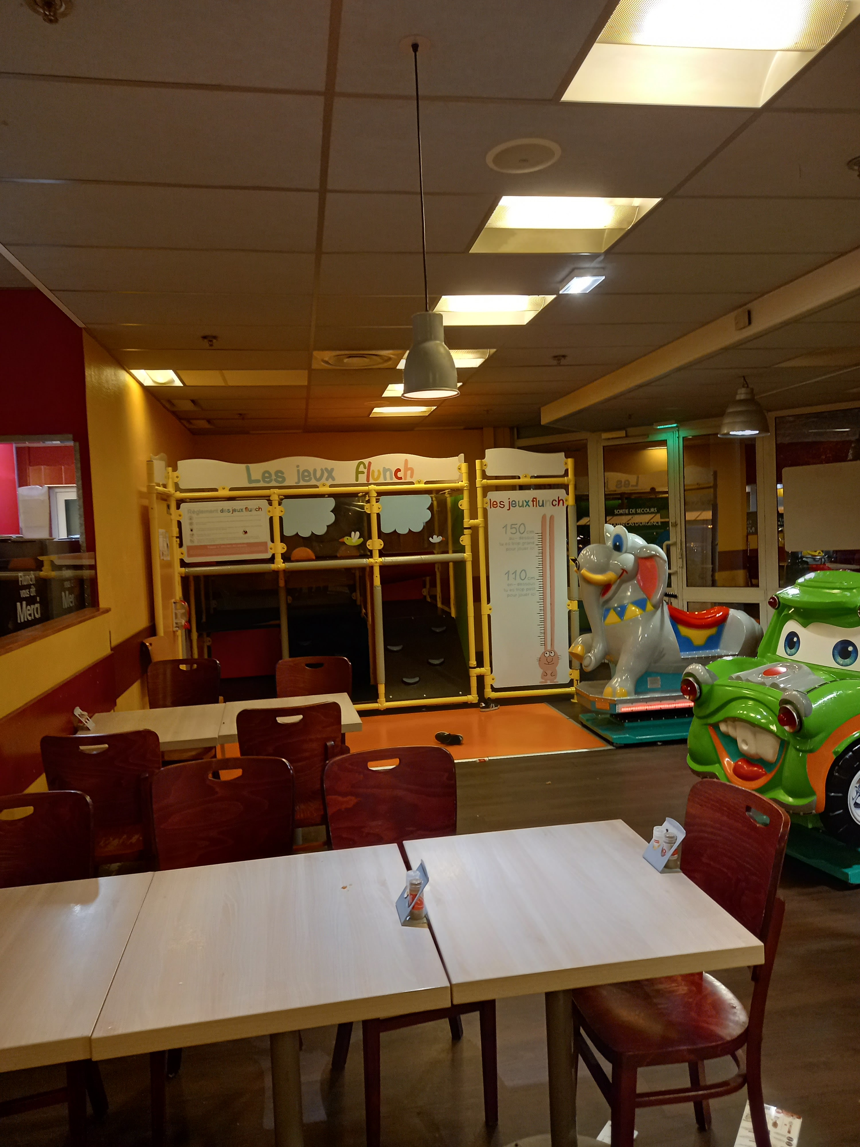 L’état du restaurant est pas top. C’est vieux, matériels abîmés et sale. La nourriture est bas gamme. 1 prise électrique n’est pas fixé Au coin des jeux enfants 😱 Niveau Cuisine menu enfant , ils sont pas capable de dire bonjour. C’est à l’abandon ce restaurant.