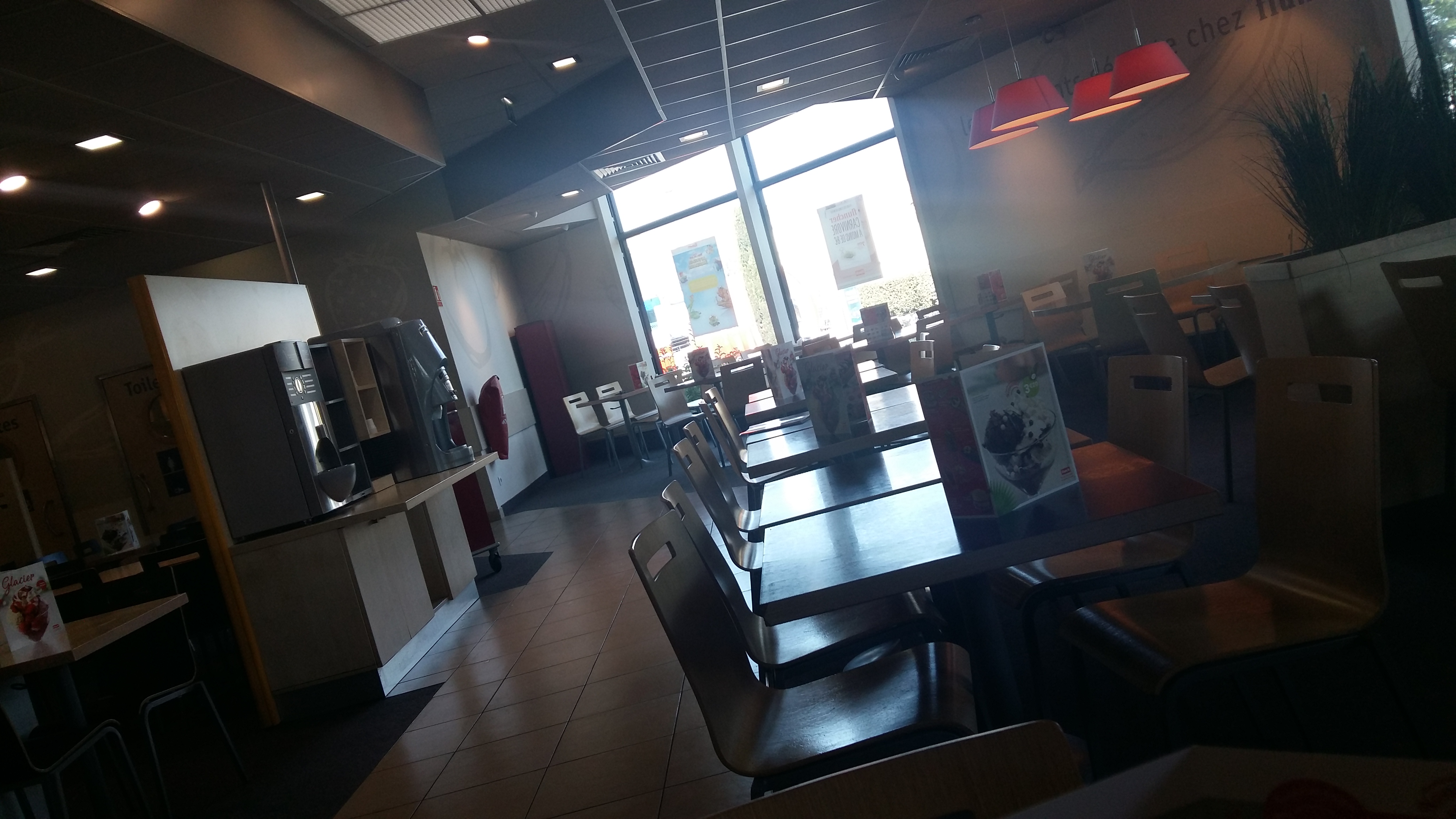Bien triste.Il faut venir pour les desserts,et en journée car à 21h ils ne font plus de crêpes. Pour les plats il vaut mieux manger chez-soi !
