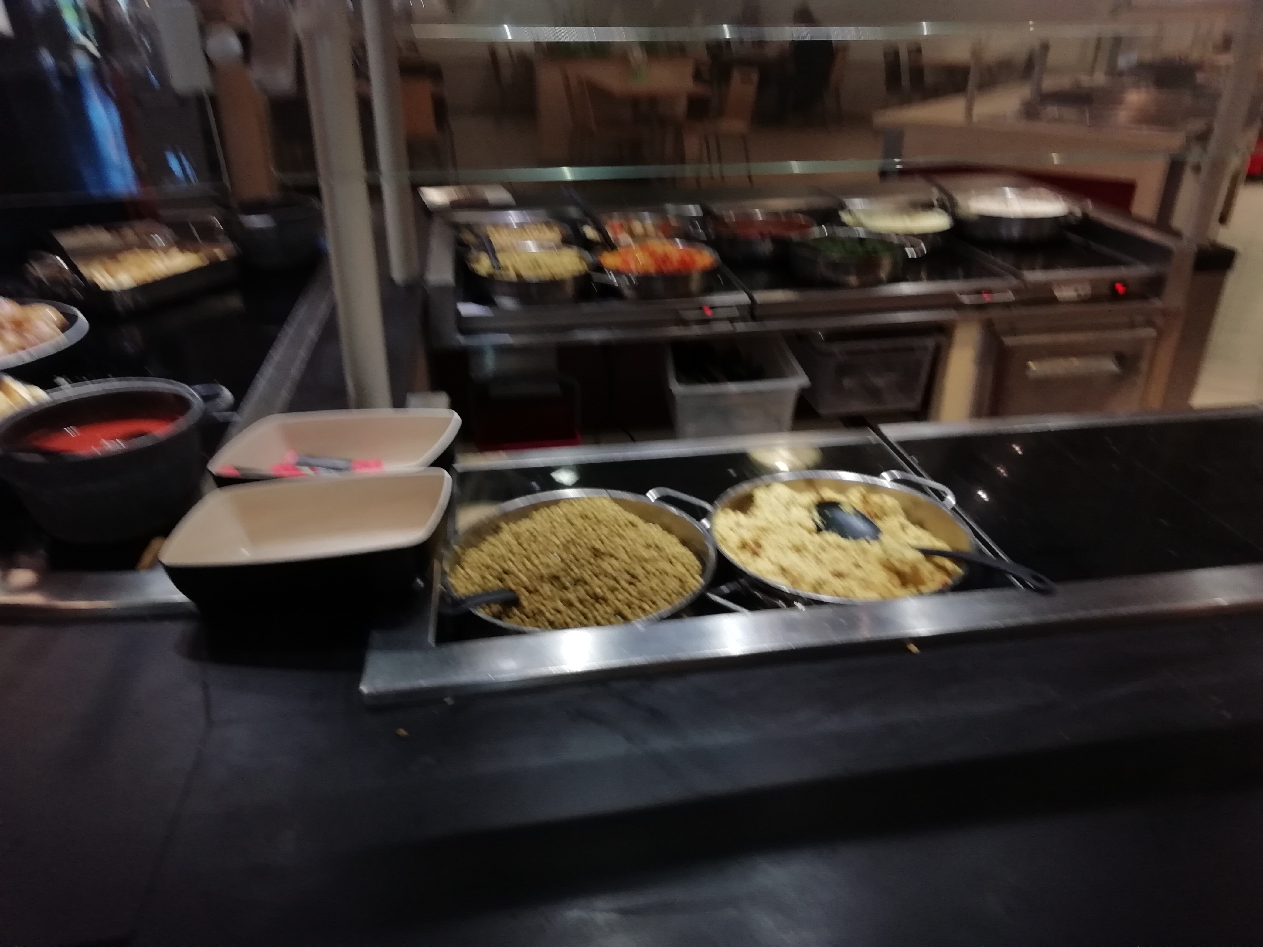 Les entrées a moitié vide, les accompagnements idem, pas de riz, frites ou autre que des purée et légumes vraiment pas bon, la propreté et odeurs mauseabondes ds les WC ...... déçue+++