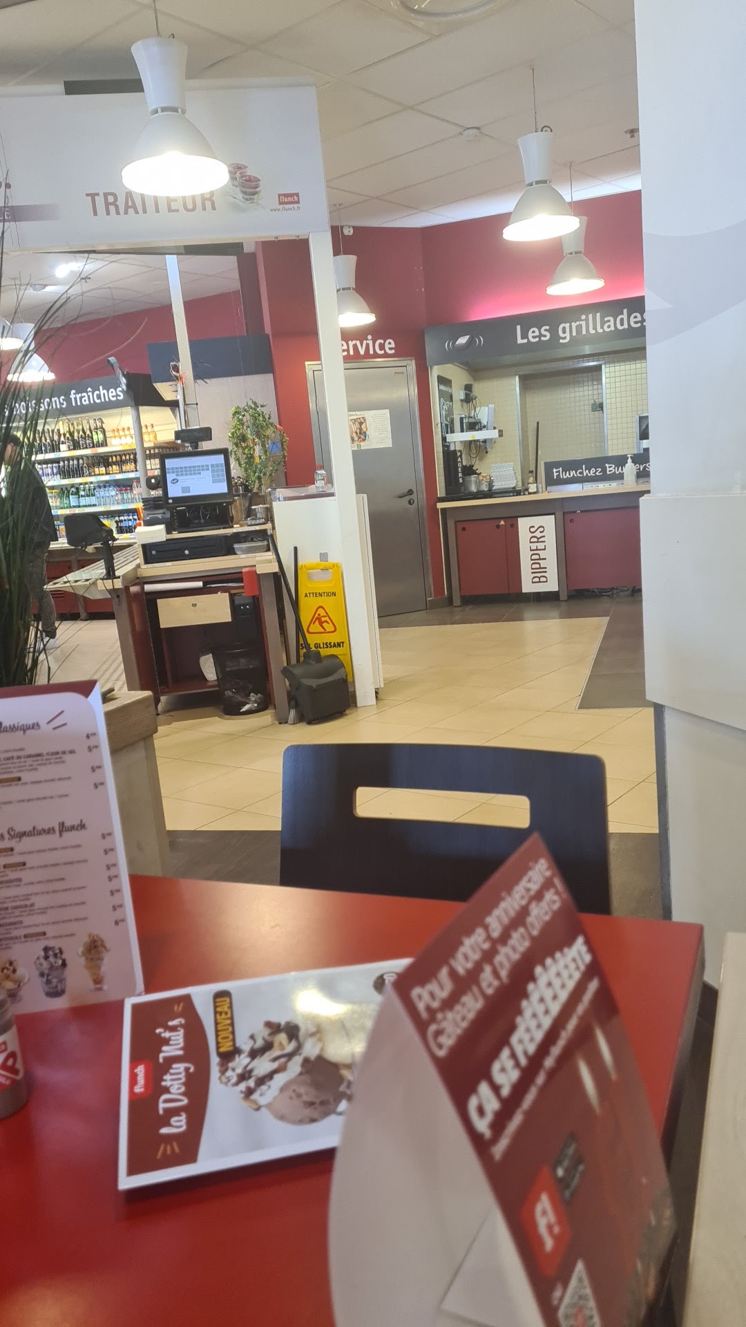 Attente en passage de commande..+++ Plus de verres pour les softs malgré plusieurs demande..... Buffet avec à peine 6 choix..... Oublie de facturé un pain à 0.49 cts pas de geste co on a dû refaire une cb..... La propreté laisse à désirer..... Quand a l'amabilité du personnel j'en parle pas.... Pour une 1ère à bethune très déçue celui de Lens est bien mieux !