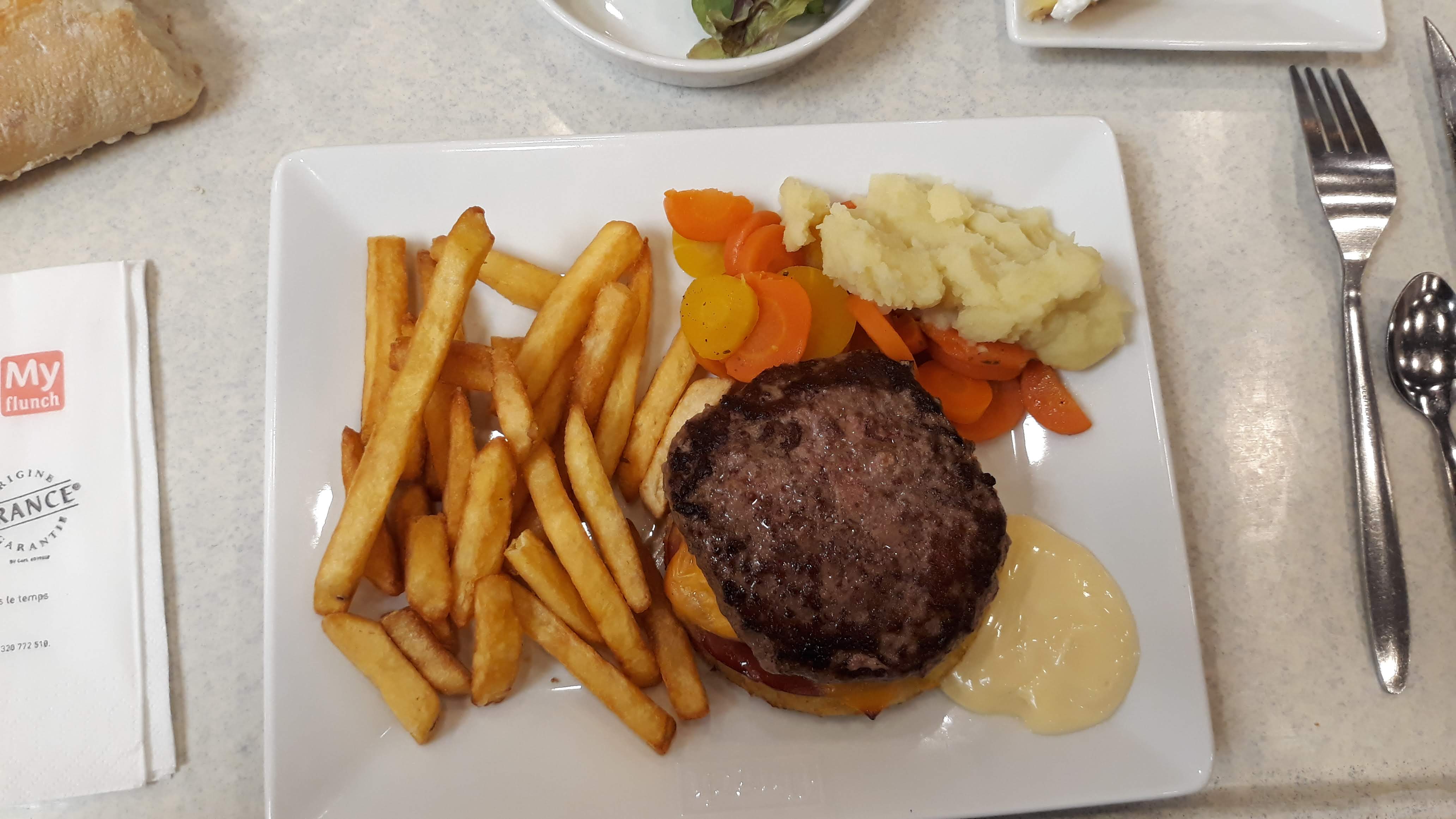 pièce du boucher si on peut appeler ça comme ça, 11.90, de taille minuscule alors ok les accompagnements sont à volonté mais il ne faut pas abusé, de plus, immangeable car trop nerveuse, en plus d'être toute petite elle m'as été servie BLEUE alors que j'ai demandé à point, au final j'ai du en manger d'un quart de ce tout petit morceau, pas envie d'y retourner car trop de monde. Beaucoup plus intéressant financièrement d'acheter en magasin et de préparer soit-même. Lamentable....Trop d'attente, et prix des boissons exorbitants (je parle pour les softs) 2.99 pour une bouteille d'eau, faut pas pousser. Attente aux buffets des accompagnements trop long les gens mangent comme s'ils étaient les seuls à manger, incroyable, en plus d'être désagréables. Déçus. RECTIFICATION : Grosse intox pour moi et mon conjoint. Merci Flunch 👍👍👍👍👍👍👍👍👍👍👍👍👍