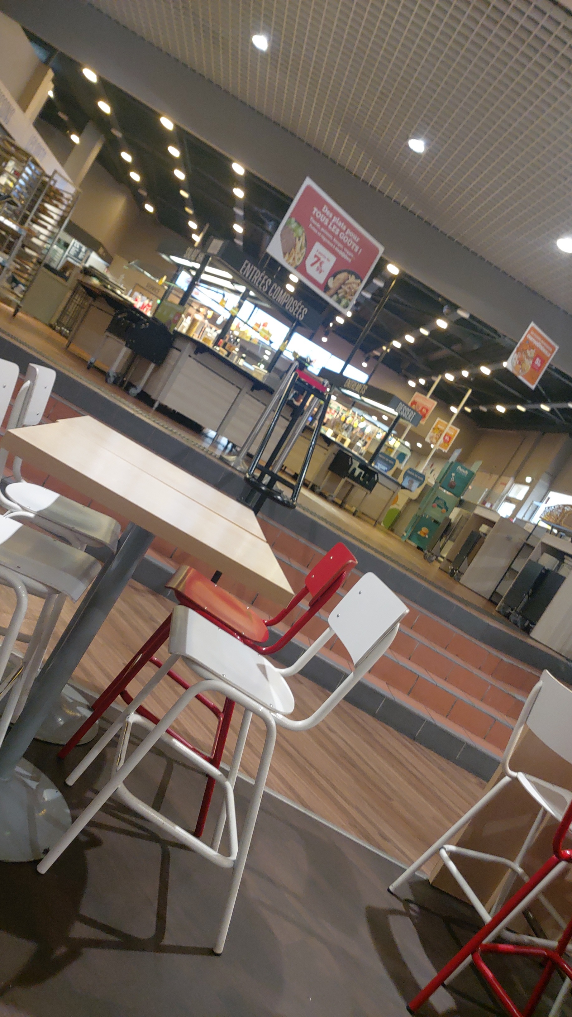 Aujourd'hui je parle que du côté cafétéria, il est 12h20 et il n'y a déjà plus rien, sur les bornes on peut commander ce que l'on souhaite, mais après avoir payer on nous appel pour nous dire que ce n'est pas disponible. Il nous propose d'autre alternative qui sont moins coûteuse.J'ai pris un sandwich mozza qui et melanger avec des poivrons ??? Bizarre le melange .Je recommande pas. ( par contre les donuts sont bon).