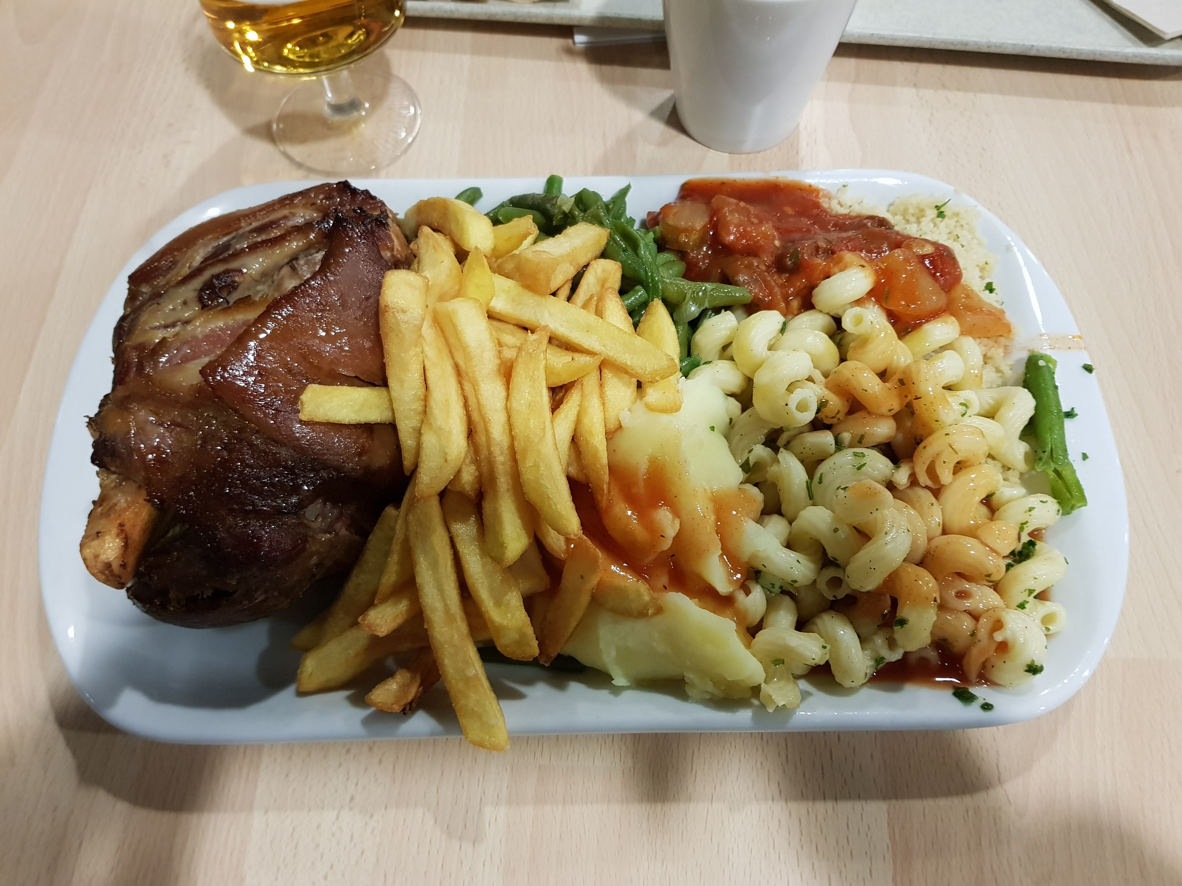 C'est une bonne cantine. Les repas sont copieux, grâce aux légumes à volonté. Le seul défaut que je pourrais trouver serait qu'il n'y a pas vraiment de plat un peu plus haut de gamme.
