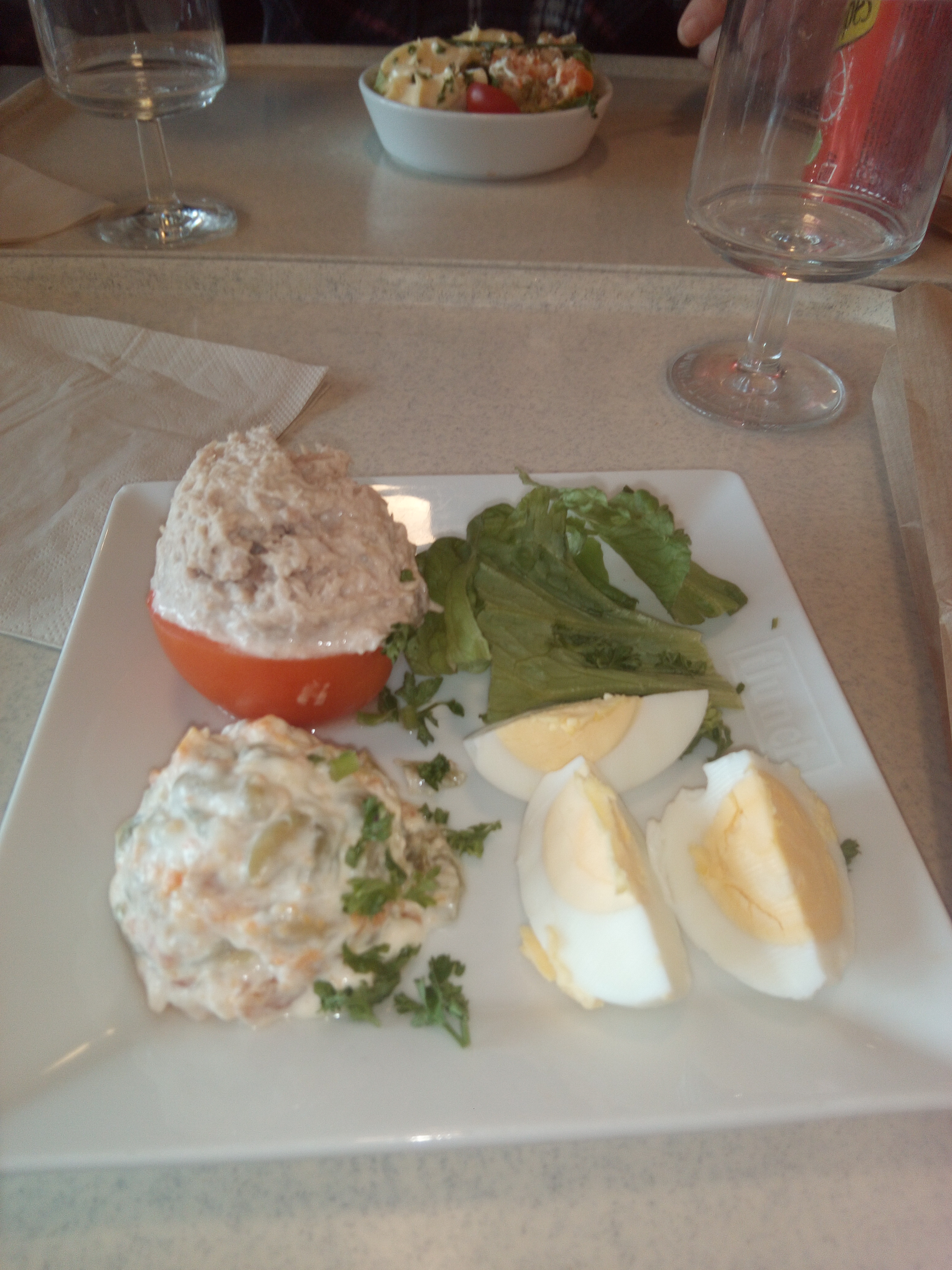 Un bon endroit pour déjeuner. Self service d'entrées froides, salades, puddings et boissons (vin et non alcoolisées). Choisissez ce que vous voulez comme plat principal dans le menu lumineux et payez. Le caissier vous donne un signal sonore pour vous indiquer quand votre plat chaud est prêt. Servez-vous d'une sélection de légumes et de chips.