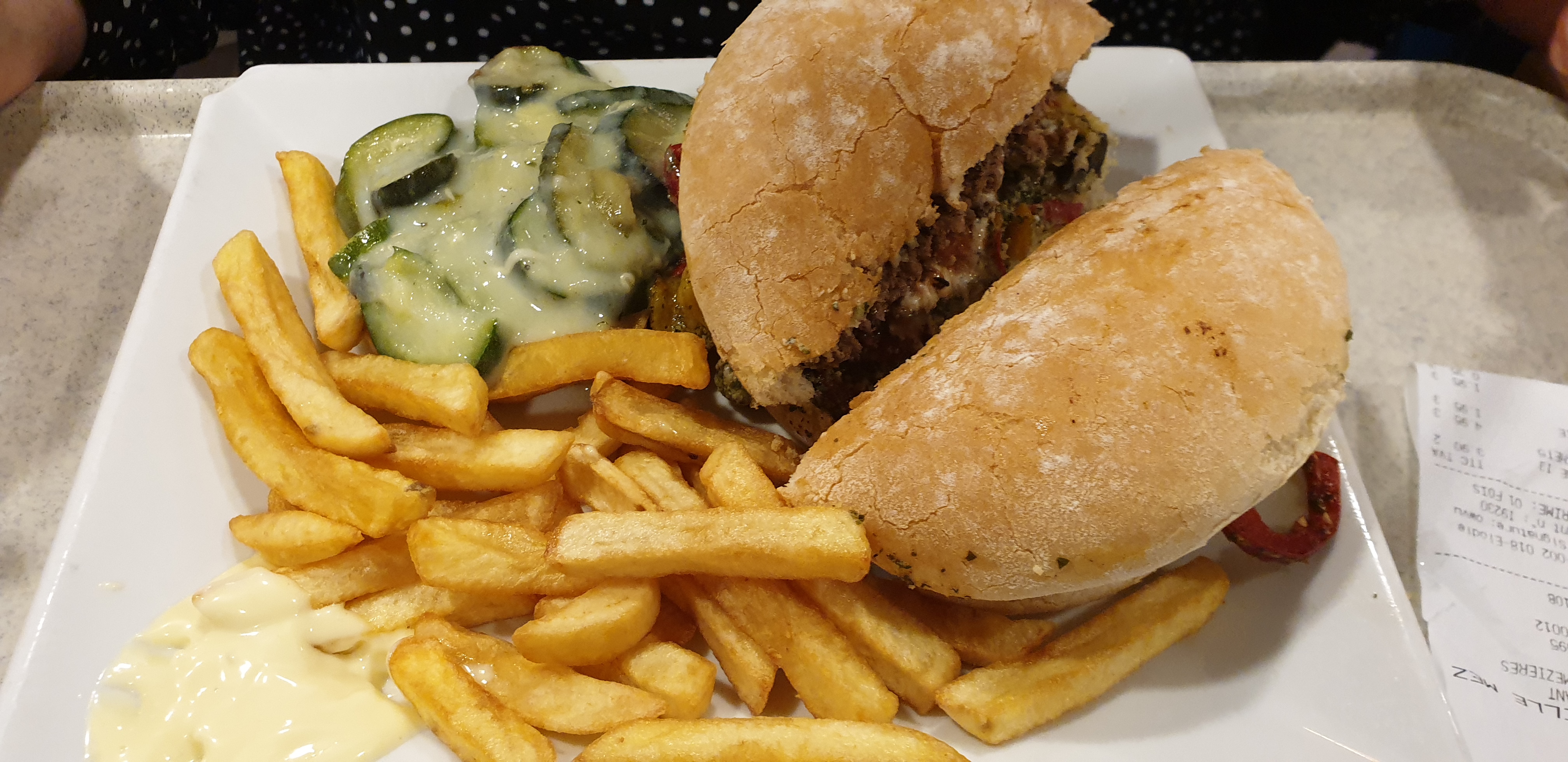 Excellent accueil de l'ensemble du personnel mais surtout de la caissière très souriante et polie. Repas agréable sauf les frites qui sont molles. Dans l'ensemble nous avons passé un bon moment.