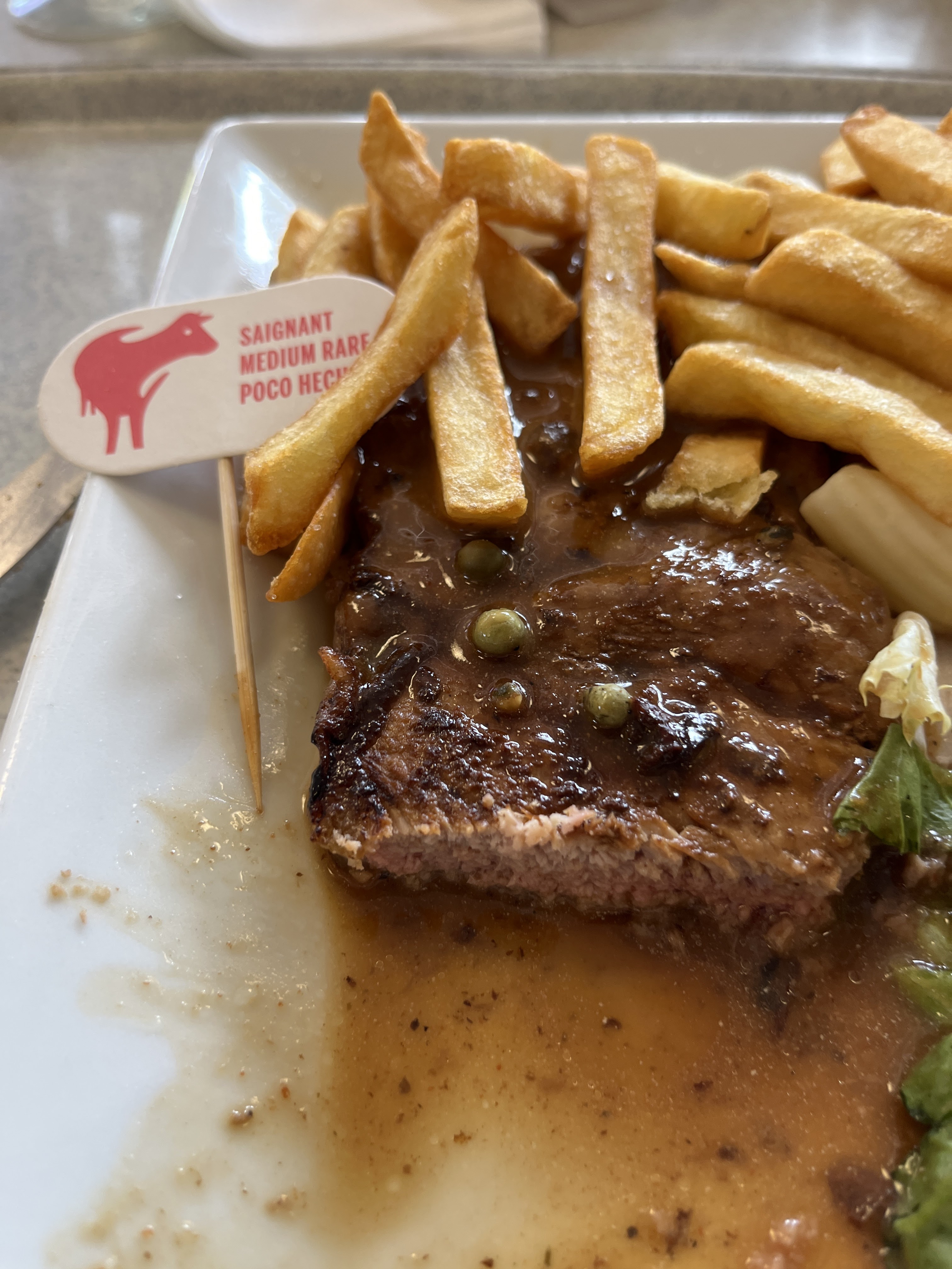 Sol qui colle dès l'arrivée dans le restaurant, une attente importante pour des frites et un steak, à 11h30 c'est dommage. Pour le prix vaut mieux prendre un plat du jour dans une brasserie.