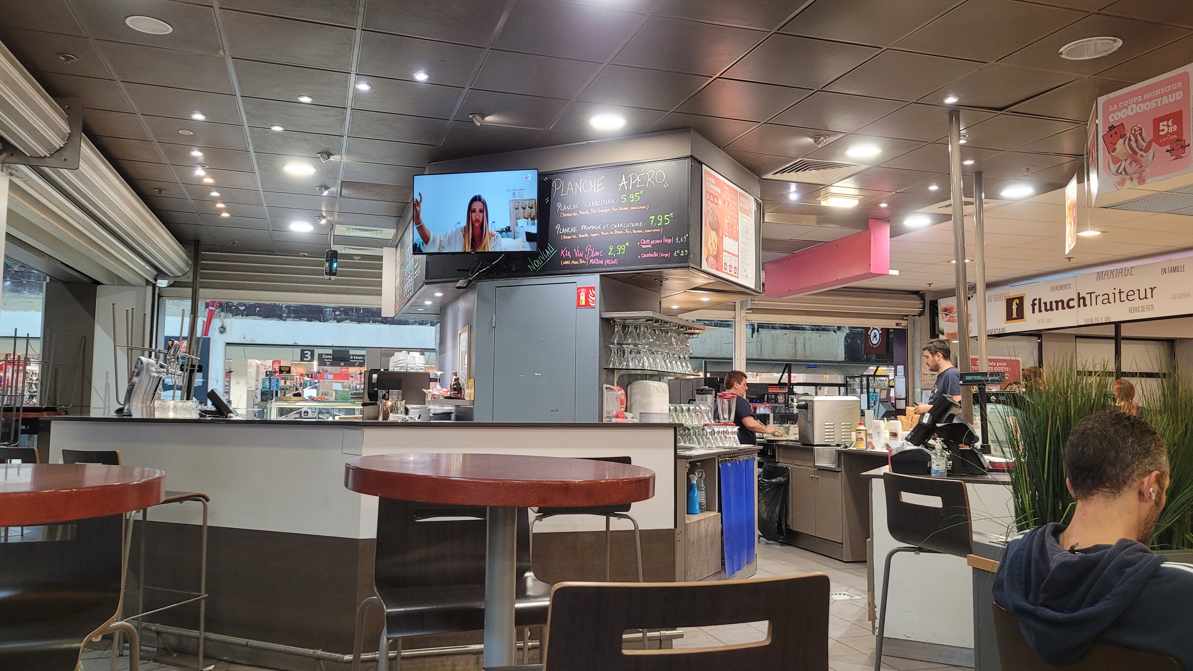 De passage les 17 et 19 juin, j'avais pris un menu pour 5€50 que je trouve assez raisonnable pour un sandwich + dessert + boisson. Une remarque peut-être sur les cornichons du sandwich afin qu'il soit couper plus finement (assez difficile lors de la mastication). Concernant l'attente, lors de mon passage du 17 juin , une seul personne pour prendre les commandes, faire la préparations des produits, l'encaissement des personnes d'ou un délai d'attente avec quand même une file d'attente assez conséquente avec une autre personne qui était en train de ranger les produits sur le présentoir (une suggestion éventuelle, peut-être mettre une deuxième personne en même temps afin qu'une personne fasse la préparation des produits et l'autre personne a l'encaissement afin de réduire le temps d'attente et gérer le flux de personnes ?) et pour mon passage du 19 juin service rapide du au fait que aucun client n'était présent au comptoir donc prise en charge rapide. Concernant les personnes du restaurant, lors de mon passage du 17 juin, j'ai eu l'impression que la personne était assez débordé mais heureusement un de ses collègues est venu en soutien pour gérer le flux client (sans doute un responsable du restaurant au vu de la tenue (polo noir)) très sympathique, souriant et polie. Puis lors de mon passage du 19 juin, la personne était aussi sympathique et polie, un sourire de plus aurait était un plus. Globalement je suis satisfait satisfait de ce restaurant et si les recommandations sont prise en compte et éventuellement mise en place, je recommanderait bien sur ce restaurant Flunch. Cordialement Arnaud