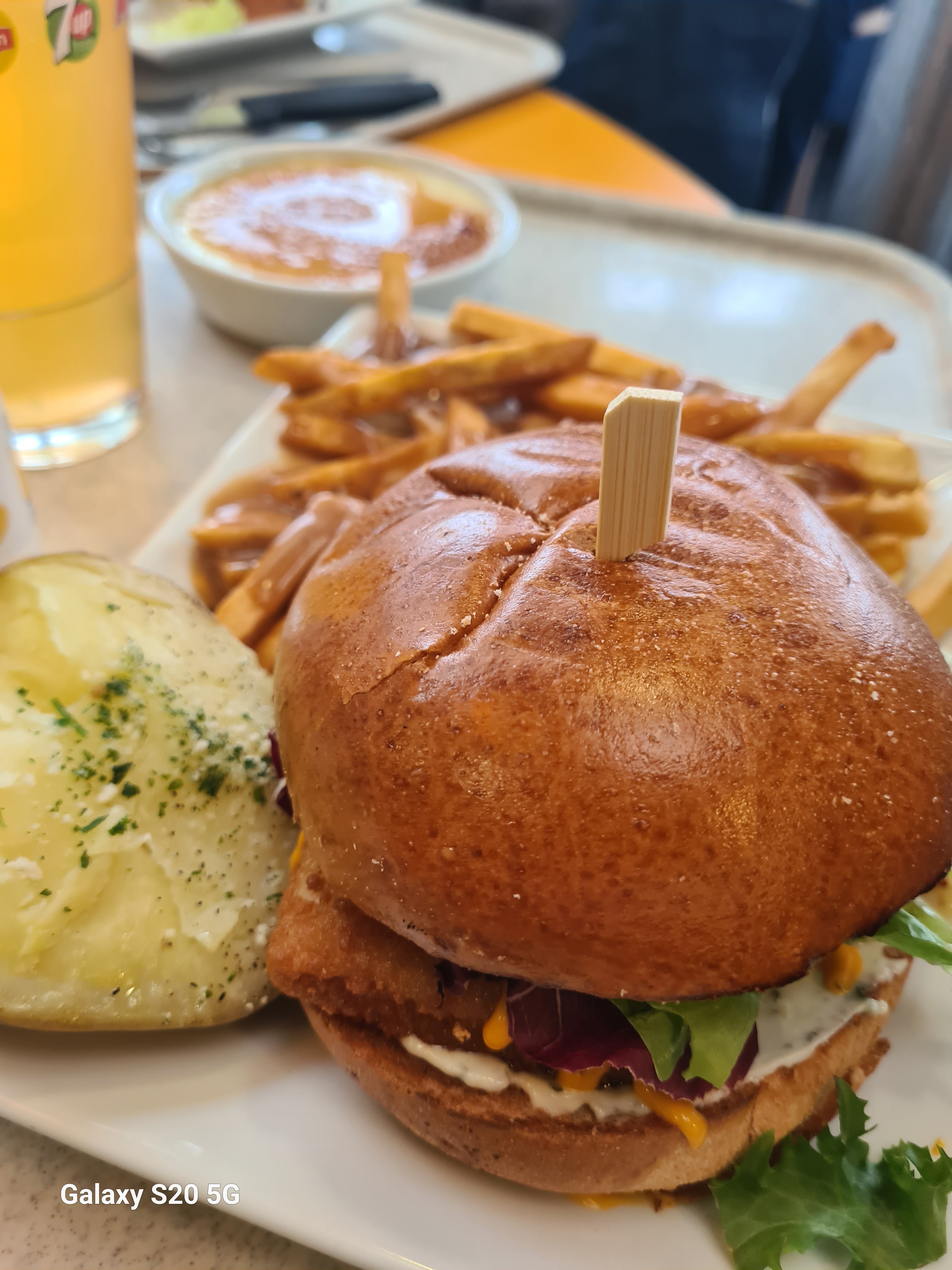 Menu avec Burger,parfait encore mieux qu'au mcdo ! Et en prime on prend des frites à gogo avec sauce poivre . On ressort à 4 pattes tellement on a pu faim 🤤🤤.