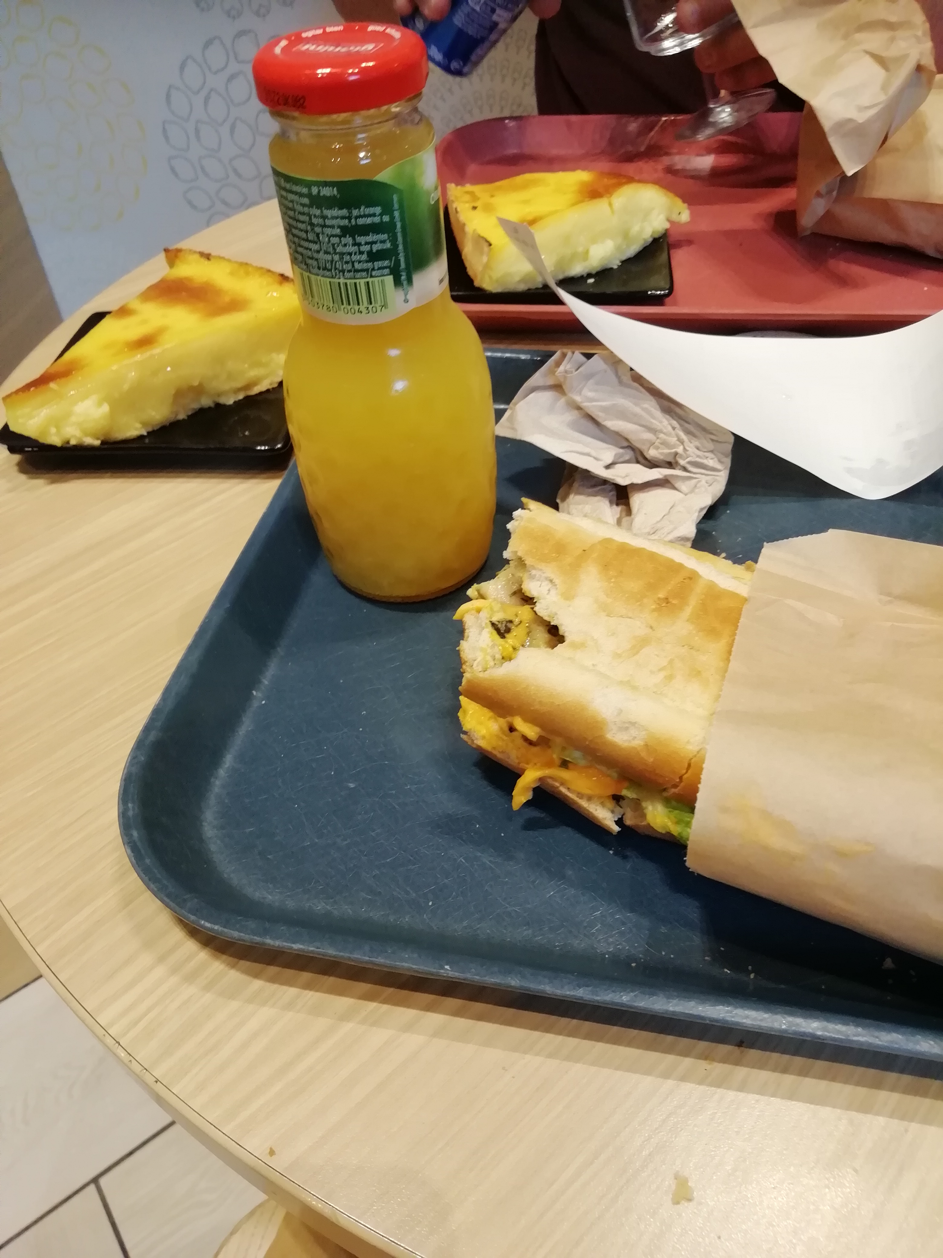 Franchement si je doit donner un avis au sandwich poulet brioché:immangeable le poulet trop salé et la sauce sans goût 🤮quand au flan on dirait qu'il est à la fin de sa vie, franchement je vais desserter ce lieu, seul le jus d'orange est bon