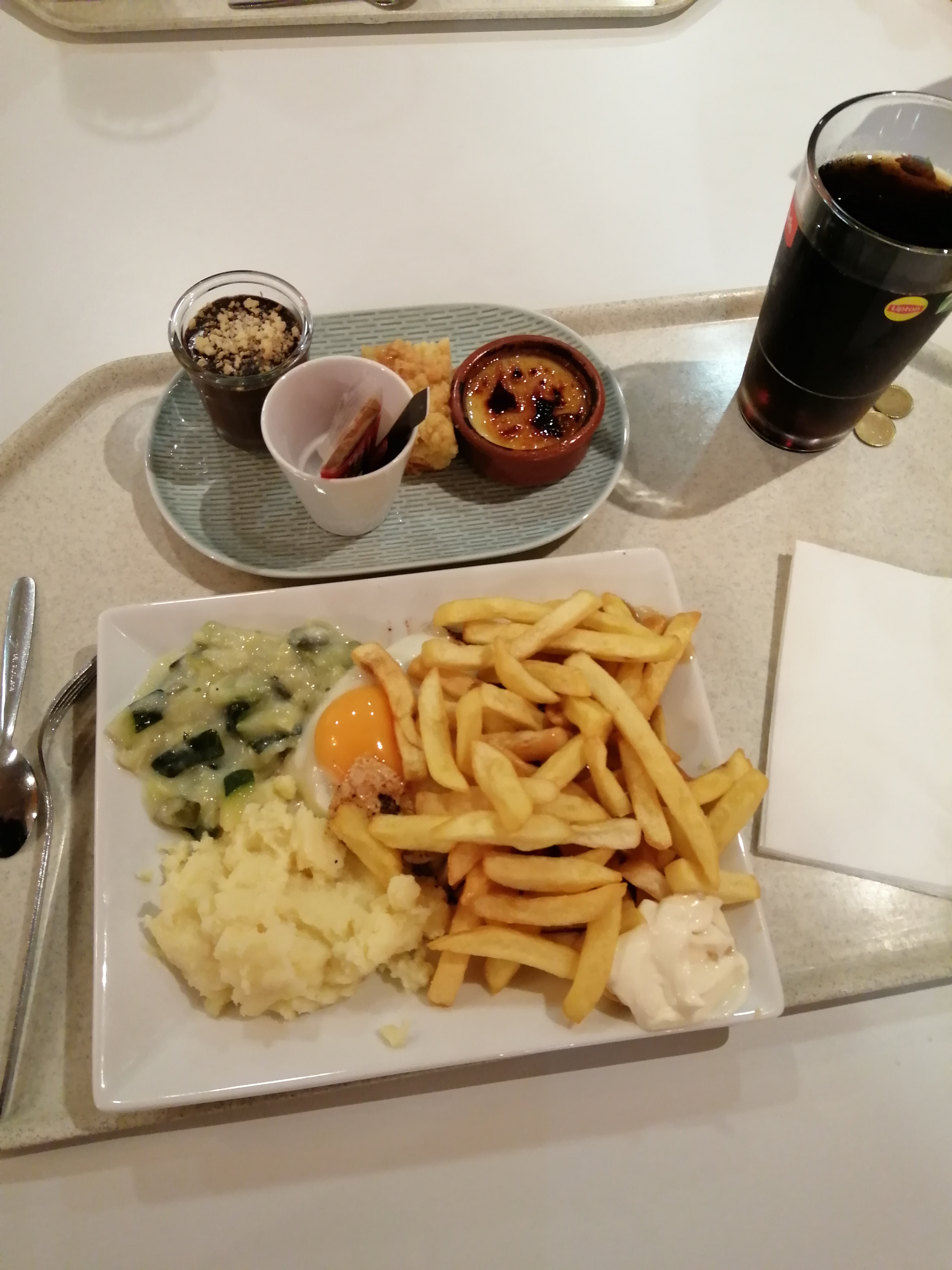 Toujours pareil. Petite bémol. On a pas encore fini de manger. On me demande si on peux me prendre mon plateau et de débarrasser.