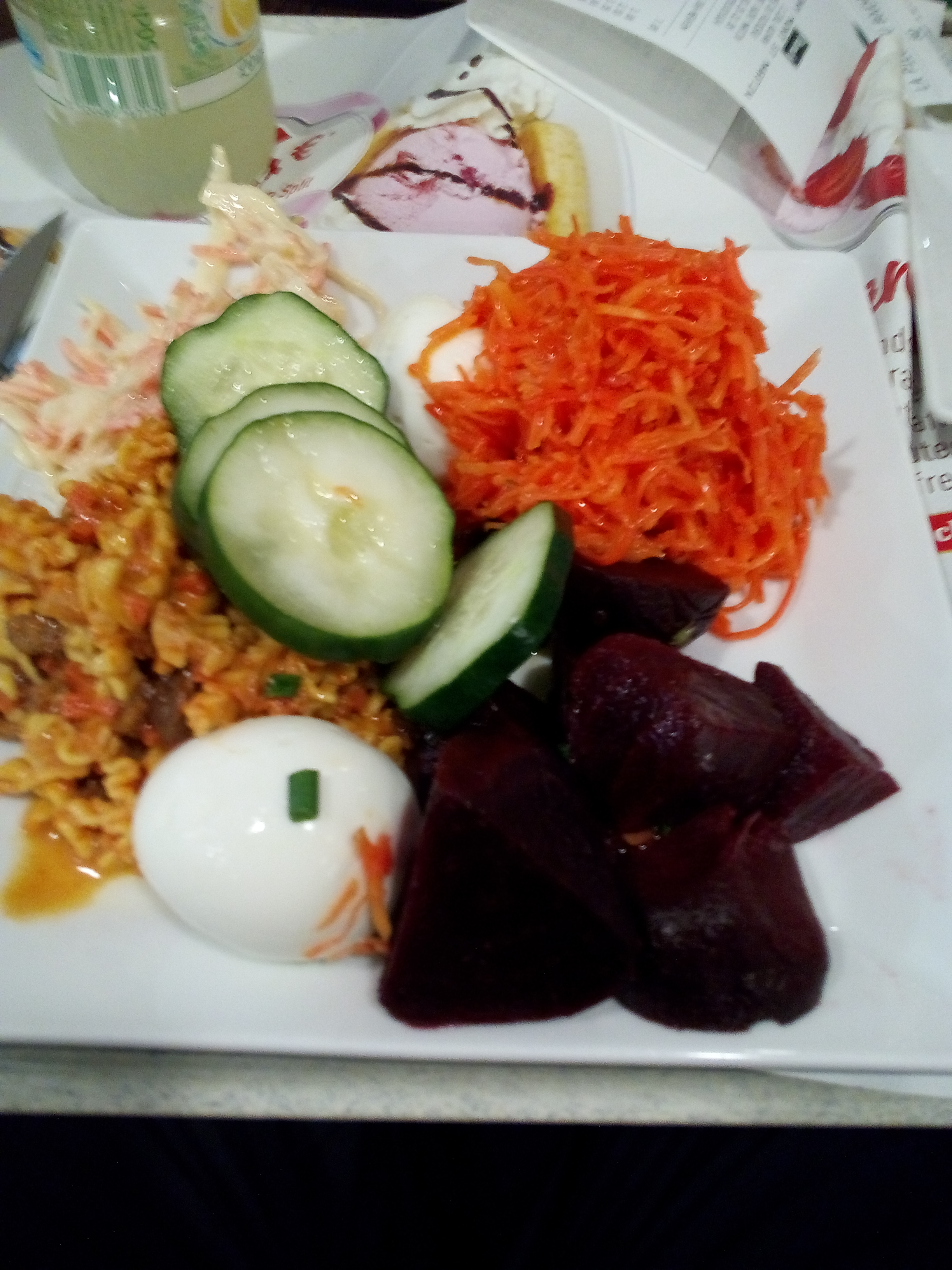 Très déçu comparer à la dernière fois. Les plats sont froids , réchauffer au micro ondes pas terrible je dirais même dégueulasse . Le riz pas cuit tout dur. Les autres légumes n ont parlons pas . Y a que les frites qui sont potables ( quand il y en a ) En dessert les œufs au lait de la flotte aucun goût , fade .