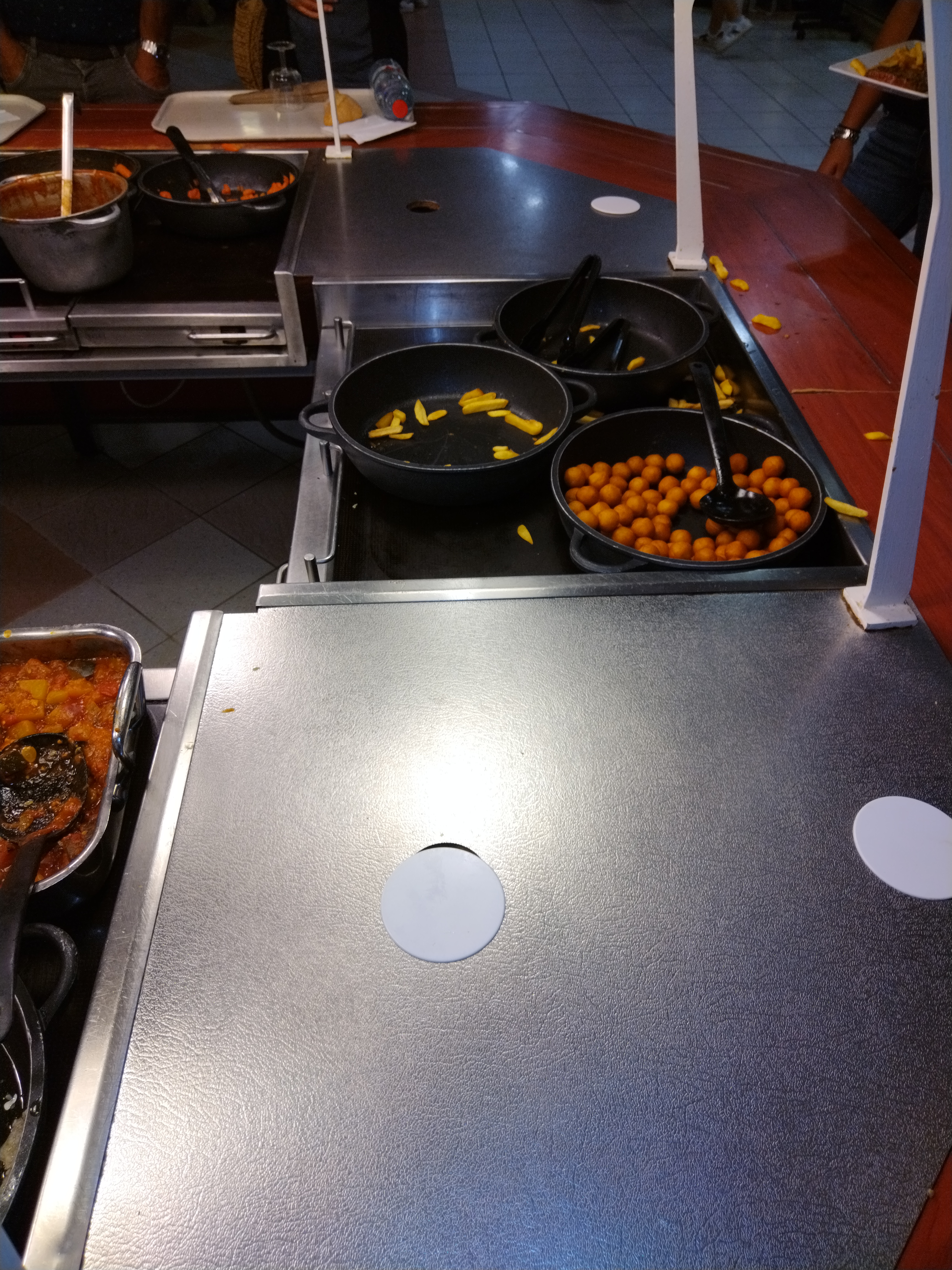 Restauration rapide, légumes à volonté. Pour ma part je trouve un peu fade, les légumes sont juste cuit à l'eau, le jambon est correct. Niveau choix des produit et qualité, c'est le minimum. Le restaurant manque de propriété alors que c'est le démarrage du service du soir. Le personnel est souriant