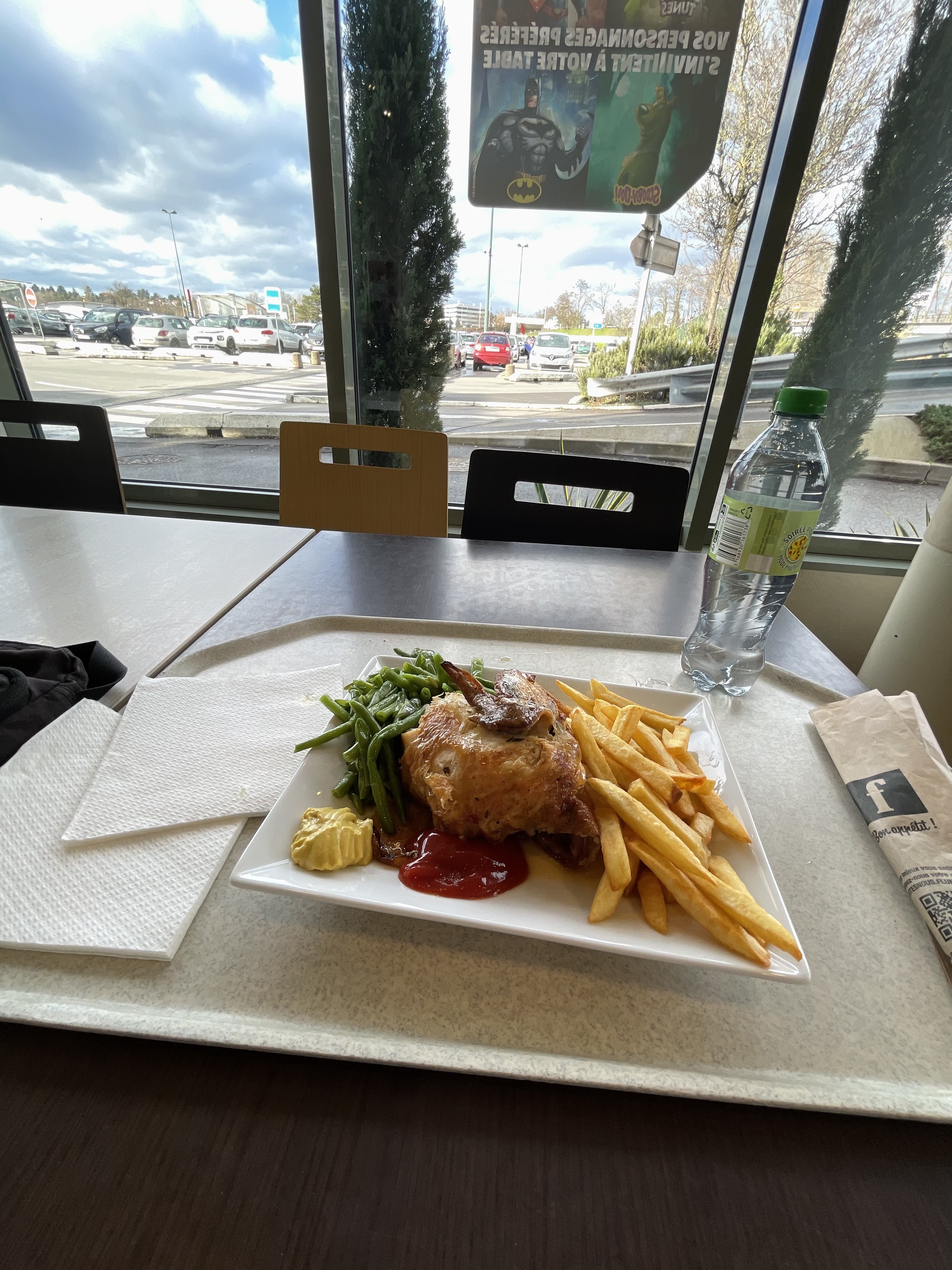 C'était bon et sympa. Pour moi cela a été filet de poisson pané, riz et ratatouille, avec un fromage blanc faisselle en dessert. Le tout pour une dizaine d'euros. Très bon rapport qualité-prix. Ah j'oubliais, les fauteuils étaient larges et confortables. Très agréable pour ce type de restaurant self-service.