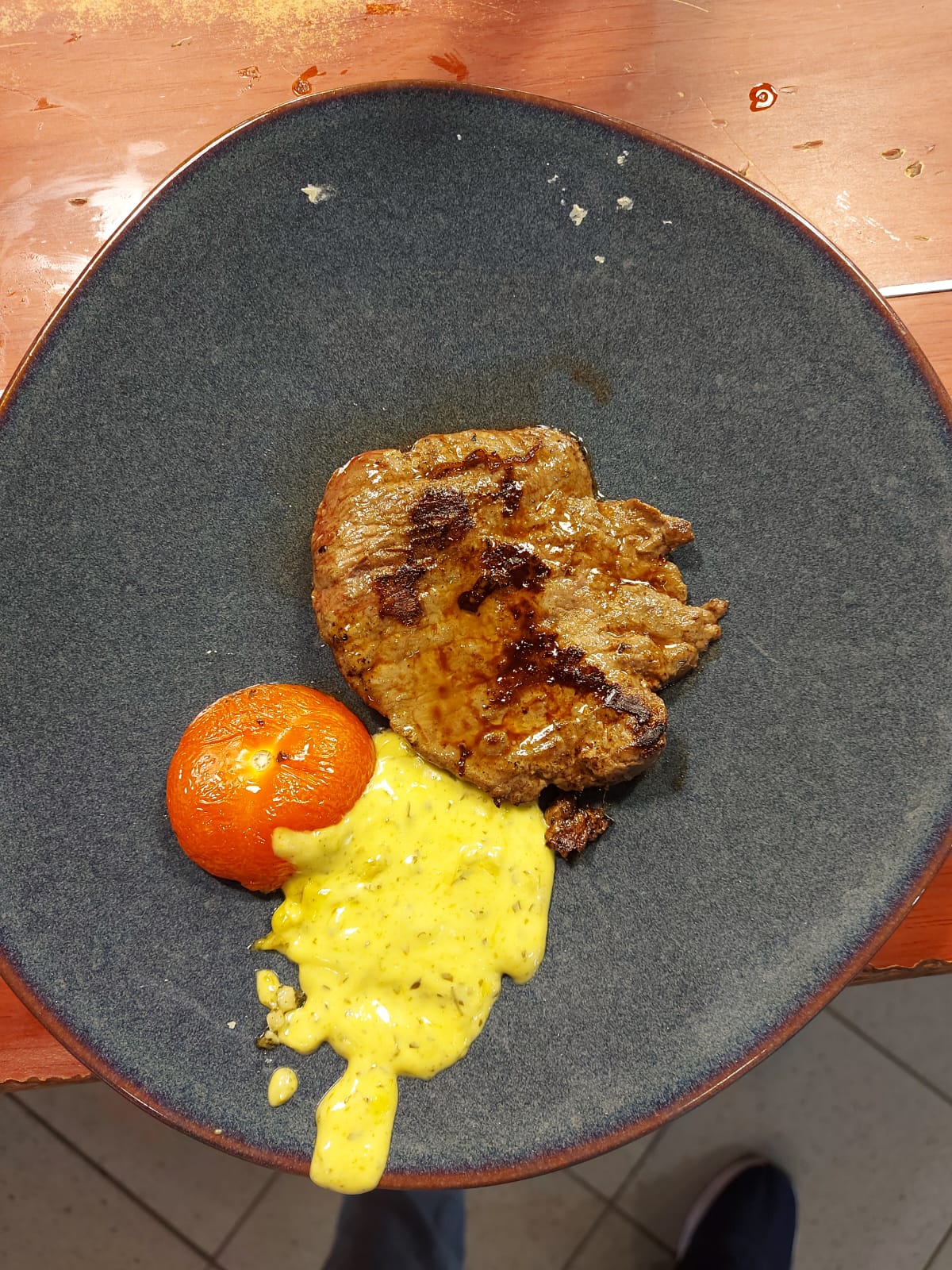 Nous avons pris des steak saignants ceux ci étaient plus que bien cuit. La rosti quant à elle n'était pas cuite. C'est lamentable. La salade était noire comme vous pouvez le voir sur les photos. A éviter.