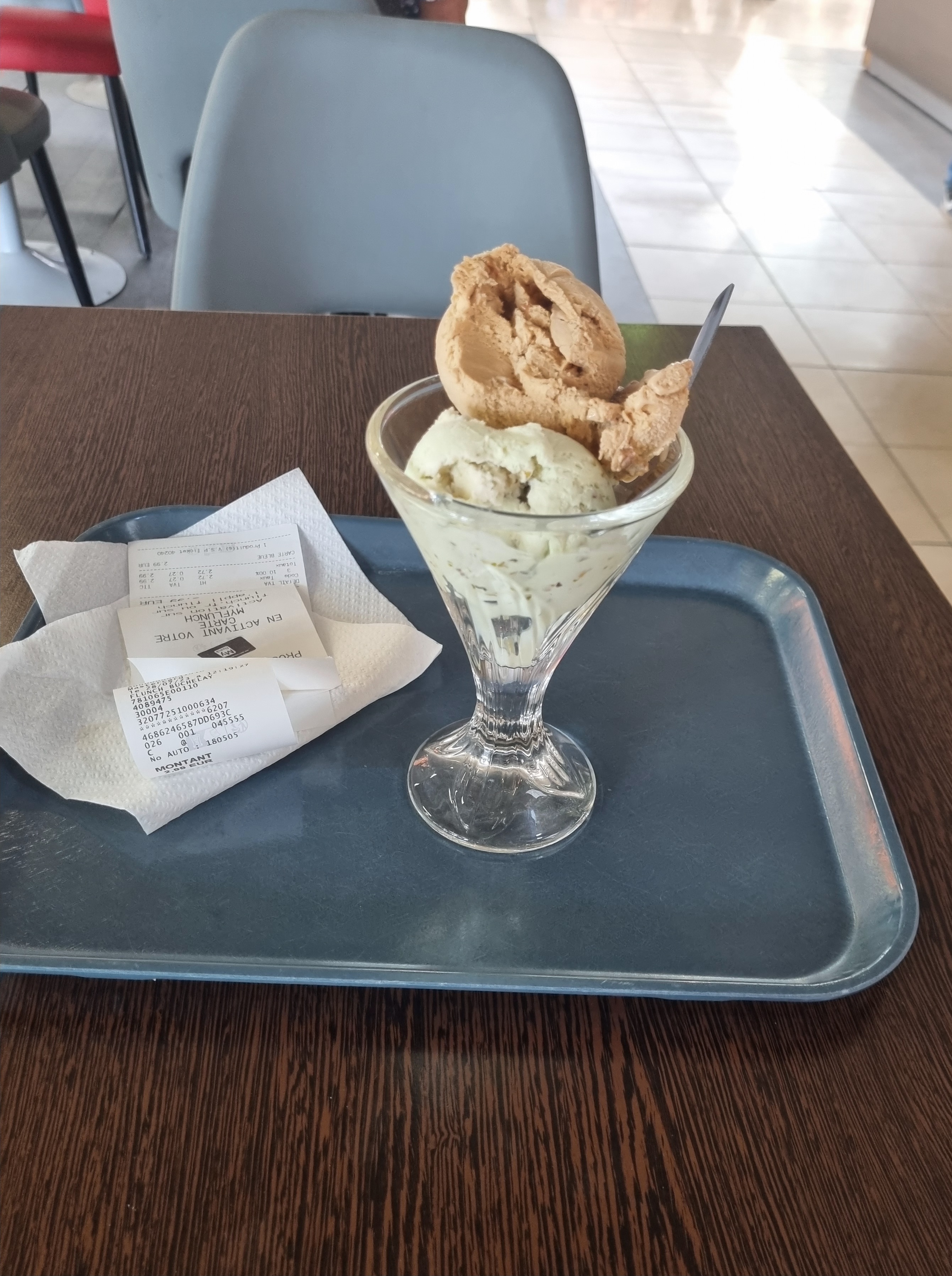 Toujours très bien pour moi la serveuse adorable même au coin glaces café toujours bien servi je reviendrais