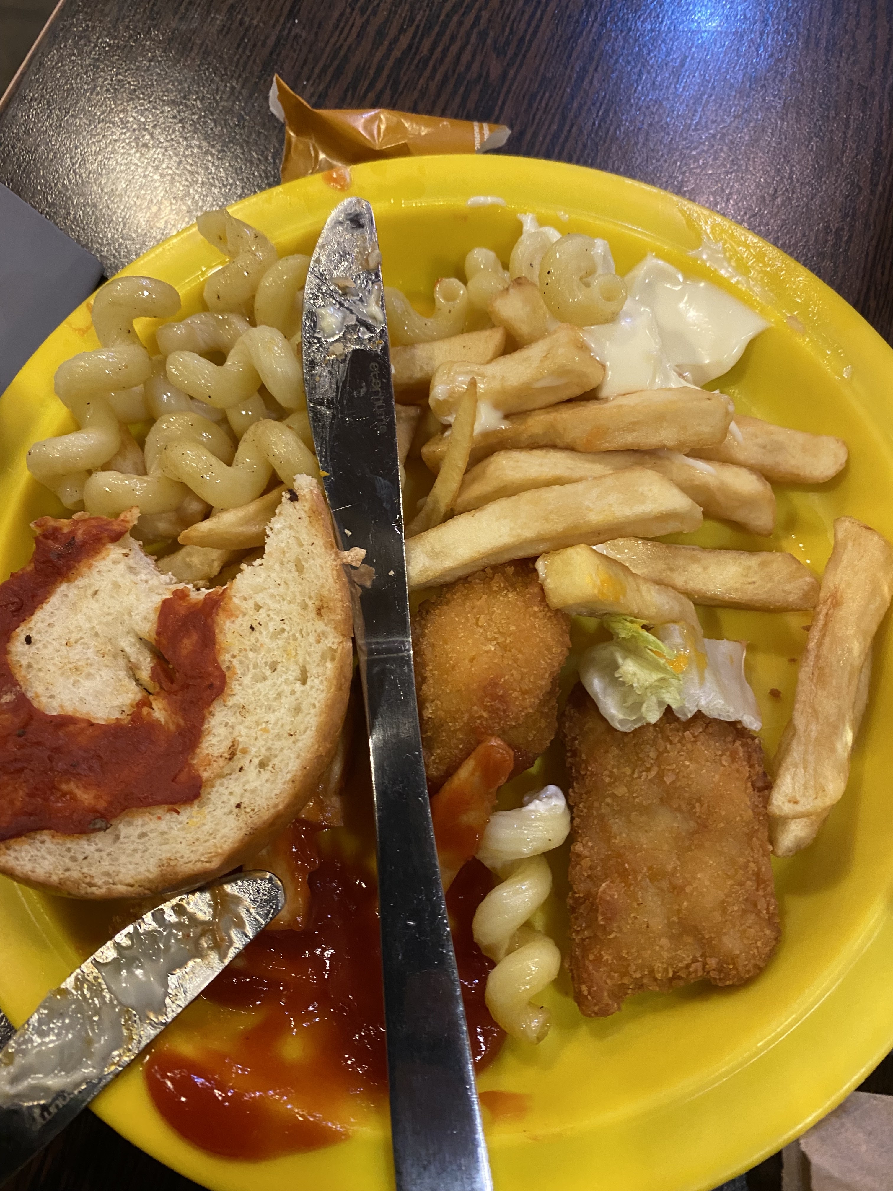 1/ chef cuisinier à licencier pour plusieurs raisons.Filet de poisson complètement sèche à mon avis plusieurs heure,les pâtes à force de rester dans le lunch box,frites également,riz également,haricots vert également,le récipient en inox quand il en reste presque plus dedans j’ai vue le chef remplir par dessus les restes donc normal qu’il y a des aliments qui date depuis ….. à 21:00 je demande des pâtes pour mon fils le chef dit à son cuisinier du grill tiens donne les pâtes ..il le sortait du frigo et le cuisinier qui me dit par ordre du chef de réchauffer aux micro ondes.. ont me demande de nous dépêcher car le restaurant va fermé. Je comprends pourquoi il y a de moins en moins de monde ! Menu enfant 4,99€ s’il y a pas un adulte qui mange il y à un supplément de 3€ par menu enfant bravo la nouvelle direction ! Dans la restauration les avis des clients comptes vraiment beaucoup monsieur le directeur ! J’ai déjà eux des avis dans mon entourages et je pense faire la meme choses que eux kfc macdo quick ou même les restaurants des autoroutes où le service bien meilleur que chez vous . Voilà le gaspillage en photos le jeune homme de la salle a gentiment débarrassé pour moi un grand merci à lui .Même l’agent de sécurité a fait la remarque à la cuisine de mon mécontentement du service .