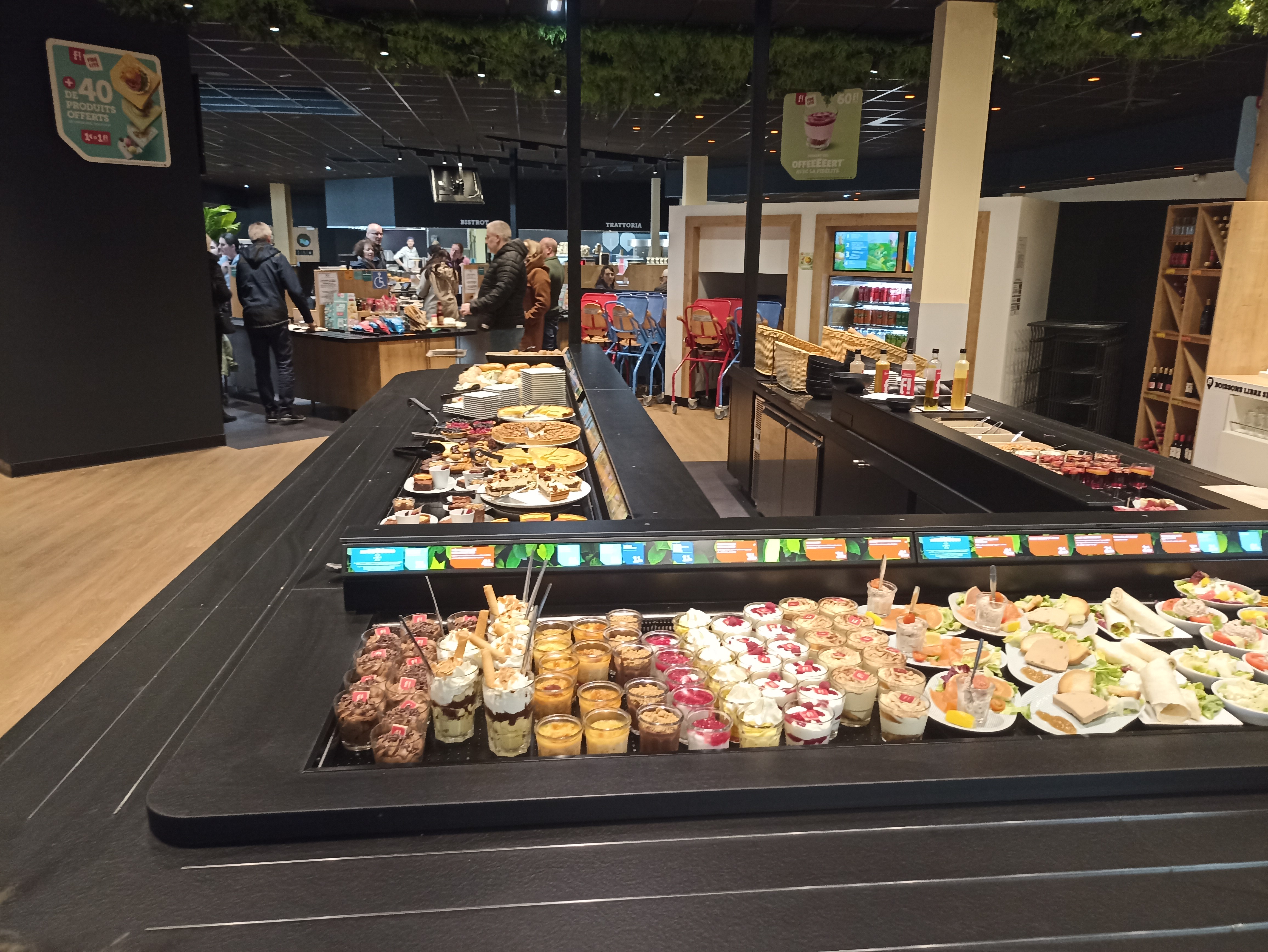 Dimanche midi (12h30), seulement 2 caisses ouvertes, il faut une sacrée patience. Hôtesse de caisse désagréable. Le stand garniture est ingérable et gestion 0. 5 min pour avoir du poisson pané, car il n'y en avait plus. + 10 min d'attente devant, plus de frites, pdt, riz, ratatouille, purée. Encore de la patience... Donc, ta viande est refroidie et le stand glace, elle est seule à servir alors qu'il fait très beau... Bref, juste À FUIR !