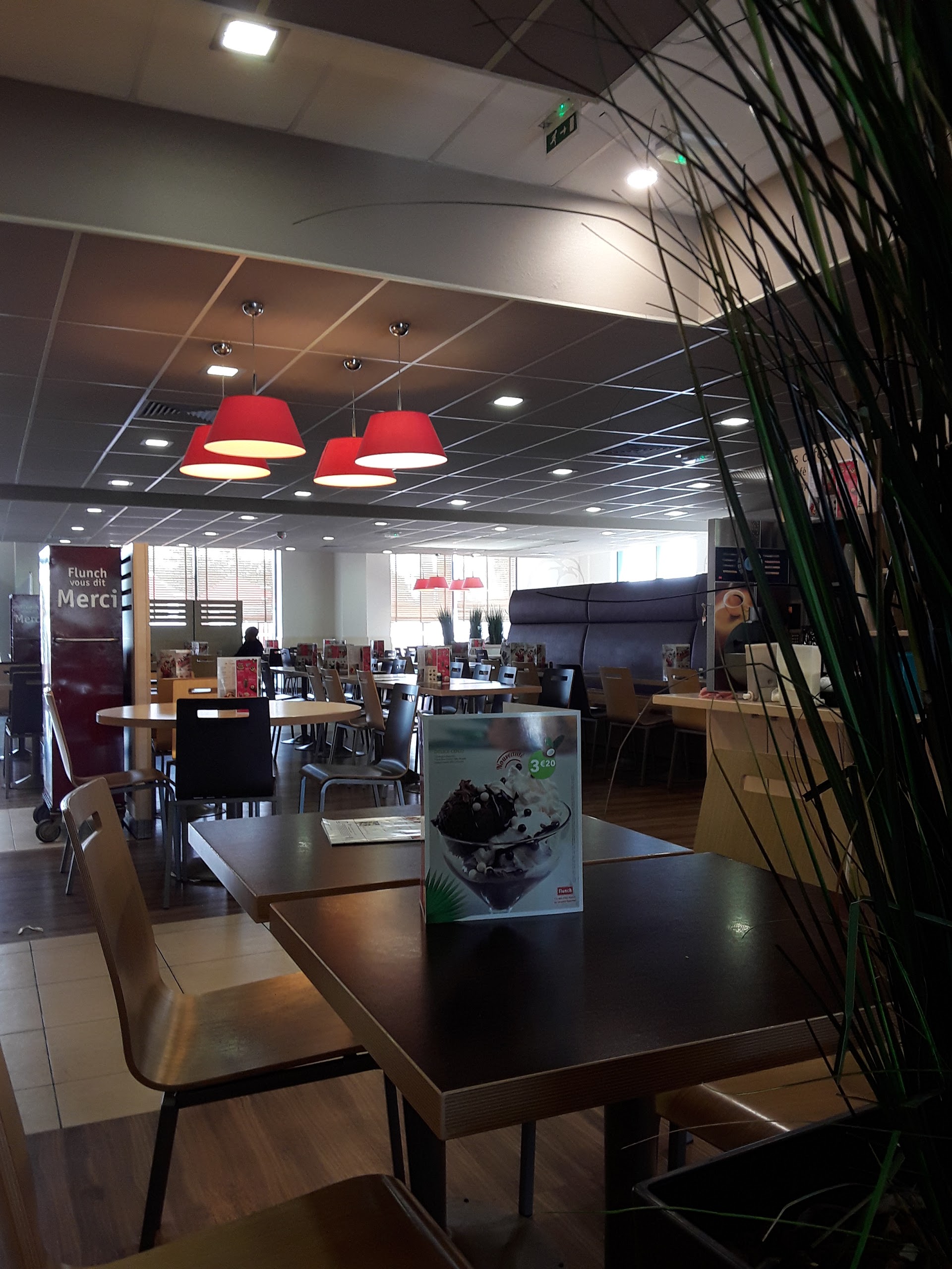 A fuire ,j'ai attendue plus de 20 min le repas de Monfils avec bien-sûr le mien qui refroidissait (obligé de le prendre mon bip arrêter pas de vibré) parce que personne pour les menu enfants et le mec au grill ne s'occupait pas de nous. Des l'arrivée rien d' expliquer sof les panneaux qui défilent a une vitesse ou en a même pas le temps de comprendre.on a fait une carte de fidélité même pas demander du coup pas eu les points et pas eu la réduction sur les éclairs du moment heureusement la salle été propre et belle mais je ne reviendrai plus ici